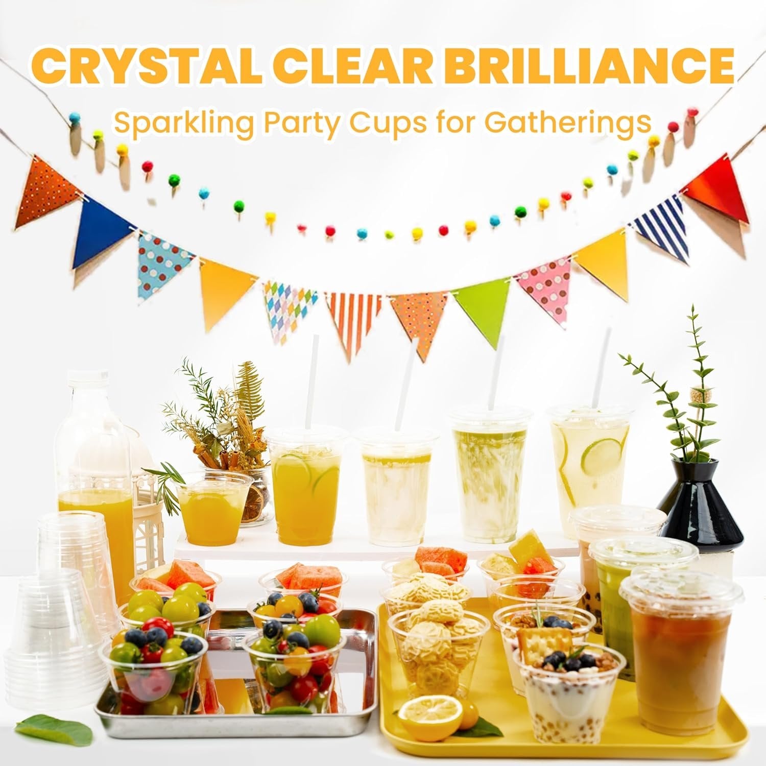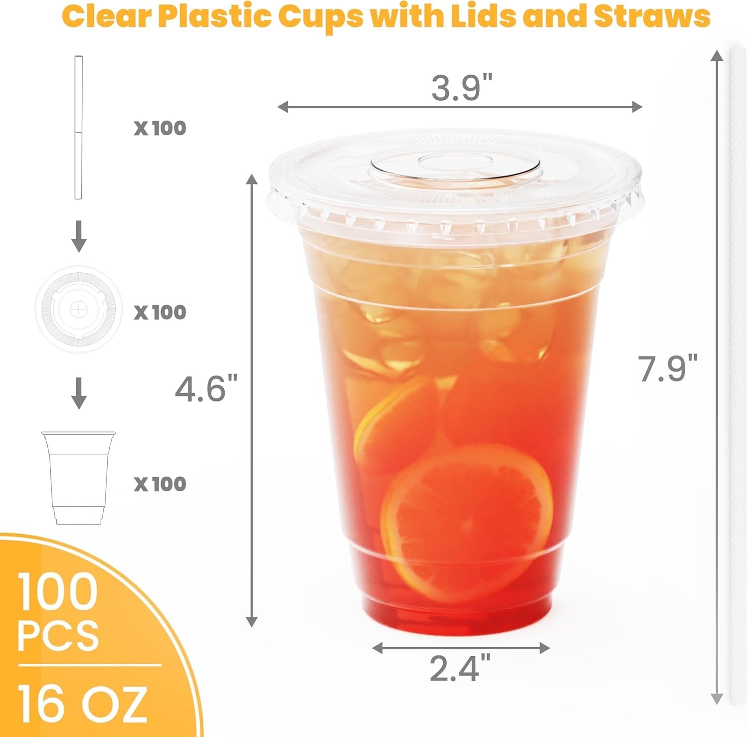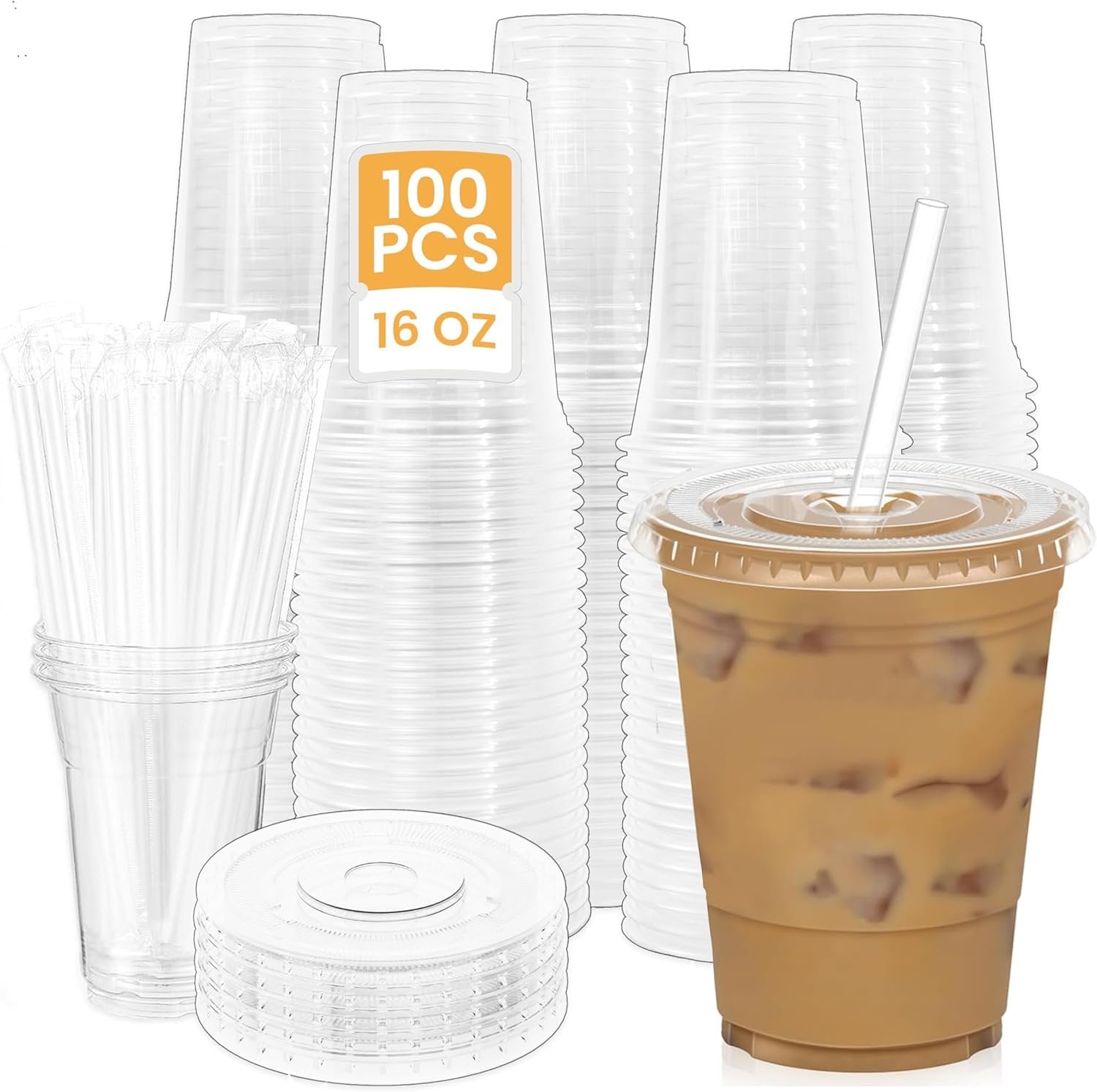 100Pcs 16 oz Plastic Cups with Lids and Straws, Disposable Clear Plastic Cups with Lids for Iced Coffee (16 oz)-Praty-Wedding-Celebration