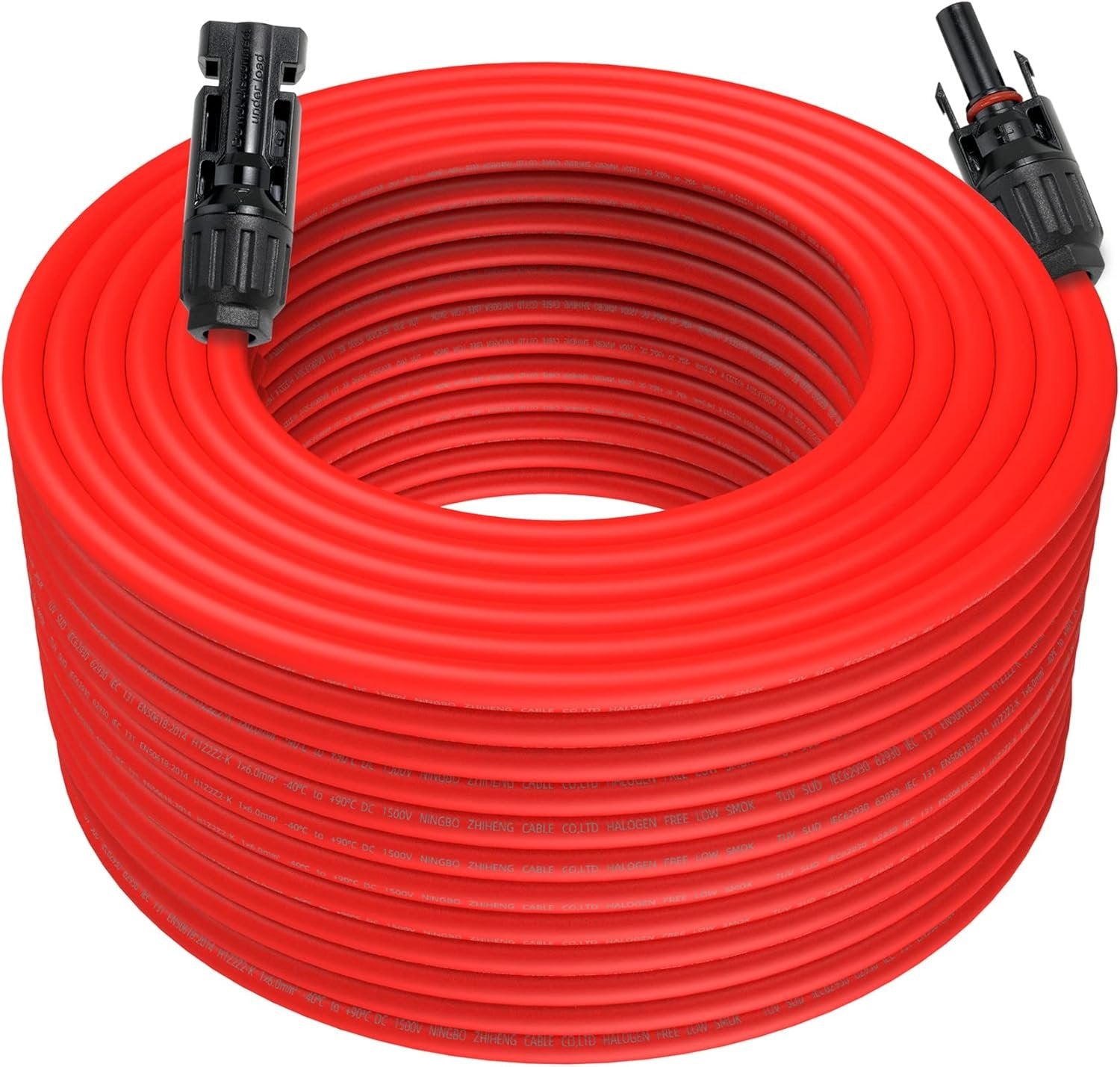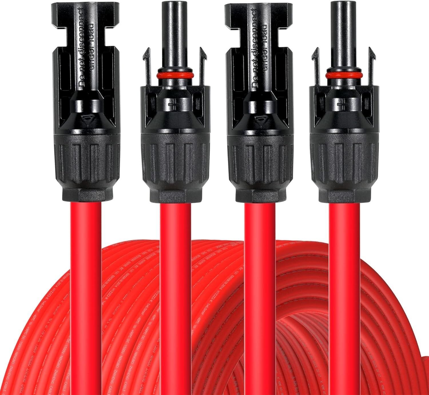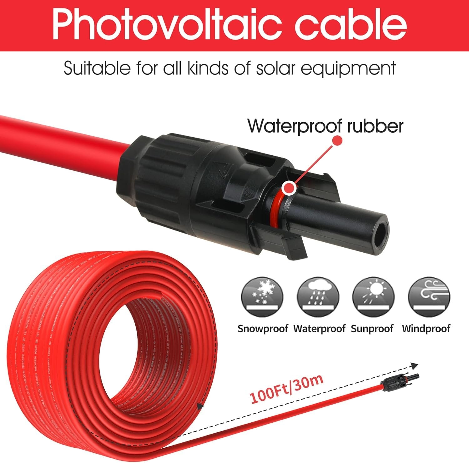 10AWG Solar Extension Cable, 100 Feet 10 Gauge Wire With Connectors and Adapter Tool Kit (Red)