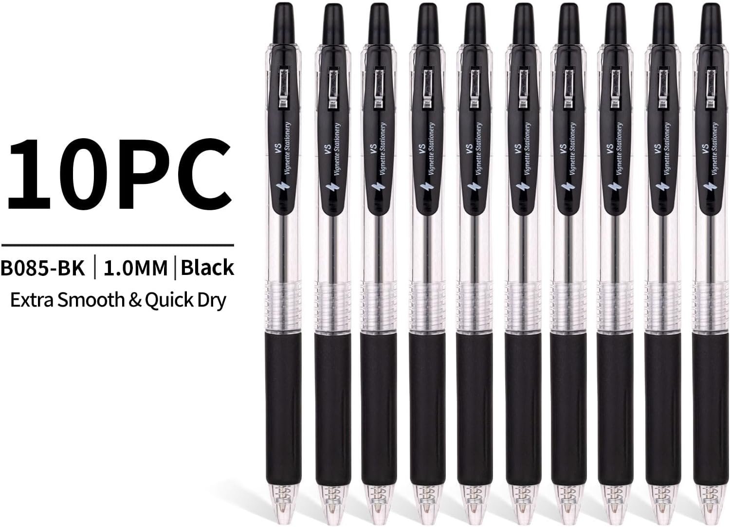 10x Retractable 1.0mm Ballpoint Pens Extra Smooth Quick Dry Ink Oil Base Waterproof Non Bleeding Back To School Office Student Art Sketching Writing Note Exam Pens Value Pack (10x Black)
