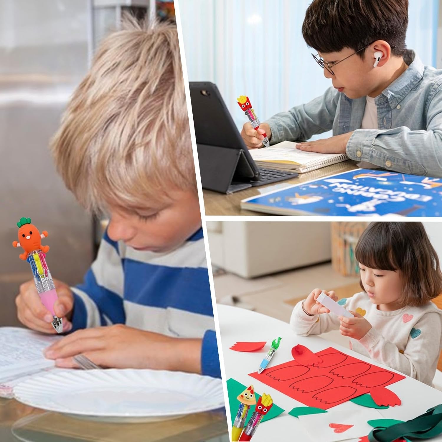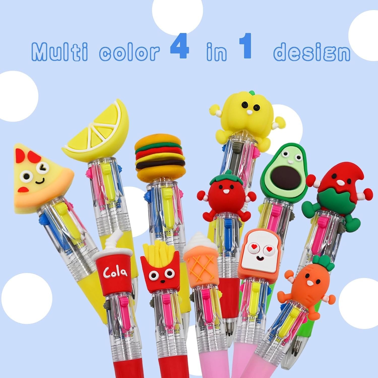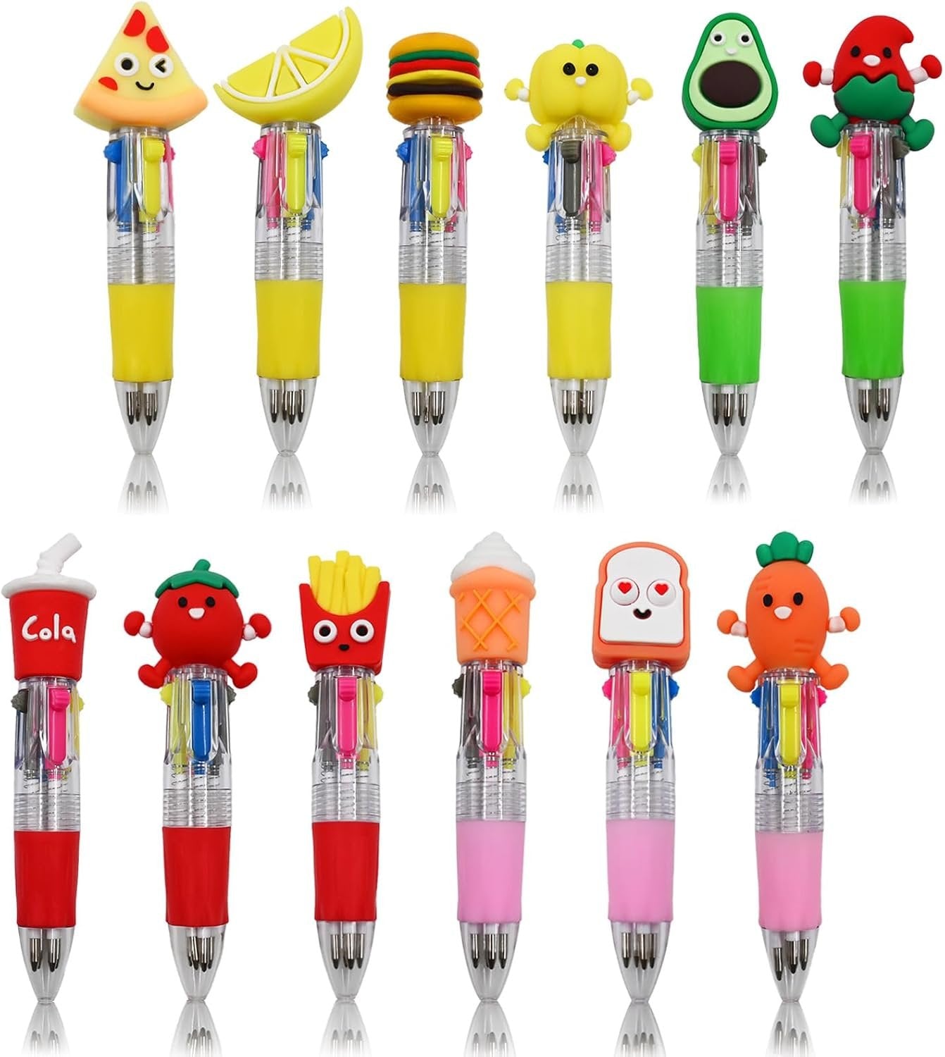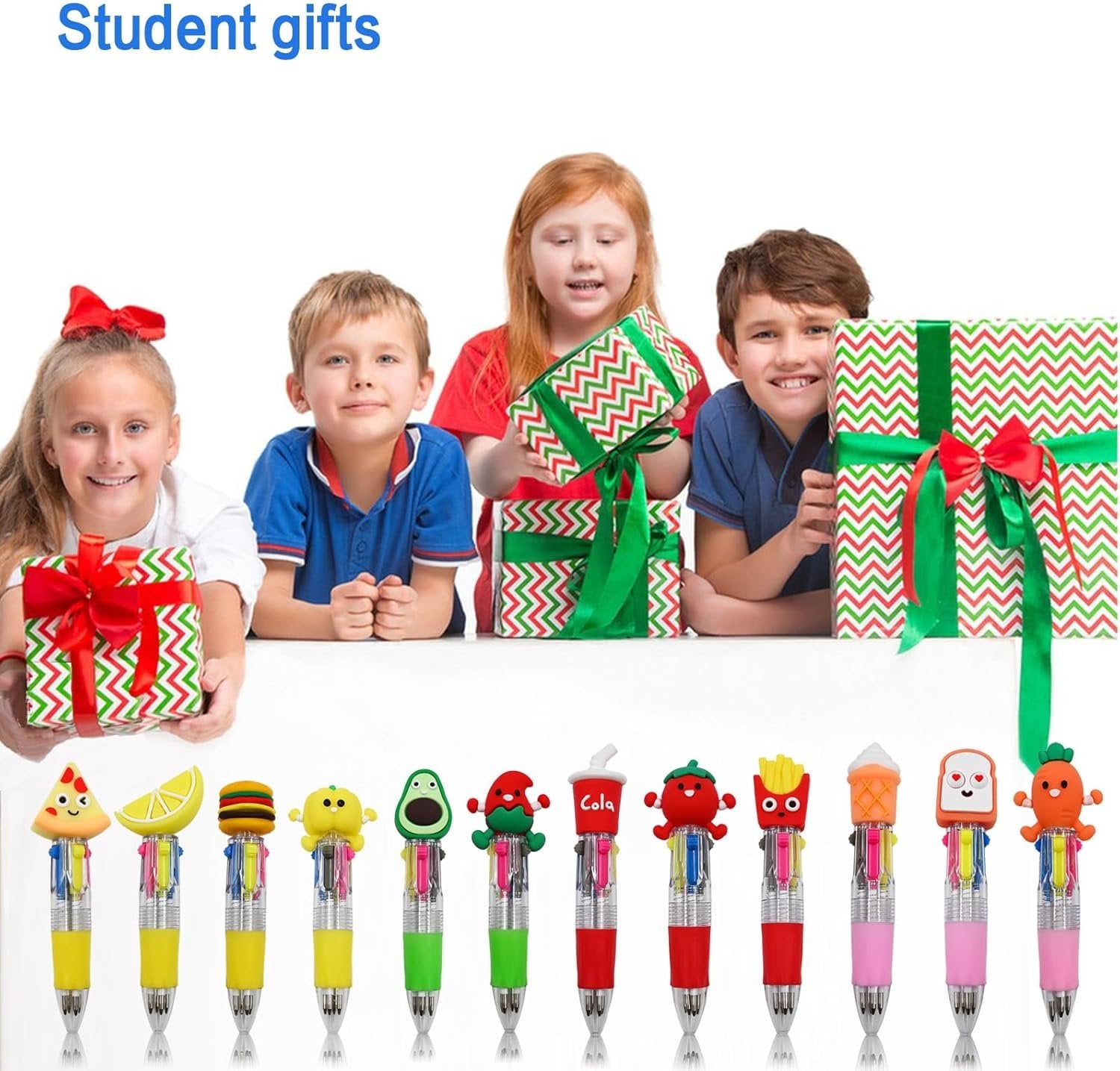12 PCS Kids Multi-Coloured Ballpoint Pens, Cute 4-in-1 Retractable Gel Pens, Mini Cartoon Pen For Kids Students Teacher Classroom School Home Stationery, Fun Pens for Birthday Party Favor Gifts
