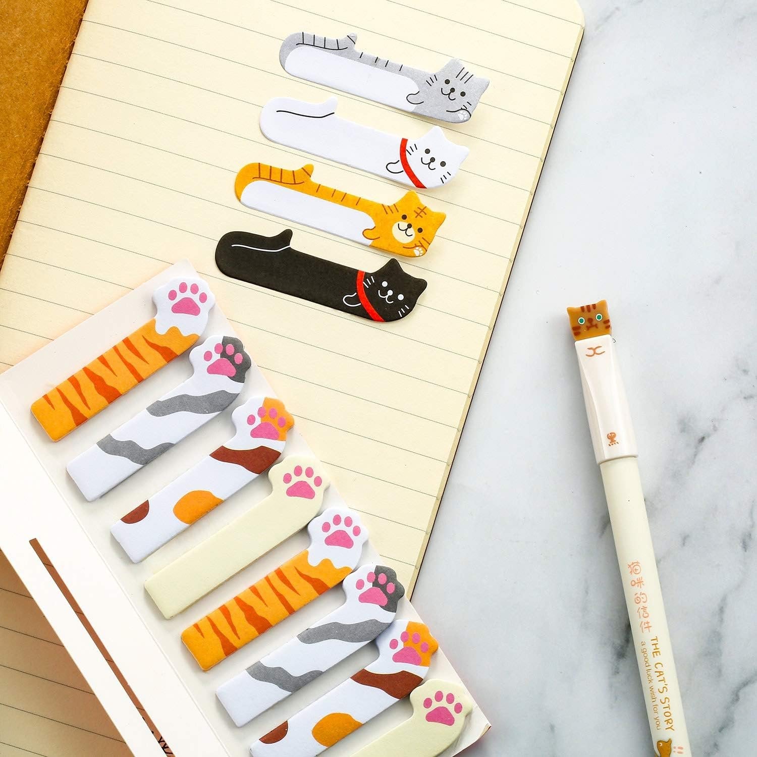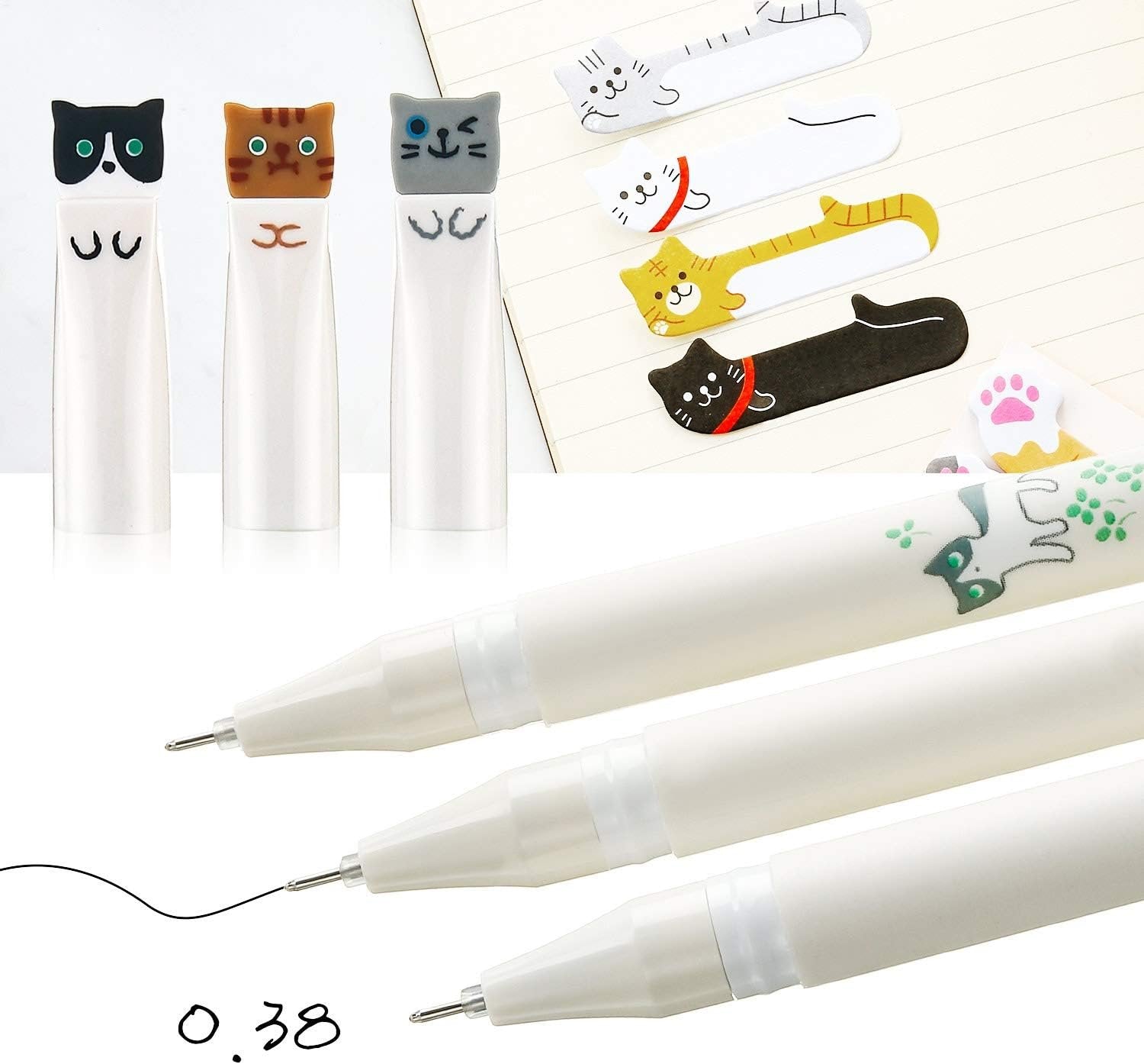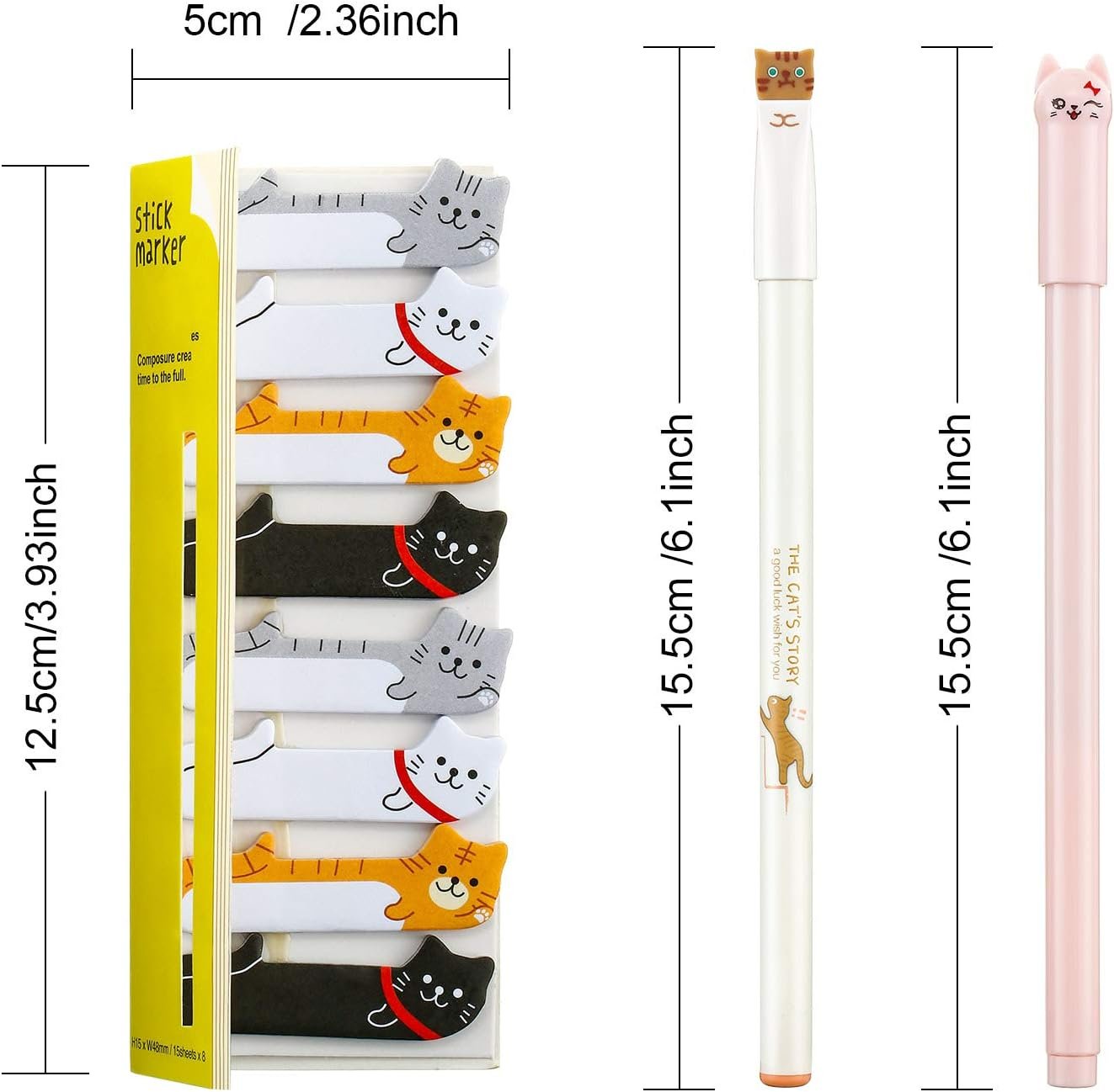 12 Pieces Cute Cat Pens Cats Design Gel Ink Pens Kawaii Writing Pen and 320 Pieces Cute Cat Sticky Notes Page Bookmarks Flags Tab for Cat Lovers Kids Stationery School Office Supplies