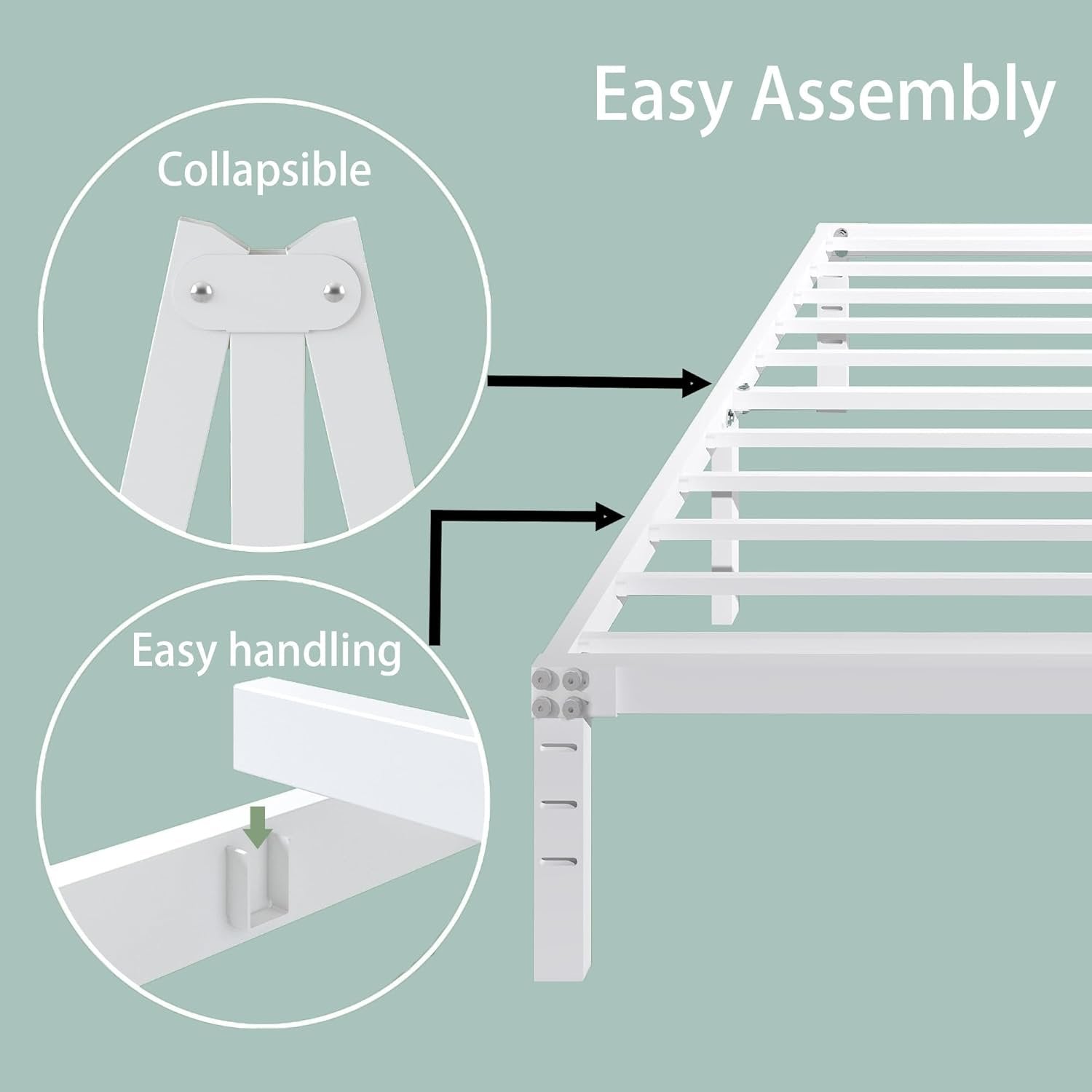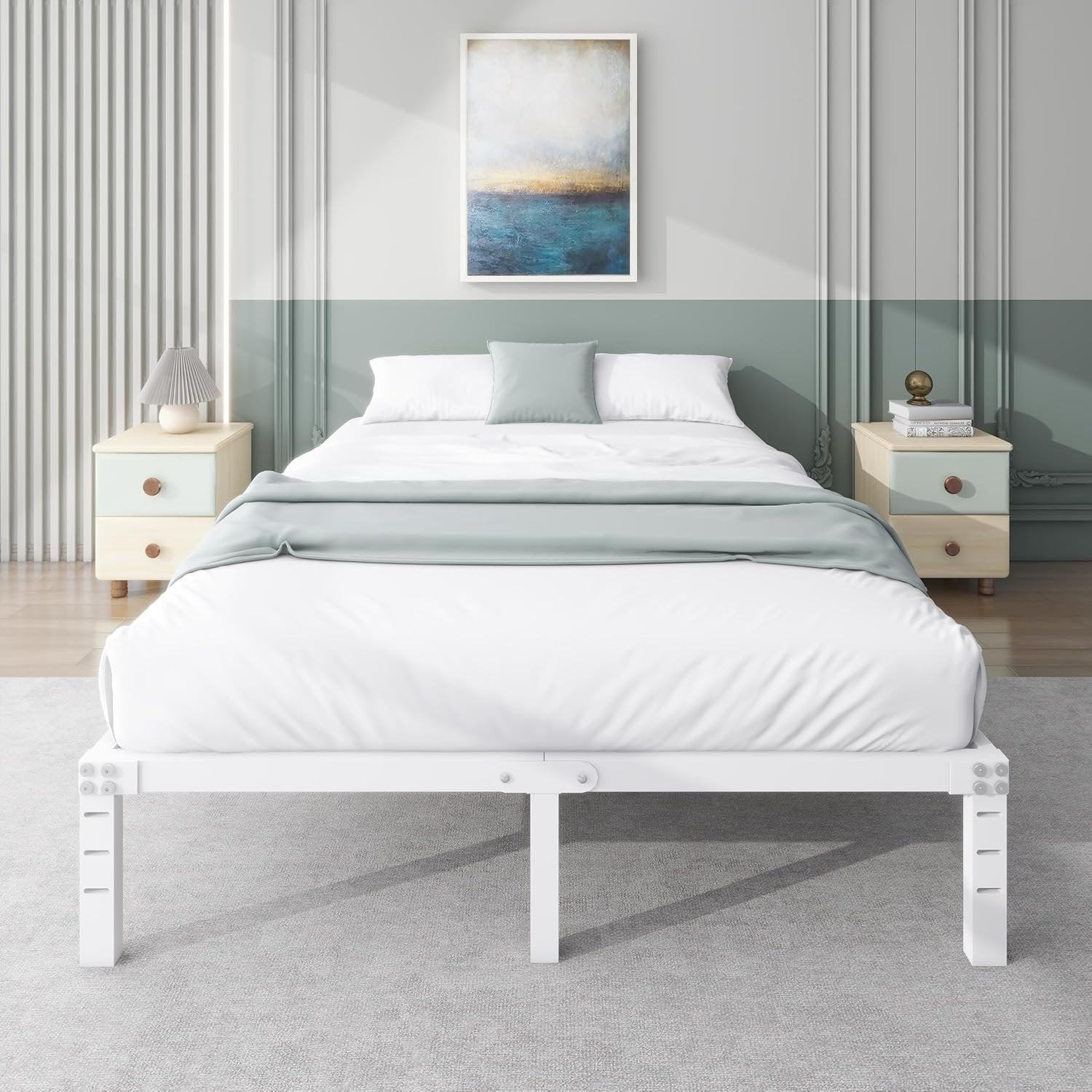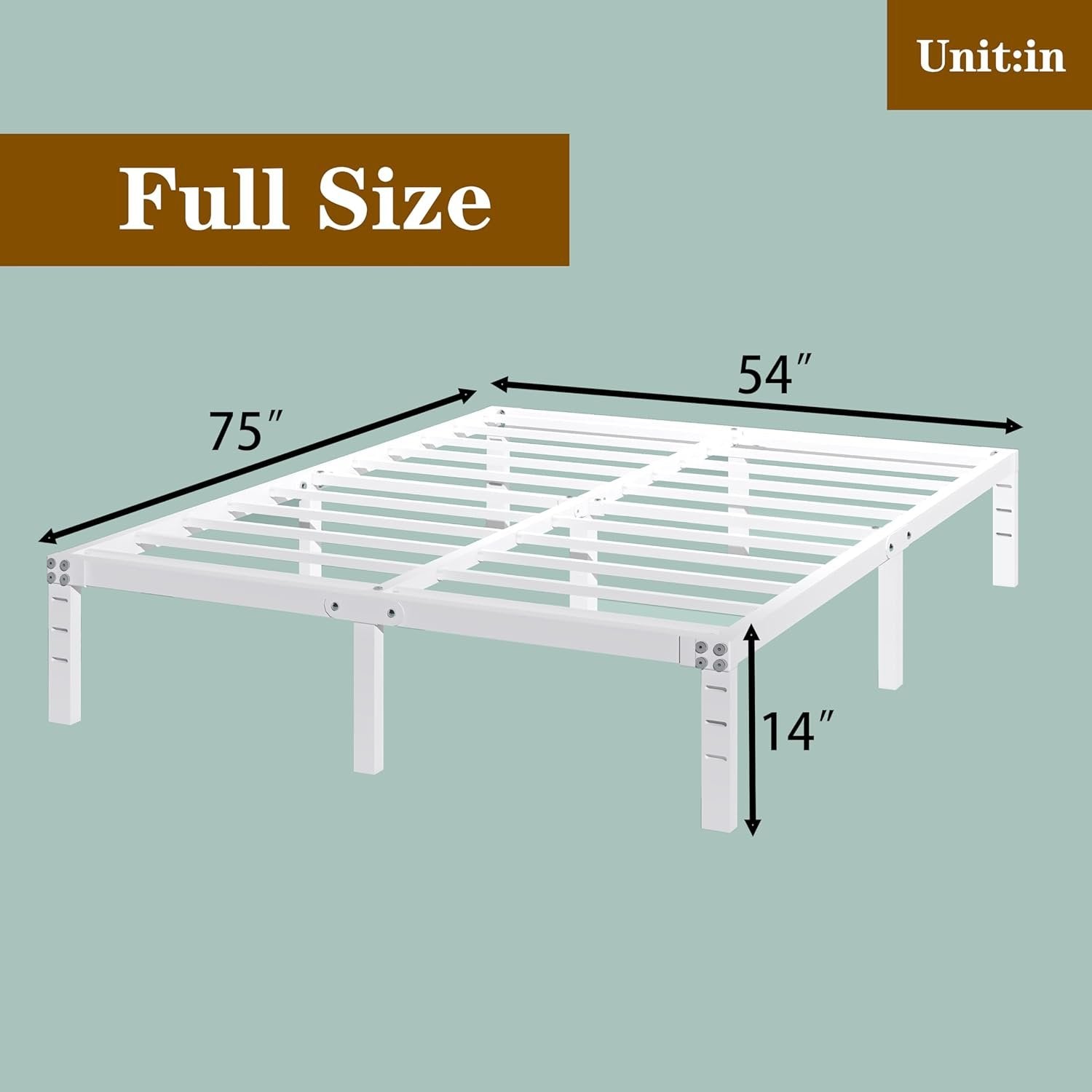 14 Inch Metal Platform Bed Frame No Box Spring Needed Heavy Duty Steel Slat Bed Frame Underbed Storage,White (Full)