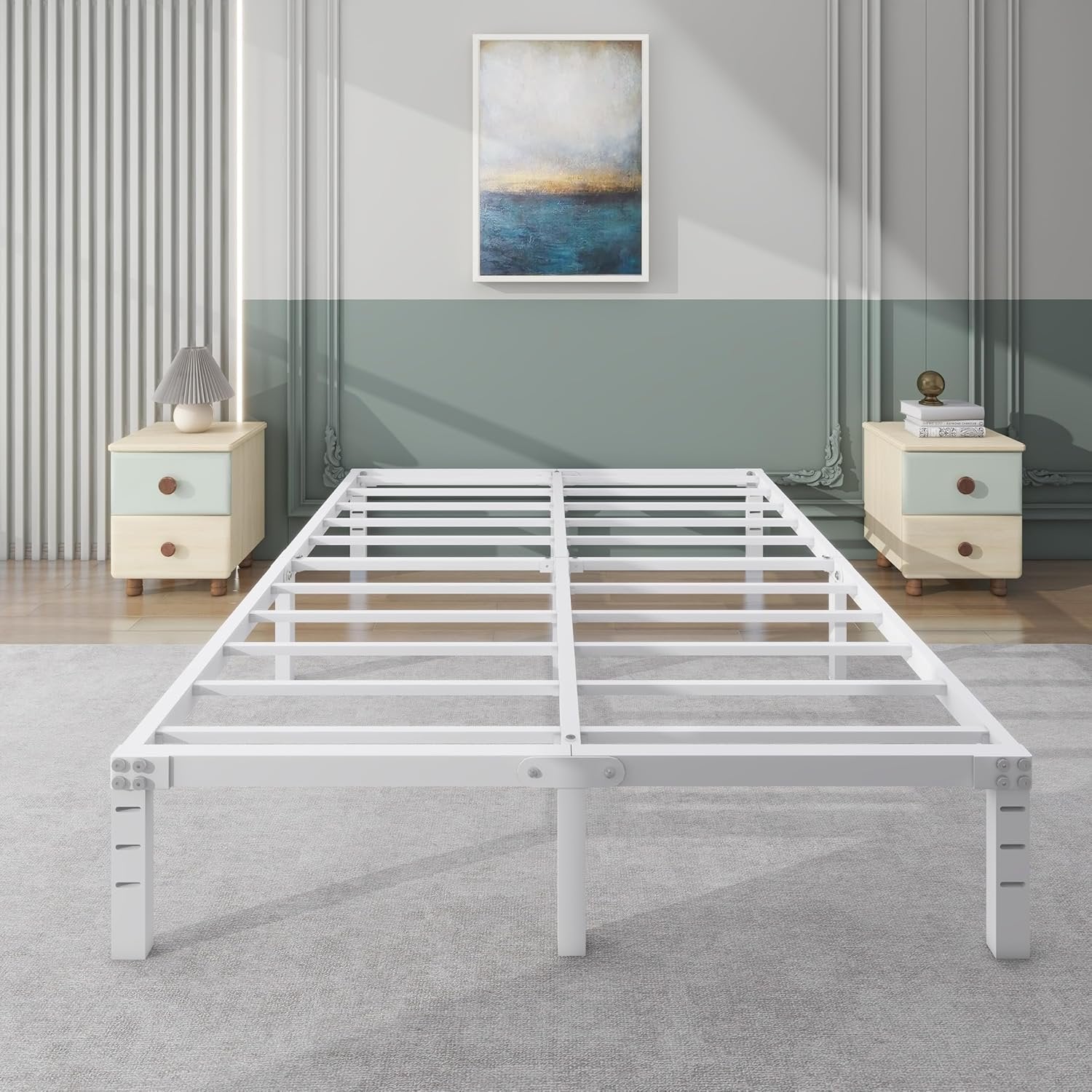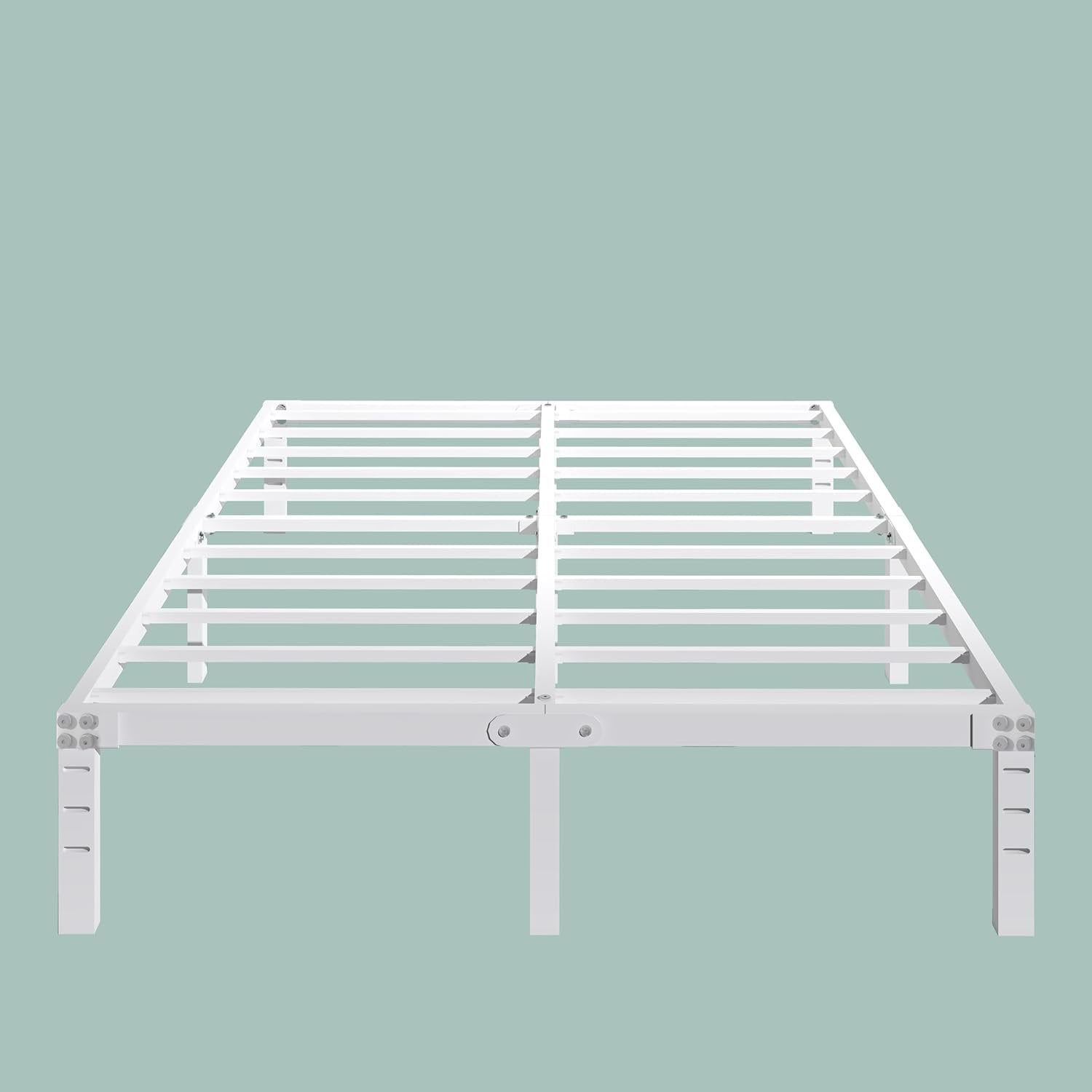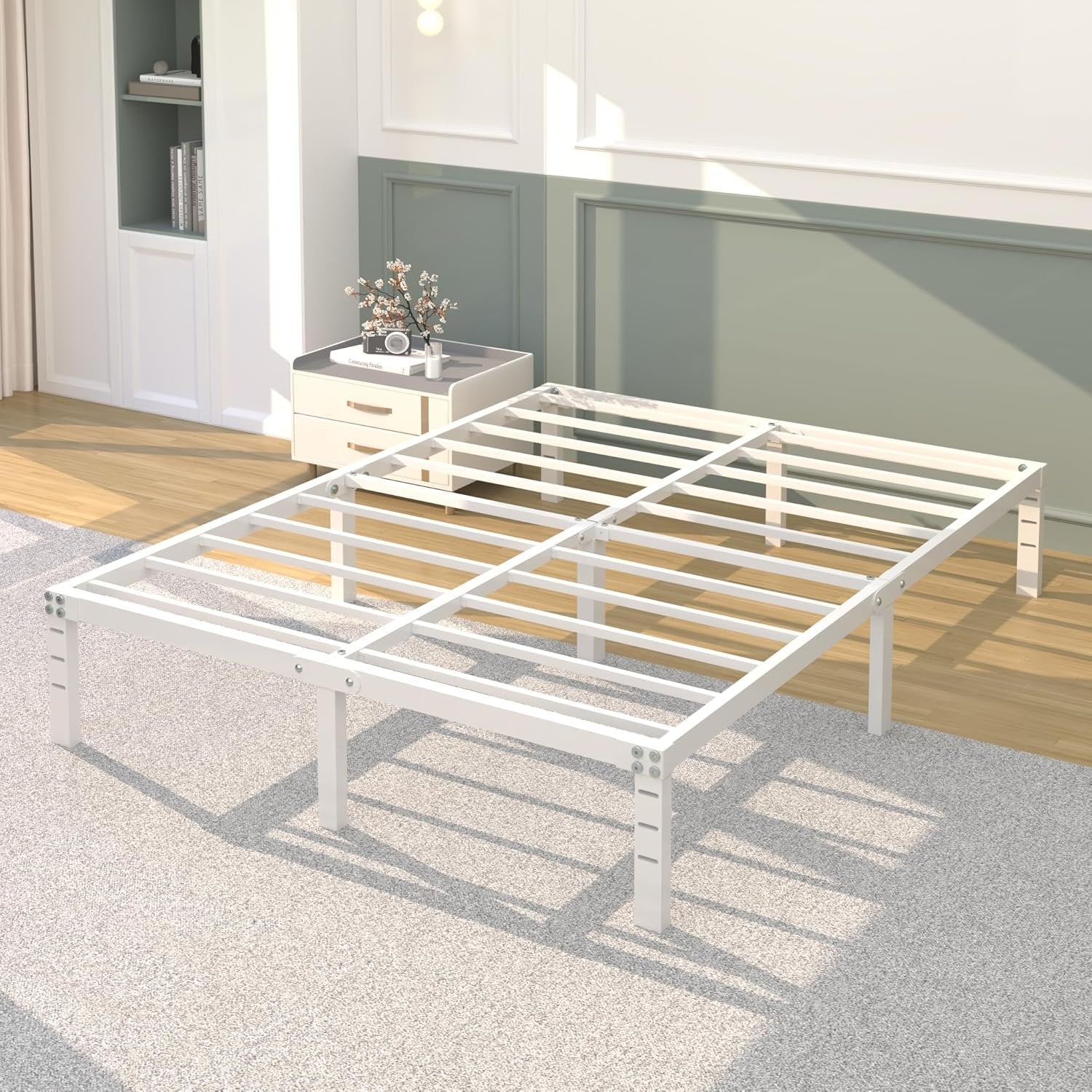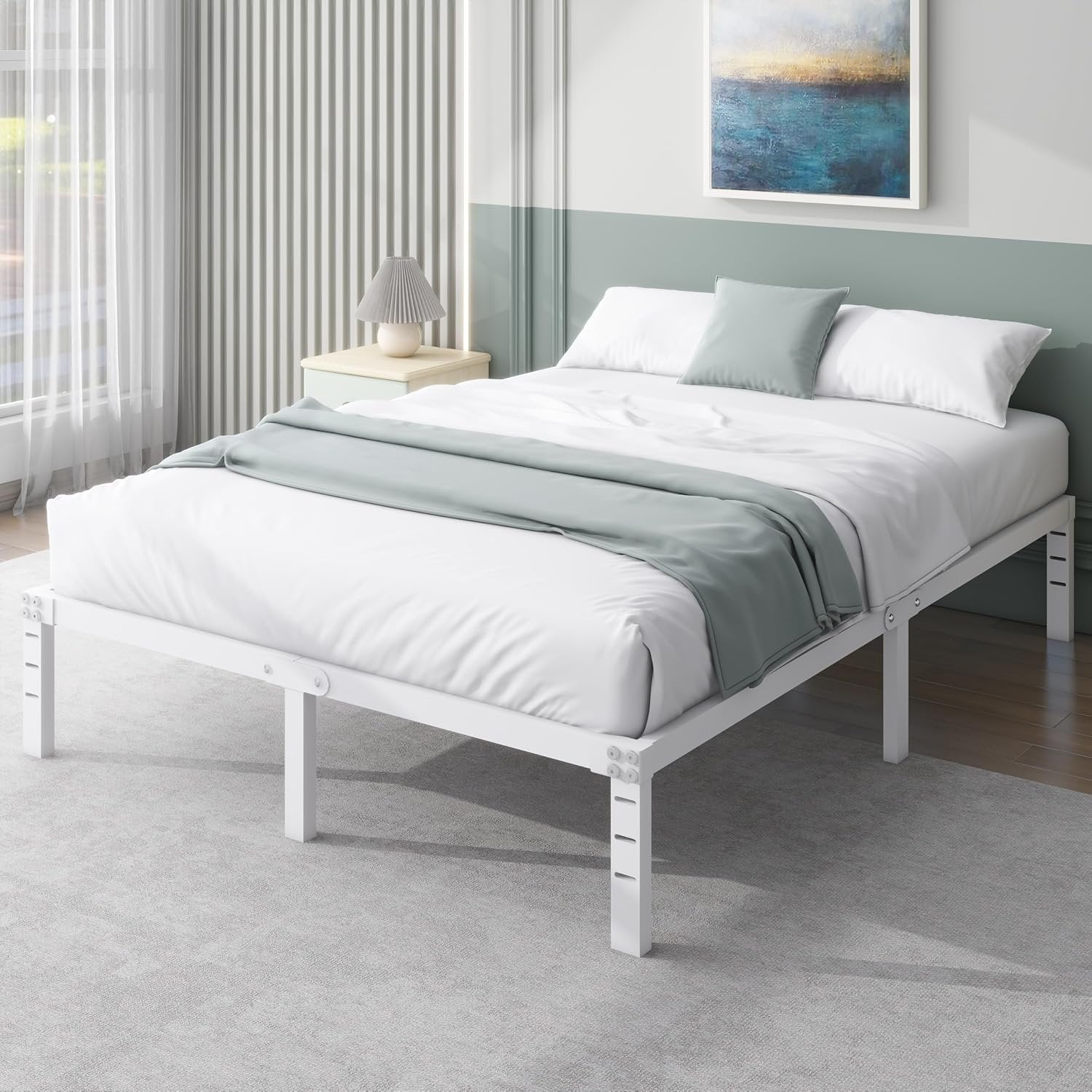 14 Inch Metal Platform Bed Frame No Box Spring Needed Heavy Duty Steel Slat Bed Frame Underbed Storage,White (Full)