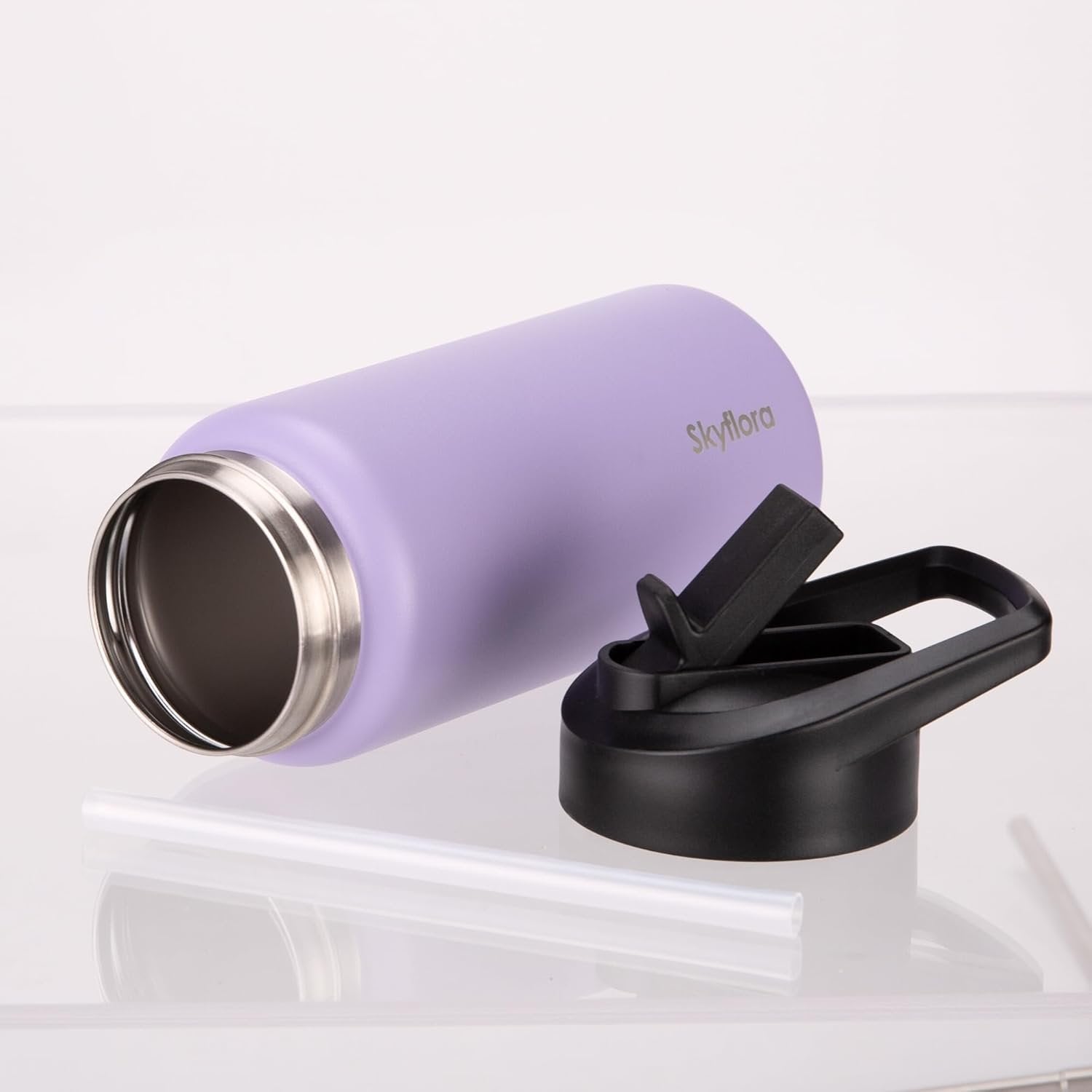 16oz Water Bottle with Straw Lid, Single Wall Stainless Steel, Dishwasher Safe & Leak Proof Drinkware for School Sports Travel Camping (Cosmic Lilac)