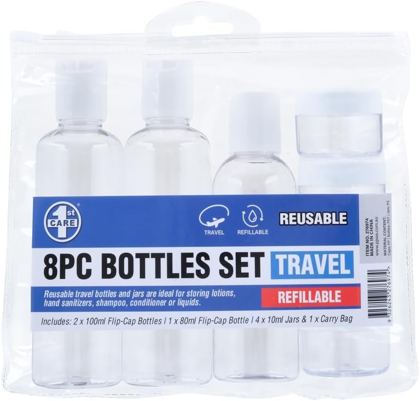 1st Care Refillable Toiletry Travel Bottle and Jar (7 Pieces Set)