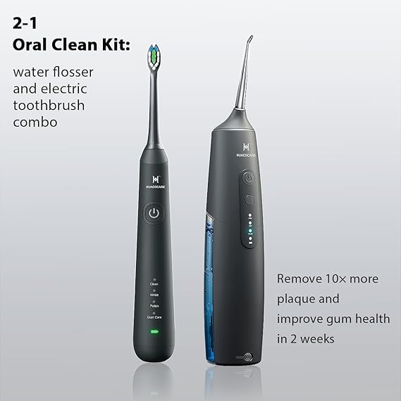 2-1 Oral Clean Kit- Water Dental flosser & Electric Toothbrush Combo- Brushing & Flossing- for Teeth Cleaning and Gum Health (Black)