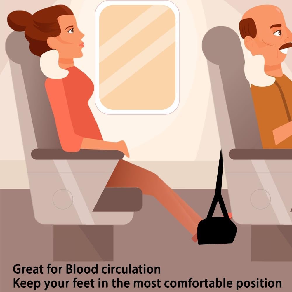 [Sturdy Materials] This footrest has a robust construction with a high loading capacity. Plus, it will provide excellent ventilation and comfort for your legs and feet. It is crafted from high-quality canvas and foam, with a waterproof Oxford cloth and high-density nylon straps. [Travel Must-have] With our travel foot rest and long flight essentials, you can have your feet and lower-back relaxed wherever you go. [Adjustable] Our leg rest features an extra-long adjustable strap that suits for travelers of all heights. Wrap it around the seat tray in front of you, customize the strap's length according to your preference, and you will get a great flight experience. [Widely-used Essential] This foot hanger is suitable in offices, schools, trains, and during long-distance flights. It's an perfect gift for office workers, business people, and travelers. Our producs contain 2 pcs footrest for your convenience. [Portable] This lightweight footrest is easy to fold. The foot hammock transforms into the size of a handle after rolling it up and securing it with the strap. You can put it in your bag wherever you go.