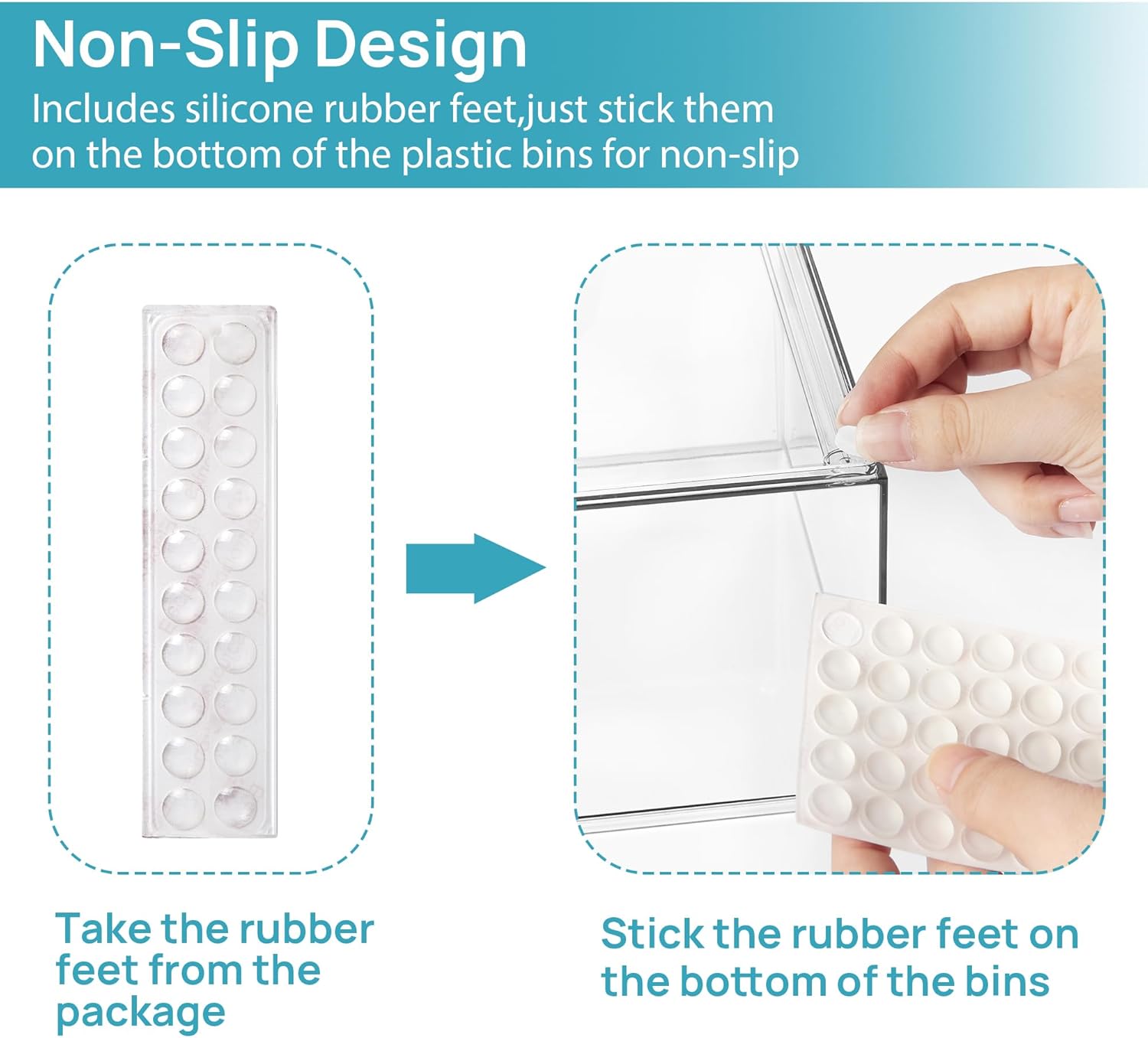 1. Crystal Clear Visibility for Easy Identification: The transparent acrylic material of these stackable storage drawers allows you to see the contents at a glance without opening the drawers. This feature is particularly useful for keeping makeup, toiletries, or kitchen items organized and easily accessible. 2. Compact Design Saves Space Efficiently: Standing at only 4.4 inches tall, these organizers are designed to fit neatly in tight spaces such as under sinks, vanity counters, kitchen cabinets, or pantry shelves. Their compact size ensures they maximize your storage potential without taking up too much room. 3. Stackable and Modular for Customizable Arrangement: With a stackable design, you can adjust the height and configuration of the storage units according to your needs. Whether you need more vertical storage or want to spread them horizontally, these drawers offer versatile and customizable organization solutions. 4. Durable Acrylic Material for Long-Lasting Use: Made from high-quality acrylic, these organizers are not only stylish but also durable enough to withstand daily use. They are easy to clean and maintain, ensuring that they remain looking new and functional for years to come. 5. Versatile Application for Multiple Rooms: These clear storage drawers are perfect for various areas around the home, including bathrooms, kitchens, and pantries. They provide an elegant and practical way to keep your belongings organized, whether it's makeup, spices, cleaning supplies, or other household items, enhancing both functionality and aesthetics in any space.