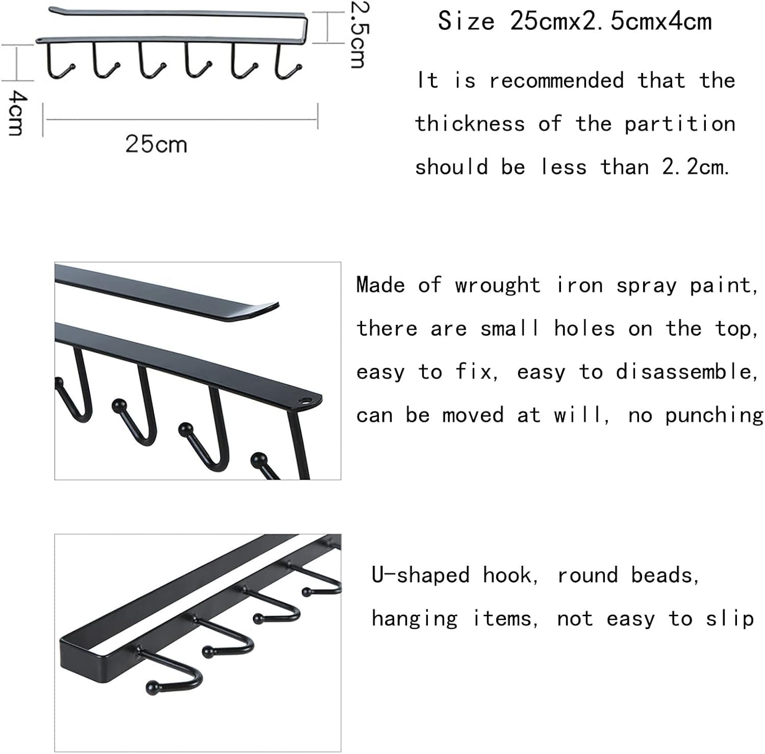 Package include:You will receive 1 black hook rack and 1 white hook rack,each hooks rack have 6 hooks,size is about 26.5*7.3*1.5cm. Multifunction Hanging Hooks: The hooks rack can hang under the cupboard for hanging dishtowels, kitchen utensils, cups, etc, can also hang under wardrobe divider for hanging waistbands, scarves etc, storage small objects and save space, let your kitchen and bedroom more tidy and convenient. Nail Free: The cabinet storage hook rack is designed to clip on cabinet divider to install, no need nail and drilling, very convinent and easy to install. High Quality Hooks: The hook rack made of wrought iron spray paint, not easy to rust, U-shaped hook, round beads, hanging items, not easy to slip. Easy to assemble and disassemble, can be moved at will, hang it wherever you want. It is recommended that the thickness of the partition should be less than 2.2cm.