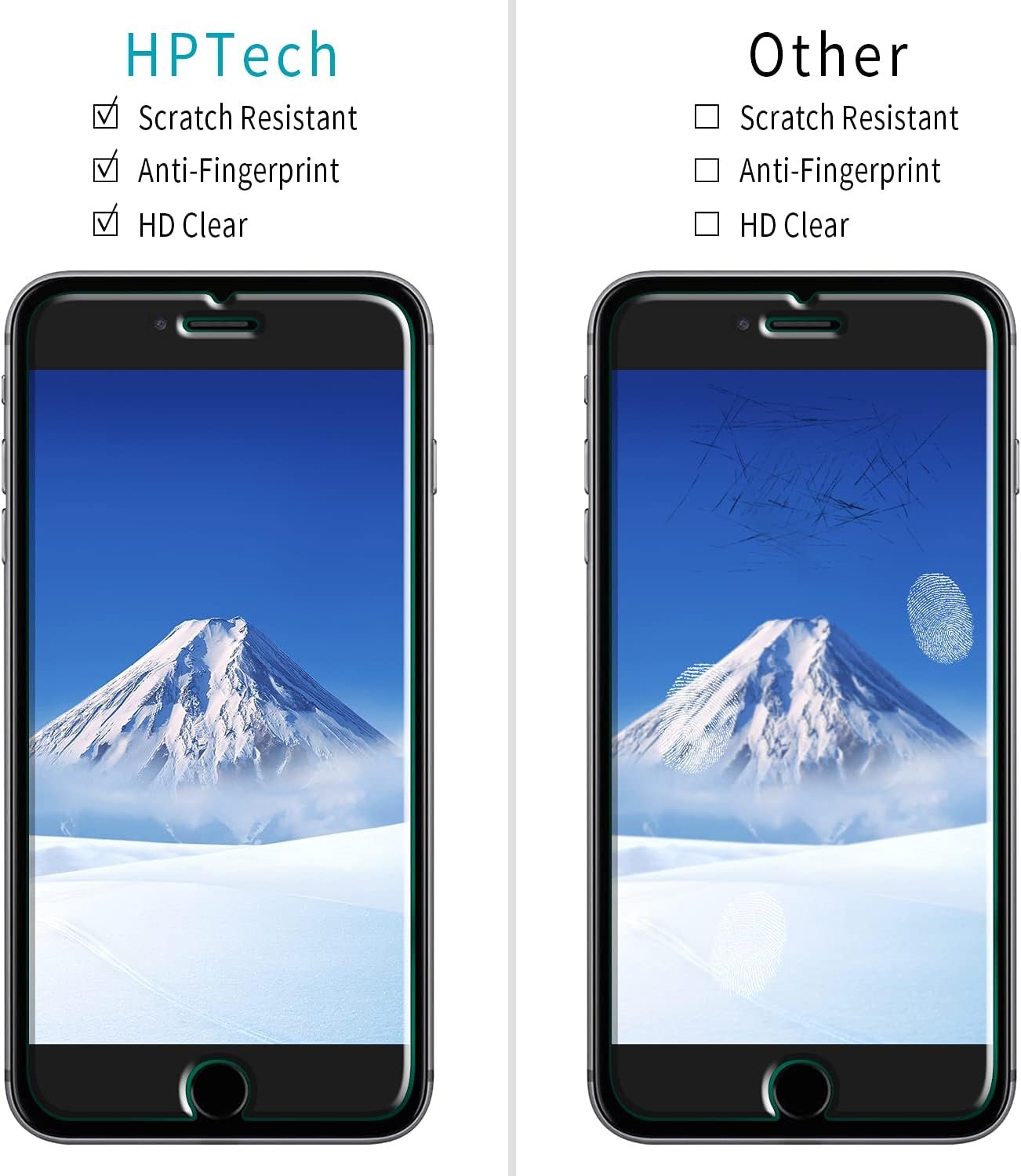 Screen Protector Specifically Designed Only For Apple iPhone SE 2020, iPhone 8, iPhone 7, iPhone 6S, iPhone 6. Highly durable, scratch resistant, surface hardness 9H, Bubble Free Guaranteed, Designed for easy installation. Ultra thin 0.33mm thickness is reliable and resilient and promises full compatibility with touchscreen sensitivity. Package Include: 2x Tempered Glass Screen Protector, 2x Wet wipes / 2x Dry wipes, 2x Dust Removal Stickers with Lifetime Warranty card. Lifetime Warranty: HPTech is committed to provide 100% customer satisfaction, Please email us by Via Amazon message System for any questions.