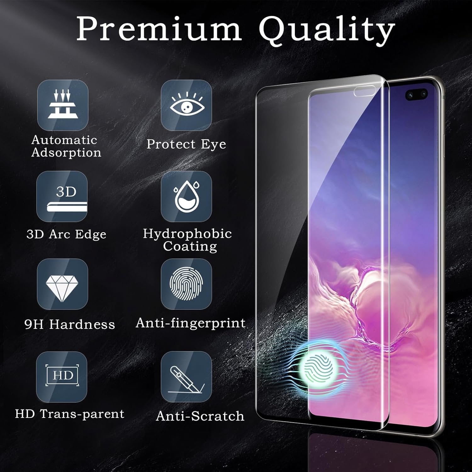 2 Pack Screen Protector for Samsung Galaxy S10 Plus 2 Pack Camera Lens Protector, 3D Tempered Glass Film, Ultra HD 9H Hardness Case Friendly Anti Scratch Ultra Resistant Shatter Protection