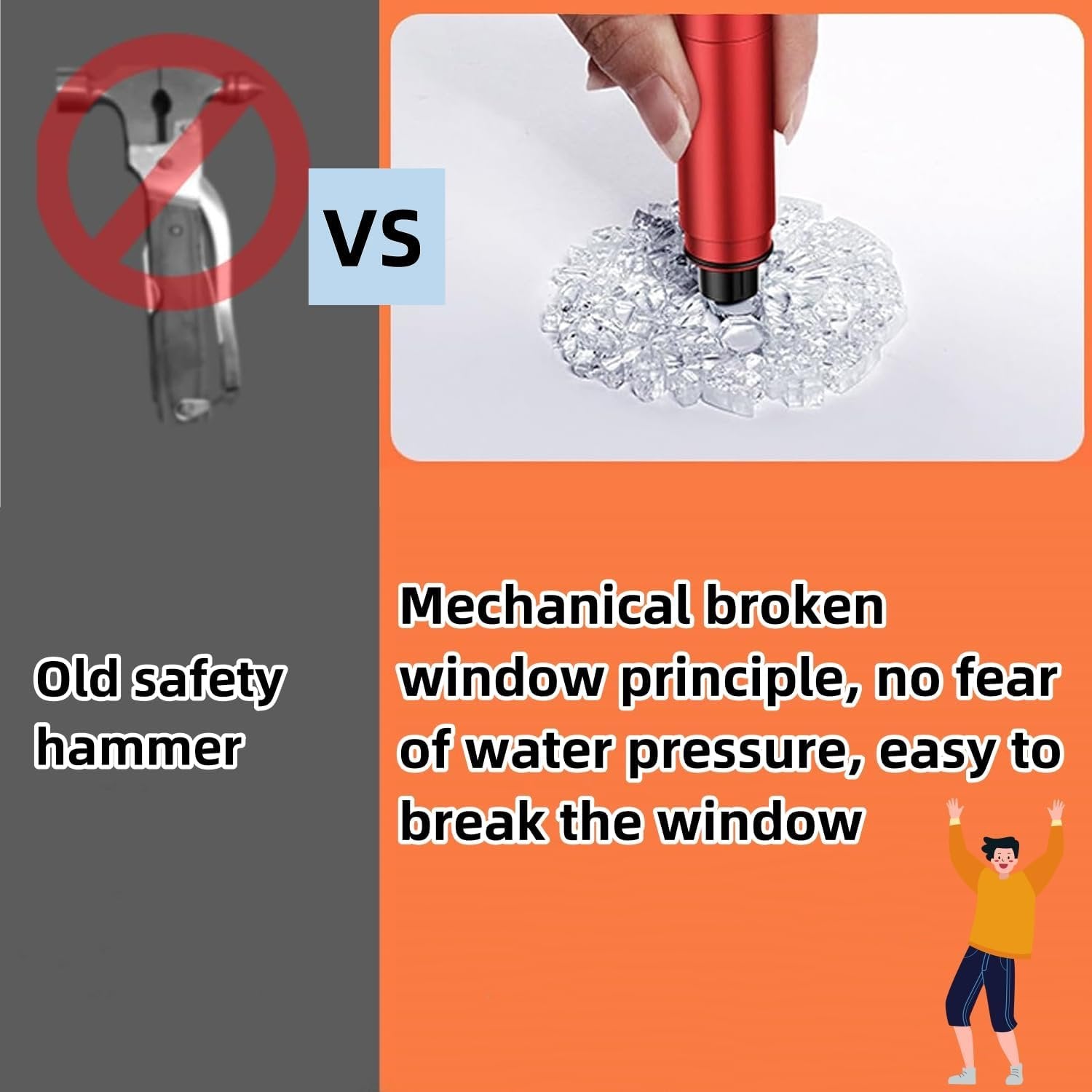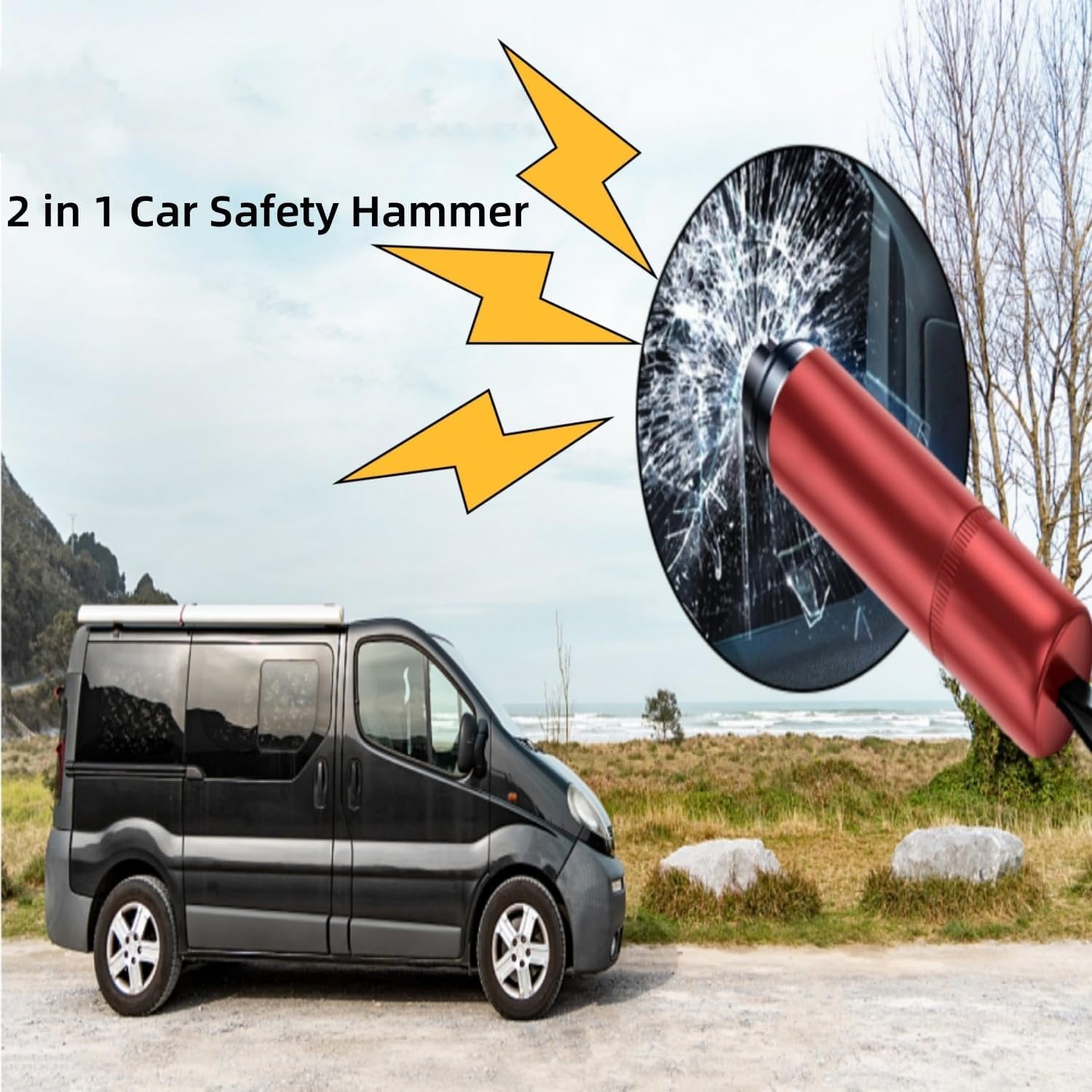 One Second Broken Window Escape Tool---- Our 2 In 1 Car Escape Tool includes life-saving multifunctional safety hammer + seat belt cutter , which are safe and reliable. With one finger press, the solid window glass can be broken in one second,allowing you to quickly get out of the emergency 【Unique Design】:2 in 1 Cutter design----The built-in stainless steel cutter of seat belt cutter adopts U-type hidden knife edge design, which is safe and does not hurt hands. In case of emergency, the safety belt can be quickly cut off for escape. Note: Since the cover is tight, it is recommended to rotate and remove the covers on both sides. 【Car Window Breaker】Our Car Window Breaker has a built-in high-pressure spring,the firm window glass can be broken with a single finger press. NOTE:Metal Tip Stays Inside The Tool - Only Springs Out When Breaking Glass. 【Premium Material】:Metal material,Durable, lightweight and powerful. 【Wide Used】: Recommend this breaker for everyone. It's absolutely worth it. The fashionable safety hammer is also the best gift choice for Christmas, Thanksgiving, Father's Day, Mother's Day, Valentine's Day, Teachers' Day, birthday gifts, business gifts and other festivals. If our product doesn't work well or exist any problem,please kindly contact us.