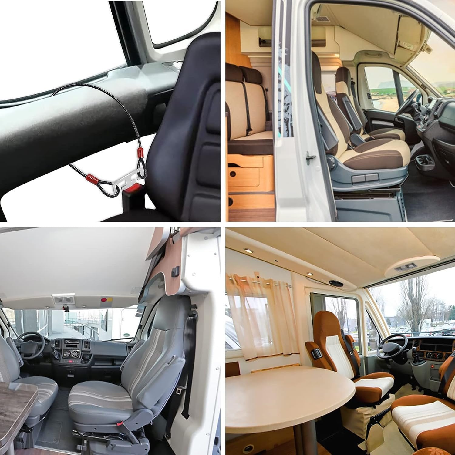 High Quality Stainless Steel Material: 4mm stainless steel double braid security cable with 1mm rubber coating, hard and hard to break.Burglarproof protection from additional locked doors, use this product to connect the door with the seat security lock, so that the door cannot be pushed from the outside.There are two lengths of rope (19.7 In 23.6 In in) for you to choose. Adaptability: following three requirements must be met at the same time1. The door handle can pass through the chain 2. The car seat can be rotated 3. The linear distance of the link is less than 25 cm Easy to use: Space saving, quick to install and remove in seconds, easy to store in car consoles, glove compartments, side door pockets. Suitable for--Standard Fiat Ducato Seats, Citroën Jumper, Peugeot Boxer. Anti-theft protection from closed doors further. Service- If you experience any problems, you can contact us using the contact button to send us an email. We will reply within 24 hours.