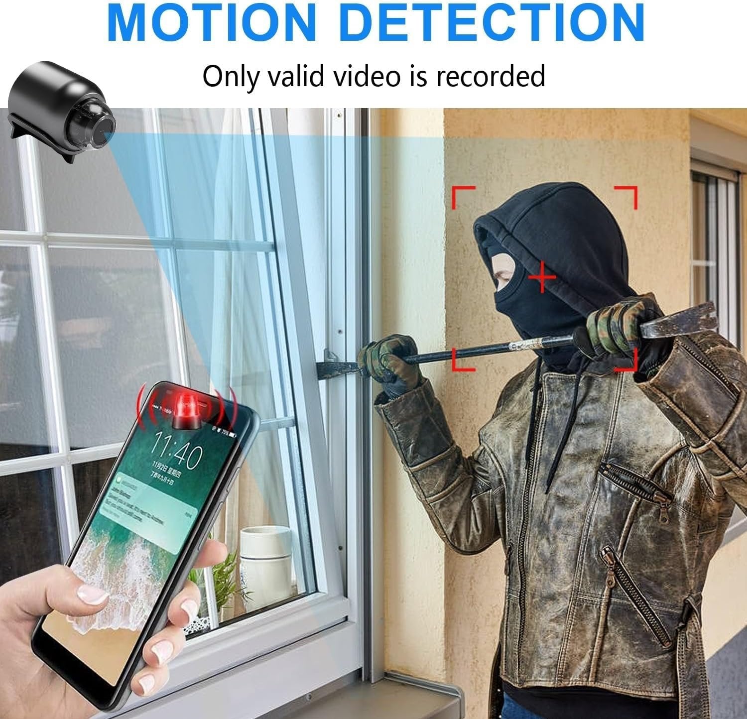 ✔ï¸ã€Enhanced Motion Detection Technology】— QH5 camera has intelligent motion detection function, you can manually set the area and time of monitoring. Once any motion is detected, the camera will send an alarm notification with images to your phone. You can log into the app and check the real-time situation, never worry about missing something important.