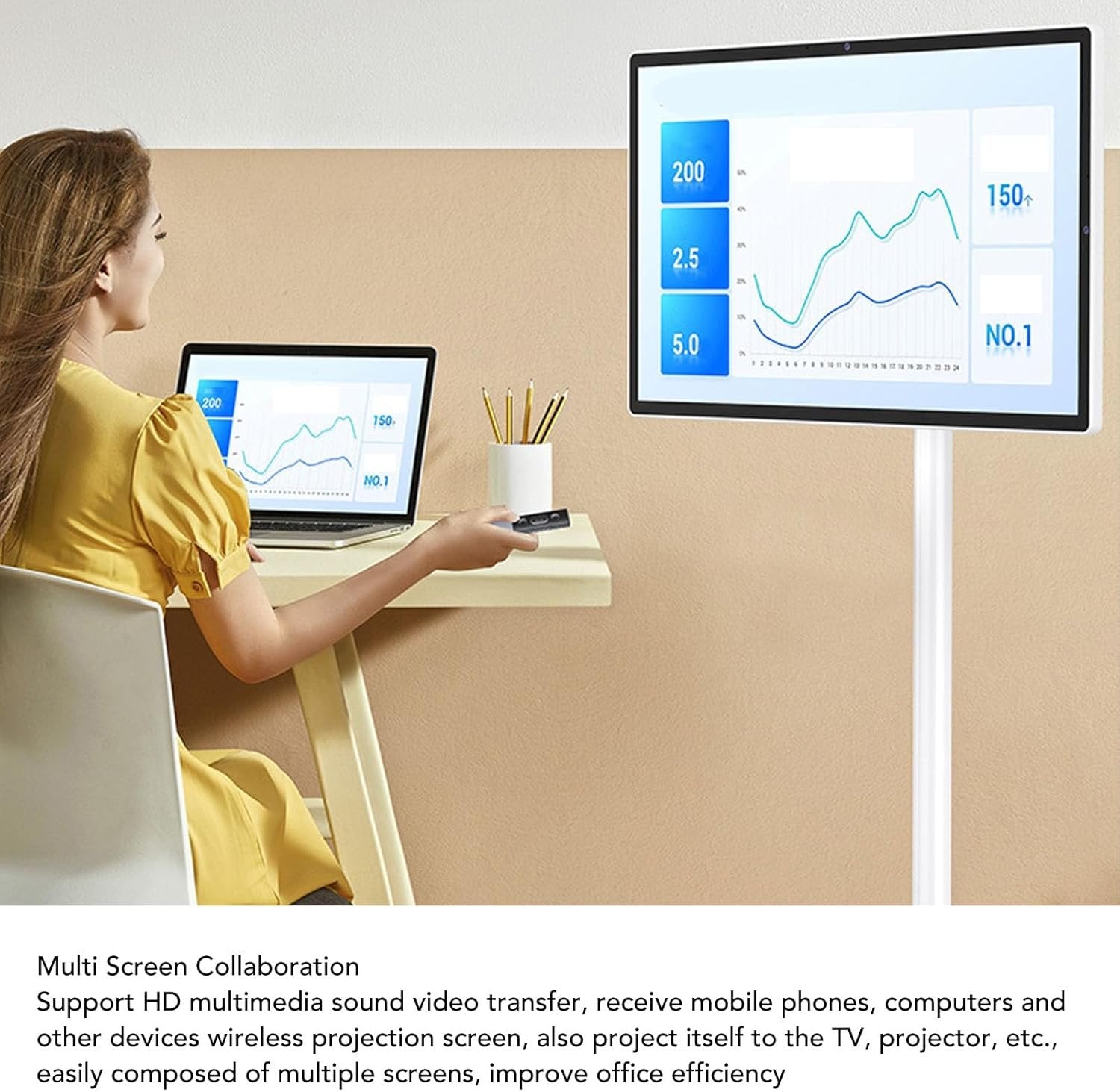 【Versatile Screen】: Experience the functions of a television and tablet in one with this 24 inch display screen. Its built in battery eliminates the need for power cord or outlet, enabling you to work or play from any corner of your space 【5 Rolling Wheels】: Effortlessly move from room to room thanks to its 5 wheels on the base. Ideal for sharing or adapting to different environments, the rotatable screen makes it easy to set the touchscreen to portrait or landscape mode 【Professional Grade Visuals】: Enjoy amazing visuals on a HD LCD display screen with excellent brightness, contrast, and resolution. Ultra slim and lightweight design, with sandblasted high gloss exterior, add a stylish addition to any space 【Interactive Function】: Enhance your creativity with the whiteboard function, support mobile phone projection and access a world information on APP. Ideal for family entertainment gatherings, small office meetings, and advertisement Performance】: Support for Android 12 system, with faster processor, this smart screen offers high performance and strong compatibility, ensures you can install a wide range of external APP, meeting your work and entertainment needs