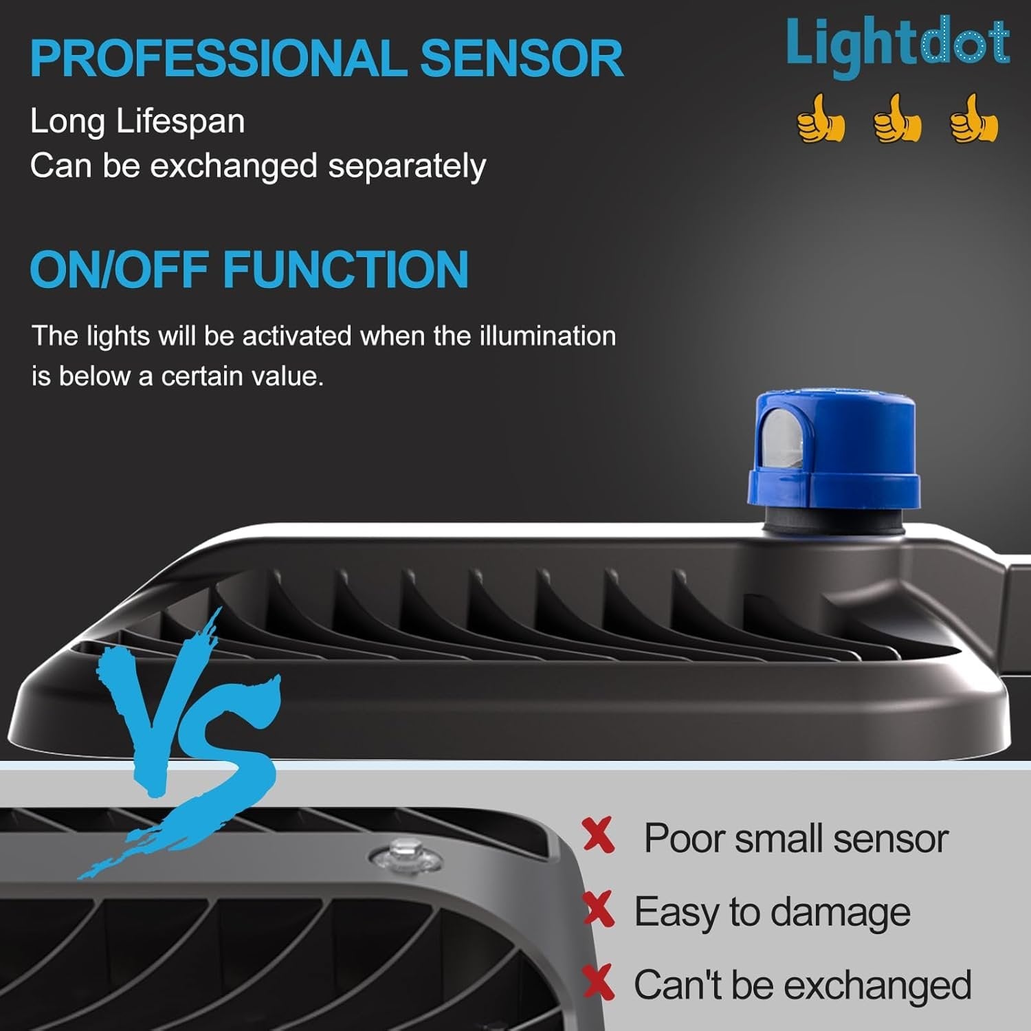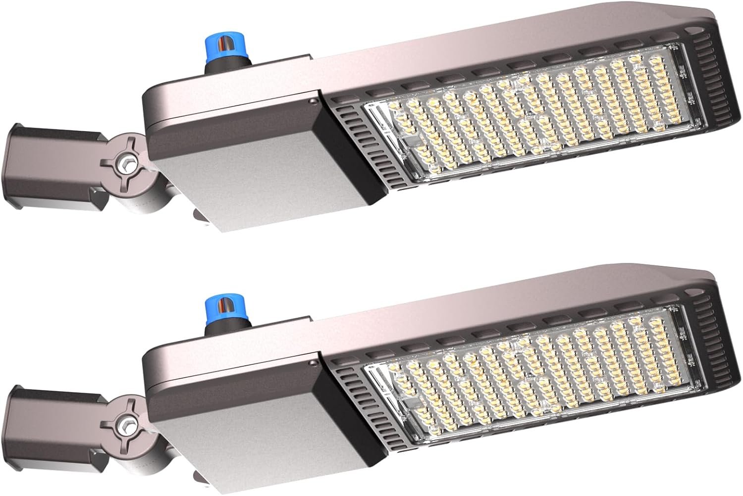 【High-Efficiency Lighting with T3 Lens Technology】🔆 these LED parking lot lights deliver 150lm/W ultra-high efficiency and 75,000 lumens of 5000K bright white light. Achieve zero-dark-spot illumination across 11300 sq.ft (at 30-55ft mounting height) while saving 6800 kWh/year (5hrs/day). Engineered with advanced T3 lens optics, Perfect for large-area lighting in parking lots, warehouses, and roadways. 【Smart Dusk-to-Dawn Photocell Sensor】🌙 Equipped with an auto-adjusting photocell sensor, these outdoor pole lights automatically activate at dusk and shut off at dawn, eliminating manual operation. The detachable photocell design allows quick, cost-effective replacements without removing the fixture—perfect for energy-saving parking lot lighting and reducing long-term maintenance costs. 【Versatile Pole/Wall Mount & IP65 Waterproof】🛠️ Includes adjustable pole mounts for flexible installation on pole, wall mount accessories can be purchased seperately. Passed 24-hour IP65 waterproof testing to endure heavy rain, snow, and voltage spikes. Built with salt fog-resistant materials, these outdoor-rated LED lights guarantee reliability in coastal or industrial areas. 7-Year Warranty & Premium Durability】🛡️ Backed by a 7-year manufacturer warranty and trusted by 50,000+ customers, our industrial-grade LED fixtures undergo rigorous testing for long-lasting performance. Enjoy 24/7 customer support —ideal for commercial property lighting, building exteriors, and public safety areas.