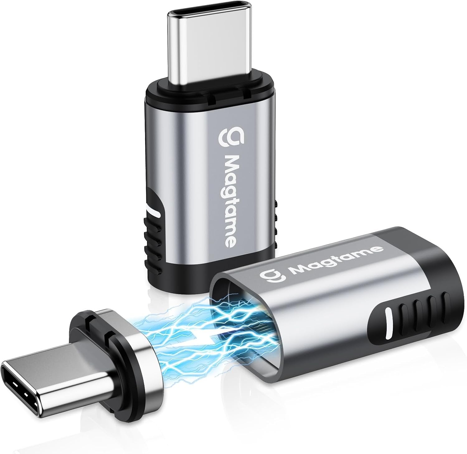【Strong Magnetic Connection】Featured a new magnetic design, this magnetic USB C adapter can greatly reduce the wear and tear of your notebook port due to repeated pull and plug. Besides,Very Convenient for you to work, play games, watch videos, etc. 【Max PD 240W Fast Charge】This USB C magnet connector also supports 5A max power delivery to realize high-speed charging, enhancing your charging experience at work or entertainment. Besides, it can provide over-current protection, over-voltage protection and over-charging protection when charging. 【40Gbps and 4K@60Hz Video Output】The magnetic USB Type C adapter supports 40Gbps data transmission and 4K@60Hz video output, which helps you watch video, and play games smoothly at home, in school, or office. Besides, 40Gbps transmission speed allows you to transfer music, documents, and pictures in a few seconds, increasing the efficiency of your work (Note: Except for adapter, data transmission speed also relates to USB devices and cable) 【Safe 24 Gold-plated Pins】 This USB-C magnetic adapter with a reversible 180-degree 24-pin connector allows flexible usage. The magnetic attachment facilitates quick one-second charging, and the built-in charging indicator light displays the current charging status for added convenience. 【Wide Compatibility with USB C Devices】 This Magtame USB-C magnetic extender is compatible with most USB C devices, such as Steam Deck, MacBook Pro/Air, ROG Ally, PS5 & PSVR2, Switch, iPad Pro/Air, Surface Book 2, Galaxy S21 S20, S10, Note20 10, LG G7 V20, Pixel, Chromebook and other Type C devices, satisfying your different daily needs.