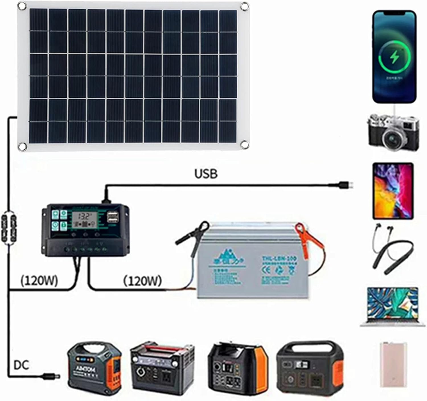 ★ Complete kit includes: 1 X 500W (2Pcs x 250W) Solar panel, 4 X Buckle, 8 X Suction cups, 2 X Car charger, 2 X Battery clamp, 2 X DC male cable, 2 X Controller board, 2 X DC 2 in 1 Line ★ High quality monocrystalline solar cell, covered by high reflection rate ETFE layer, High efficiency, conversion rate 23-24%,High conversion for continuous power supply as long as there has sun. ★ Flexible Solar Panels board that can be bent up to 30 degrees, can be primarily used on off-grid applications that include rooftop, RV, boats and any curvy surfaces ★ Thin & Lightweight:250W solar panel weighs approximately 4lb,Thickness is 0.1in, weighs 70% less than conventional solar panels, making transportation and installation a breeze. ★ Highly Durable: Rigorously tested, the 250W panel was designed to withstand extreme wind of up to 2400 Pa and snow loads of up to 5400 Pa
