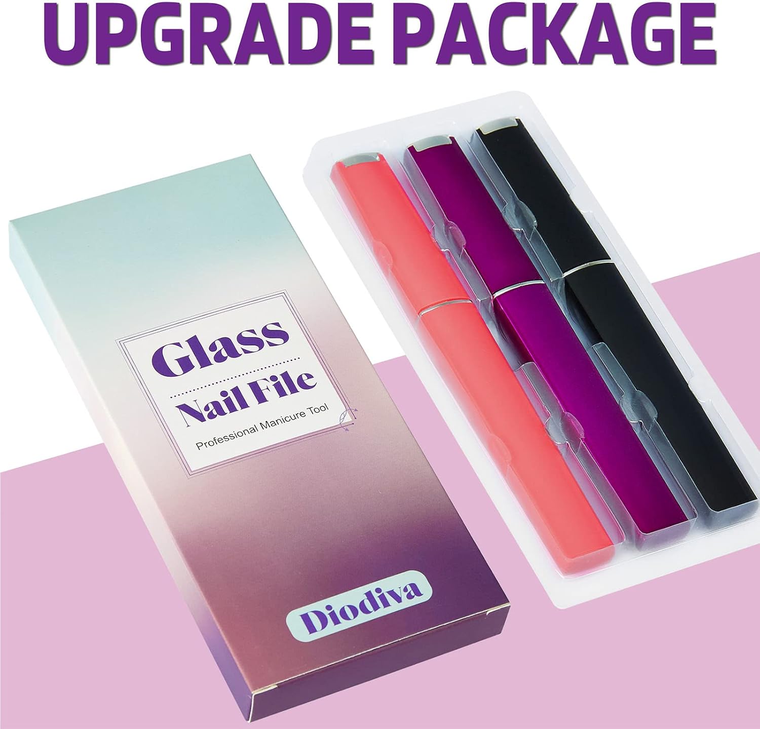 3 Pack Crystal Glass Fingernail File with Case for Natural Nail Professional Czech Glass File Double-Sided Etched Gentle Nail Care Stocking Stuffers for Women or Adults, Unique Gifts