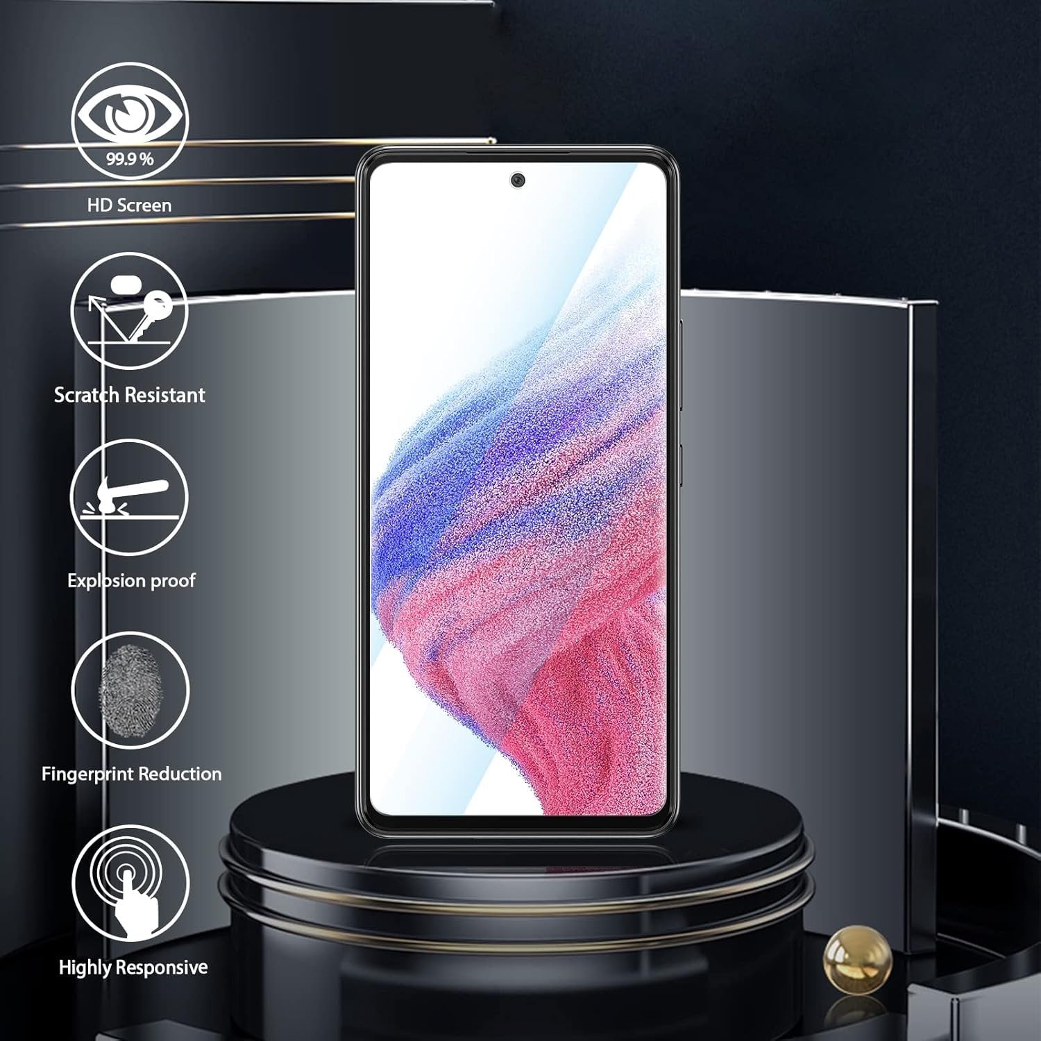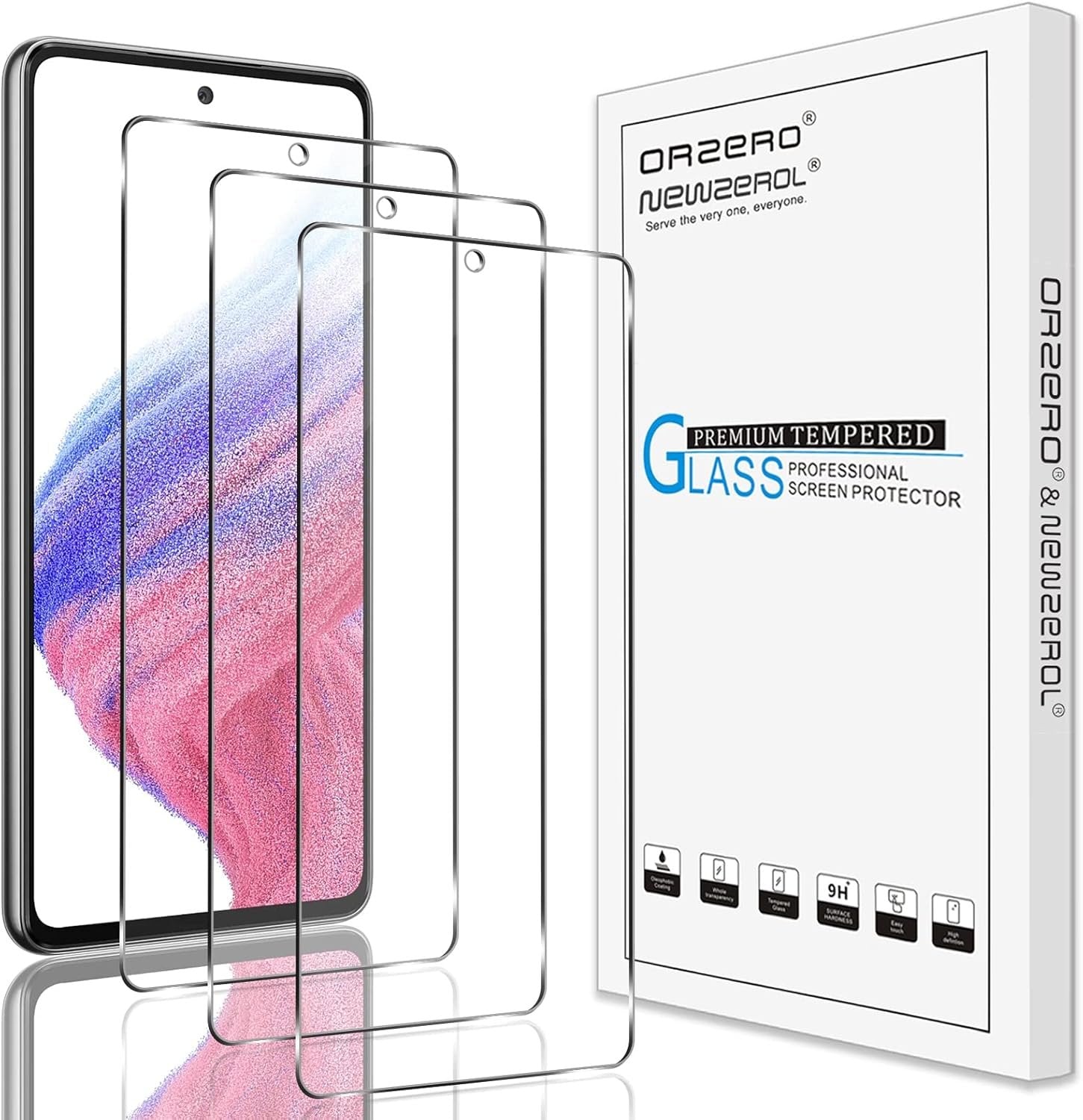 (3 Pack) Orzero Compatible for Samsung Galaxy A53 5G, A52, A52 5G Tempered Glass Screen Protector, Front Camera Cutout 2.5D Arc Edges 9H High Definition Anti-Scratch Bubble-Free (Lifetime Replacement)