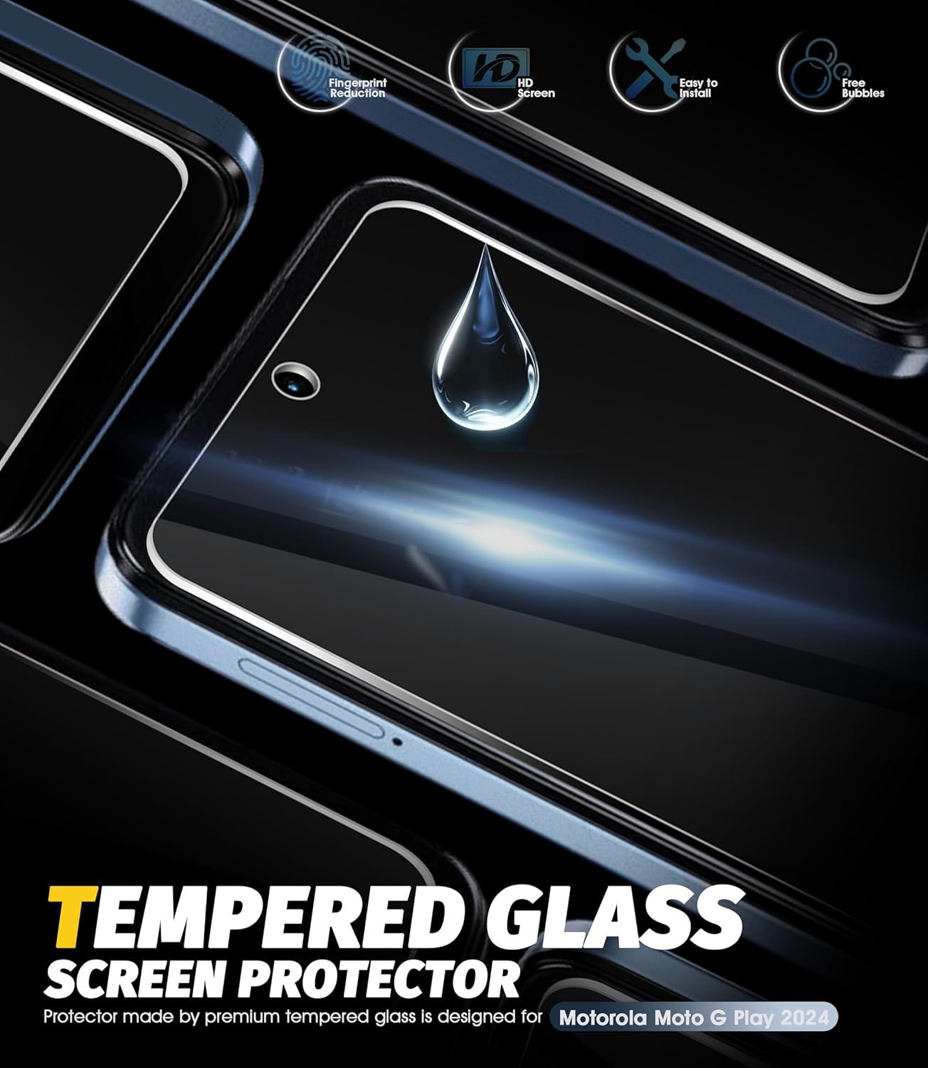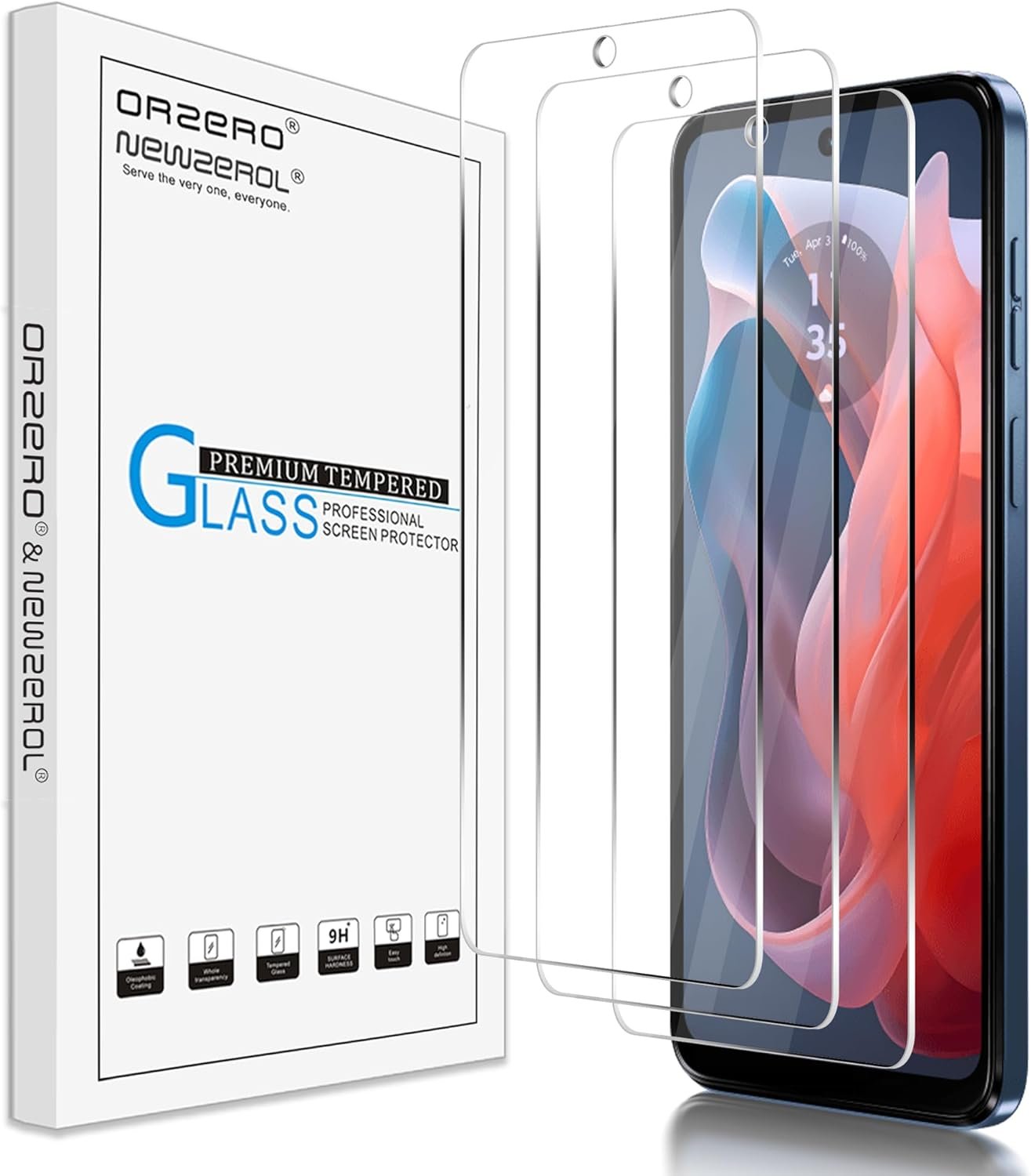 (3 Pack) Orzero Tempered Glass Screen Protector Compatible for Motorola Moto G Play 2024, Precise Front Camera Cutouts High Definition Anti-Scratch Bubble-Free