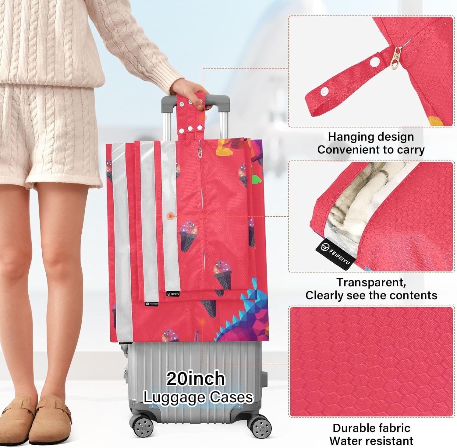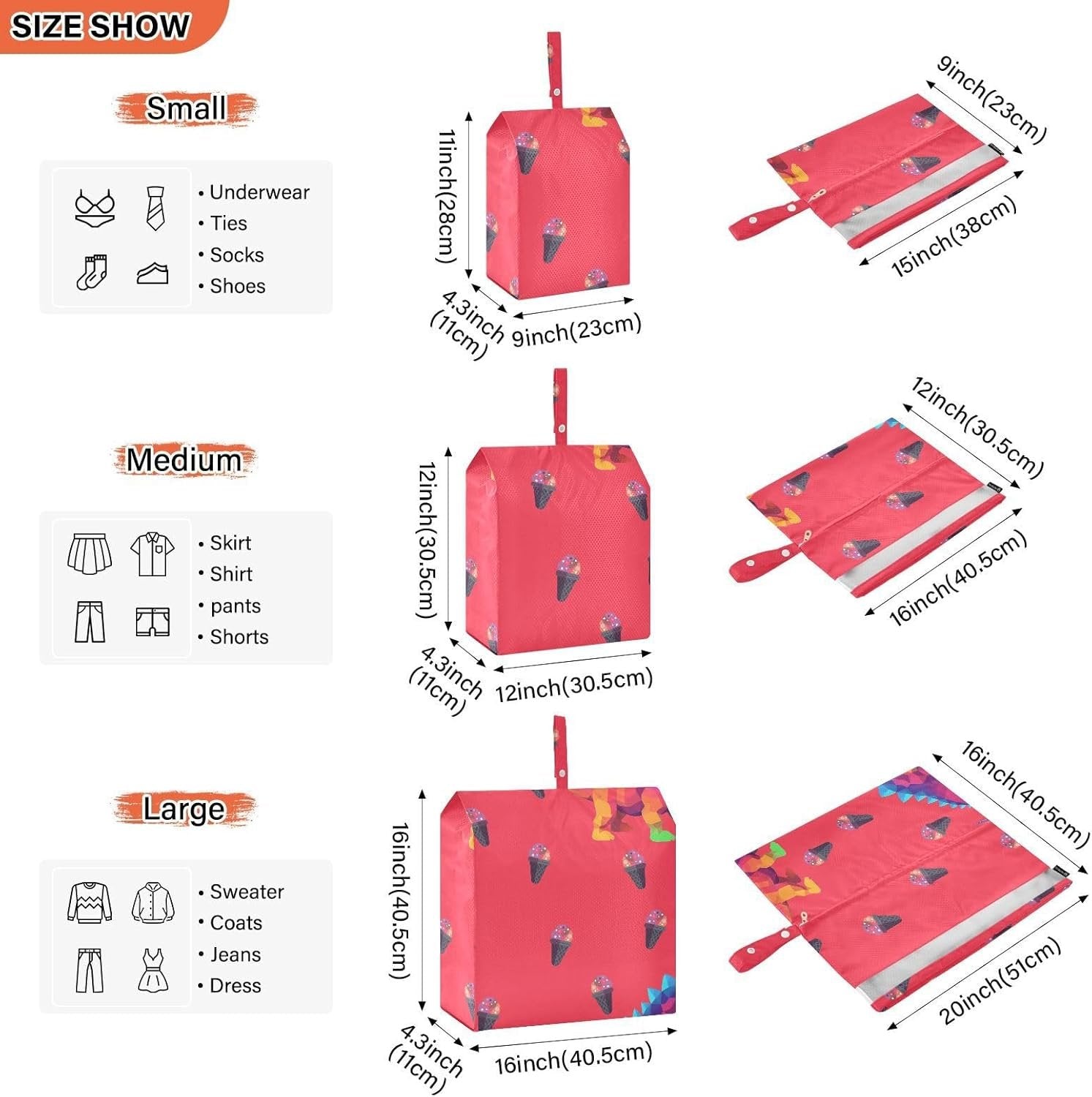 3 Set Packing Travel Organizer, Black Icecream, Office Storage & Organization, Folding Closet Organizer Reusable Bags For Clothing