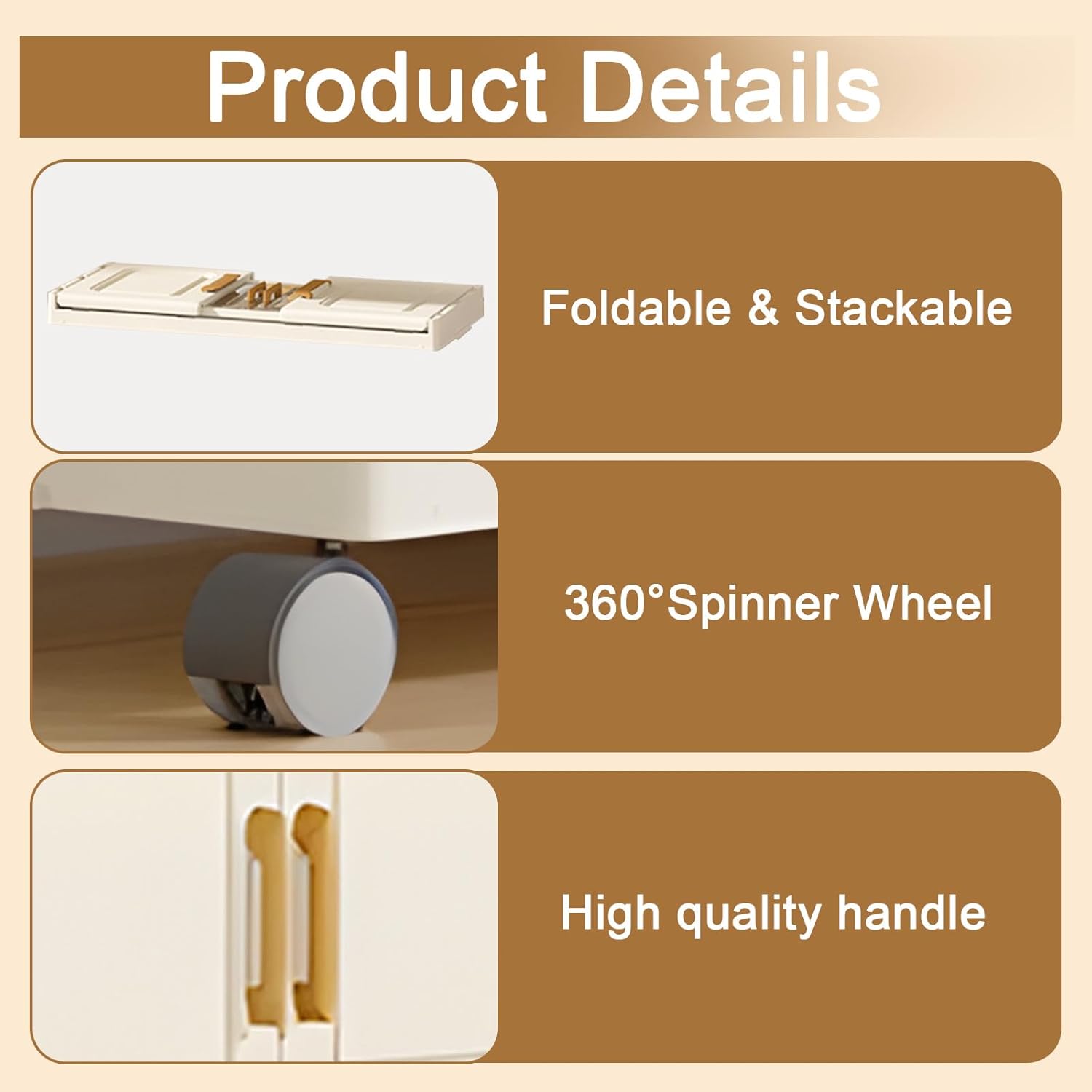 Versatile Storage Solution: Ideal for closet organizers and storage, these bins store clothes, books, snacks, etc. Perfect for home, RV trips, or camping—solving storage and organization needs across various scenarios. Foldable, Stackable & Mobile Design: Easily fold in a few steps for compact storage. Top/bottom grooves enable secure stacking, while 4 wheels ensure smooth mobility—making them standout stackable storage bins for flexible use. Large Capacity & Heavy-Duty Build: Measuring 48.5 x 20.5 x 25.5cm, these storage bins with lids offer 48-quart space. Supporting 150 lbs, they handle heavy items like books—excellent as robust storage box solutions. User-Friendly Access Design: Dual front doors allow quick access to essentials, while the removable top cover simplifies reaching larger items like blankets. A practical feature for efficient storage and organization. Premium Durable Materials:Crafted from shatter-resistant PP plastic, these storage bins ensure long-term durability. Protect belongings at home or on the move, combining toughness with everyday usability.