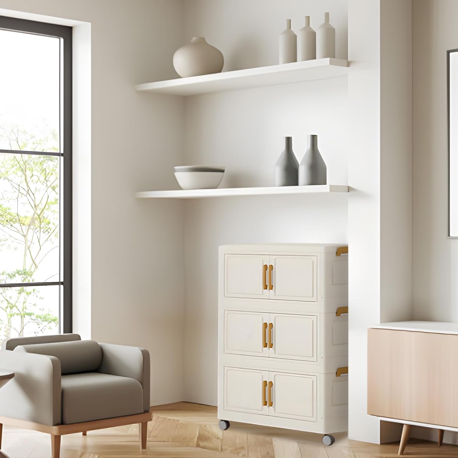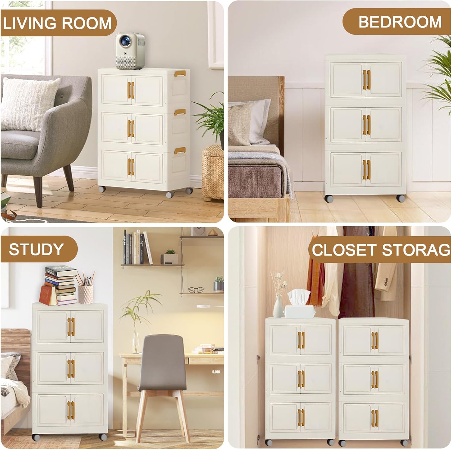 3 Tier Stackable Storage Bins with Lids, Storage Box-Closet Organizers with Wheels Heavy-Duty Collapsible Containers with Doors for Home Organization, Bedroom, Office, Dorm