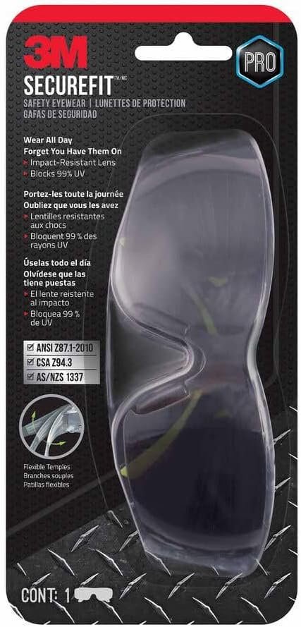 3M Safety SF400G-WV-6 Pro SecureFit 400 Eye Protection Safety Glasses, Black Frame and Gray Lens, Anti-fog, 1 Pair