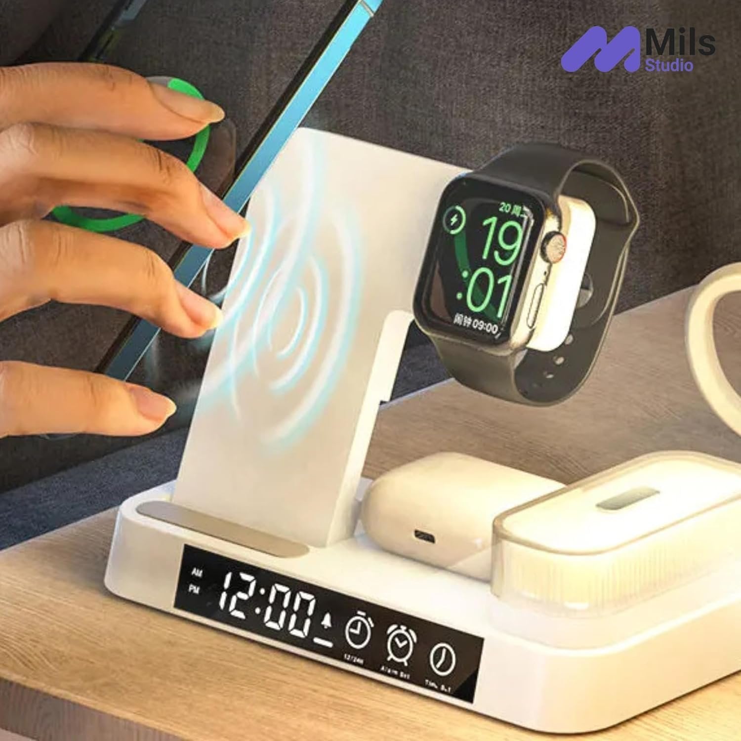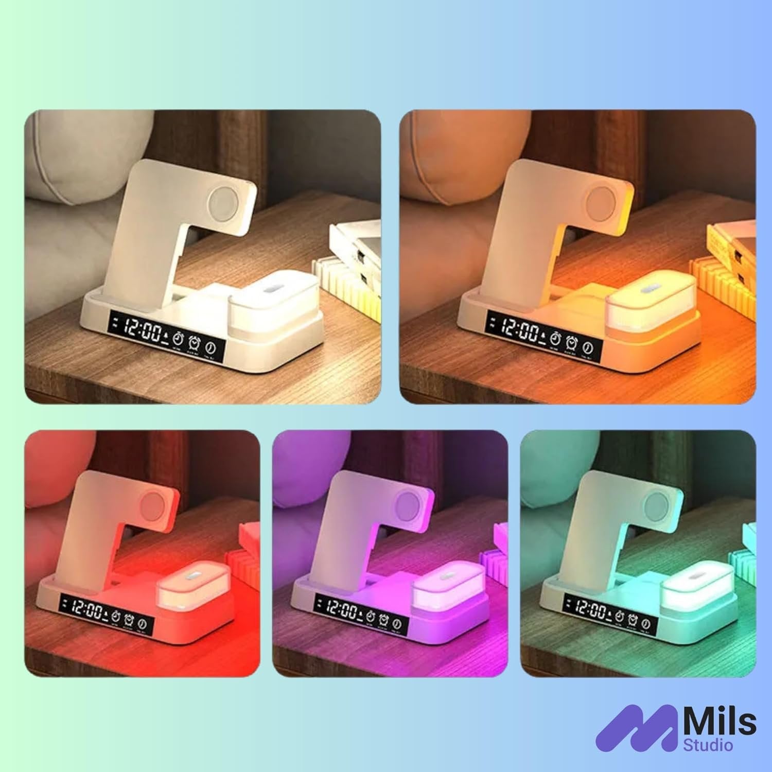 Universal Device Compatibility: Supports all wireless charging-enabled smartphones, including iPhone 8+; Apple Watch Series 2+; and AirPods (2nd, 3rd gen, Pro) with wireless charging case. 7 Adjustable LED Lighting Modes: Customize your space with the light’s 7 color settings, perfect for mood lighting or practical illumination. Compact and Foldable Design: Ideal for limited space, this foldable charger easily expands and collapses for portable use, saving desk space at home or work. 30W Fast Charging: With a total 30W output, charge your phone, watch, and earbuds simultaneously while also enjoying the LED light. Magnetic, Detachable LED Light: The LED light can be removed and stuck to any magnetic surface for versatile lighting options. Perfect for late-night reading or as a nightlight.