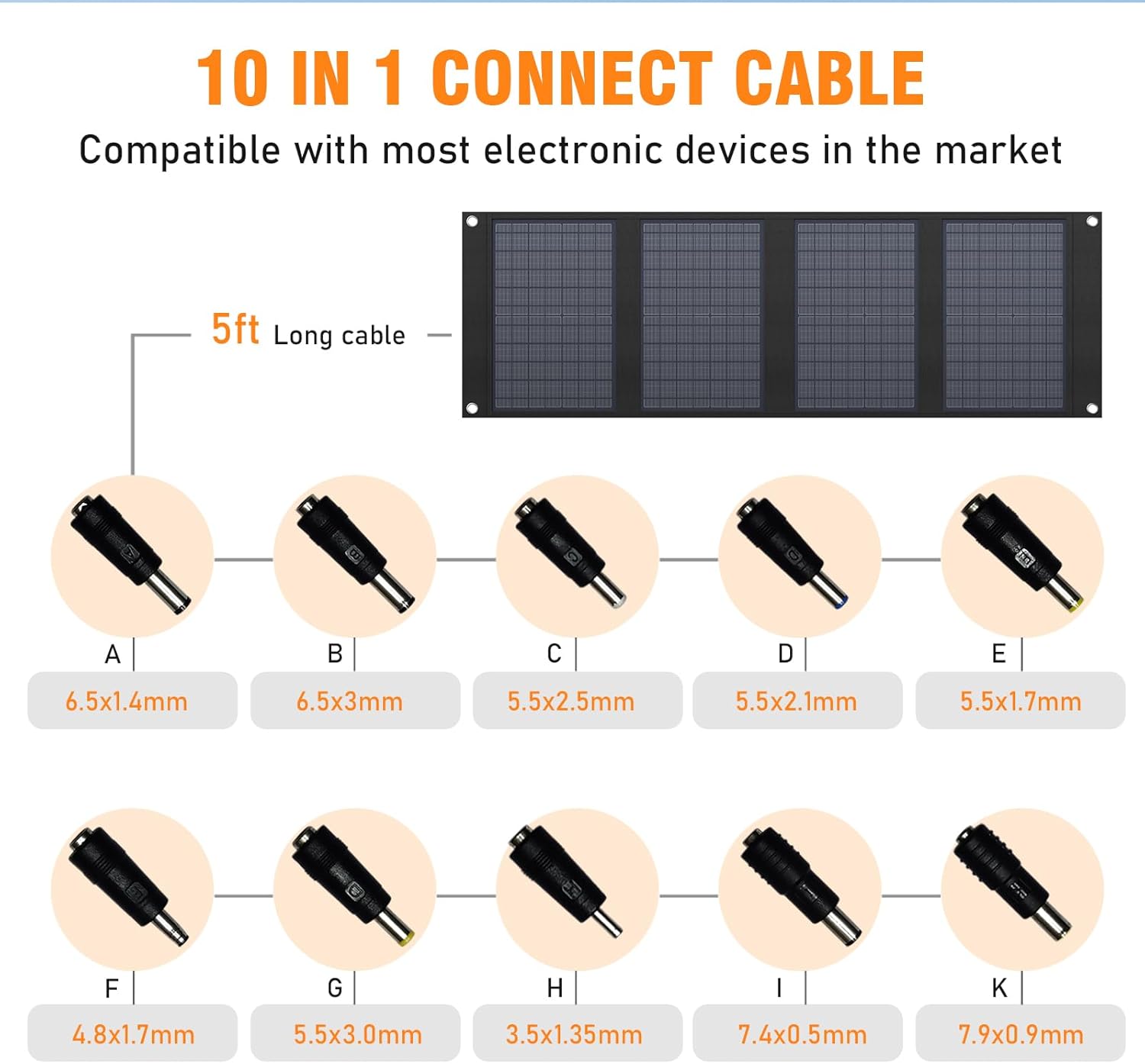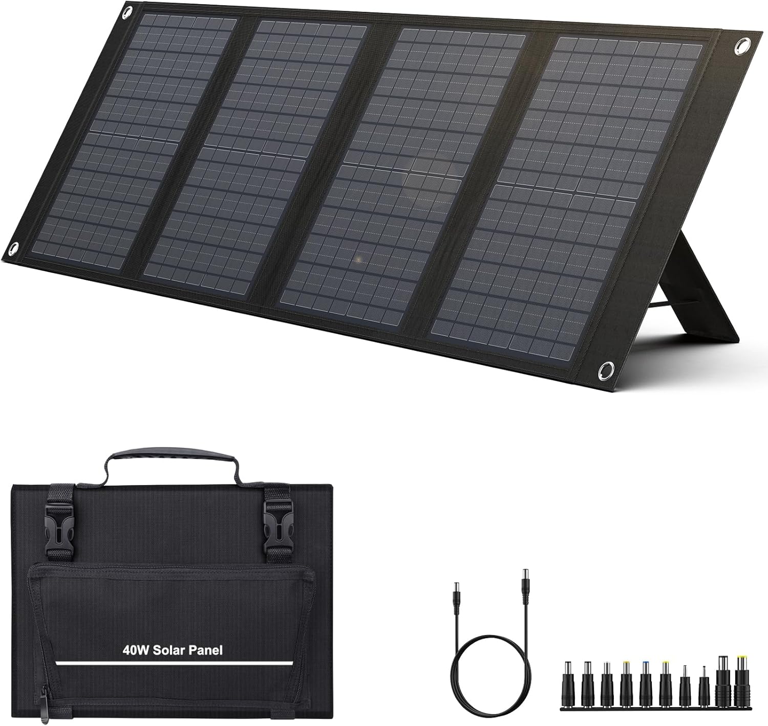 40 Watt Portable Solar Panel for 100W~200W Portable Power Station, Foldable Solar Charger with 12-15V DC Output (11 Connectors) and Adjustable Kickstand,USB QC3.0 Port for Camping Hiking Van RV Trip