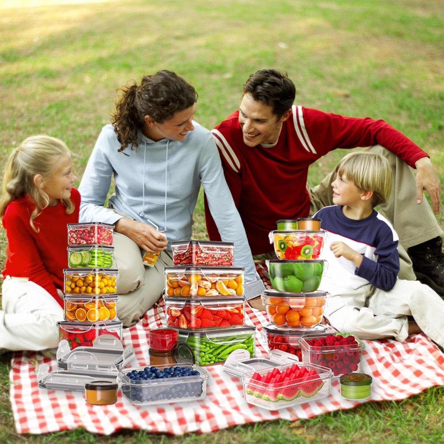 Perfect Size for All Your Storage Needs: This 44-piece set includes 22 containers and 22 different sized lids.40 pieces Labels & 1 washable marker pen.Rectangular (2*1000ml, 3*840ml, 1*320ml); Square (2*550ml, 2*350ml,2*60ml); Round (2*700ml, 1*300ml, 1*240ml, 6*36ml) 100% Leak-Proof & Keep Fresh : Food storage containers are designed with high-quality silicone seals and 4 reinforced latches to ensure airtight and leak-proof storage, no more worries about spills or food smells leaking into your fridge, with food storage containers will stay fresh and intact, keeping it delicious for longer. Easy to Carry&Space-Saving:Storage containers are lightweight,sturdy and easy to carry.It's the best choice for students' and workers' lunches,whether they are used in the office,at school or at picnics.They are designed to be stackable that allow you to easily nest the containers together.Equipped with reusable labels and marker.keeping your kitchen neat and organized. BPA-Free & Food Grade Materials:Our food storage containers with lids are made of high quality plastic materials that are durable and BPA-Free. This food containers with lids are made of transparent material, so you can clearly see the food inside. Our meal prep containers reusable are great choices for storing leftovers, fruits, vegetables, cooked meals, dry food and sauce. Safe and Easy to Use: Our plastic food storage containers with lids can be heated in the microwave, washed in the dishwasher, and stored in the freezer. (Note: Please do not put the lid into the microwave and dishwasher, high temperature will lead to deformation of the sealing ring affecting the closure of the lid and container).