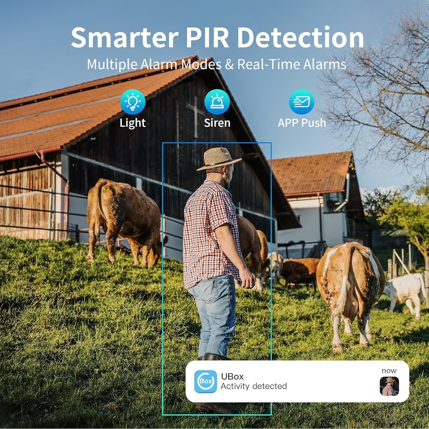 4G LTE Network & No WiFi Needed - 2 Pack 4G LTE cellular security camera is wireless and can work without WiFi. It is perfect for security and remote monitoring in places like farms, ranches, jobsites, cabins, vacation homes, and barns. The cellular security camera is made of enhanced IP65 material, it never quits no matter in heavy rain/snow or extreme sun Unlimited Data & Flexible SIM Card Options - No WiFi security camera supports 4G LTE networks from Verizon, T-Mobile, and AT&T, while coming with a prepaid 4G LTE data SIM card with 300M of trial data. Using the prepaid SIM card included with cell cameras to choose an unlimited data plan, no longer have to worry about exceeding the data limit and incurring extra charges. Alternatively, you can switch to your own SIM card Solar/Battery Power & True Wireless - Off grid security camera that works without WiFi is equipped with a 10400mAh rechargeable battery and 6W solar panel, so you don't need to worry about it running out of power. This cellular security camera outdoor ensures uninterrupted power, operating stably for 365 days. Gets non-stop electric power for this cellular trail camera from the solar panel PIR Sensing & Playback on SmartPhone - This trail camera cellular adopted advanced technology and a highly sensitive PIR motion sensor to reduce false alarms. When motion is detected, it will send alerts to your phone, while all motion-detected video and snapshots are saving a memory card locally up to 128GB or back up to the cloud (30-day trial), so that you can play it back anytime.