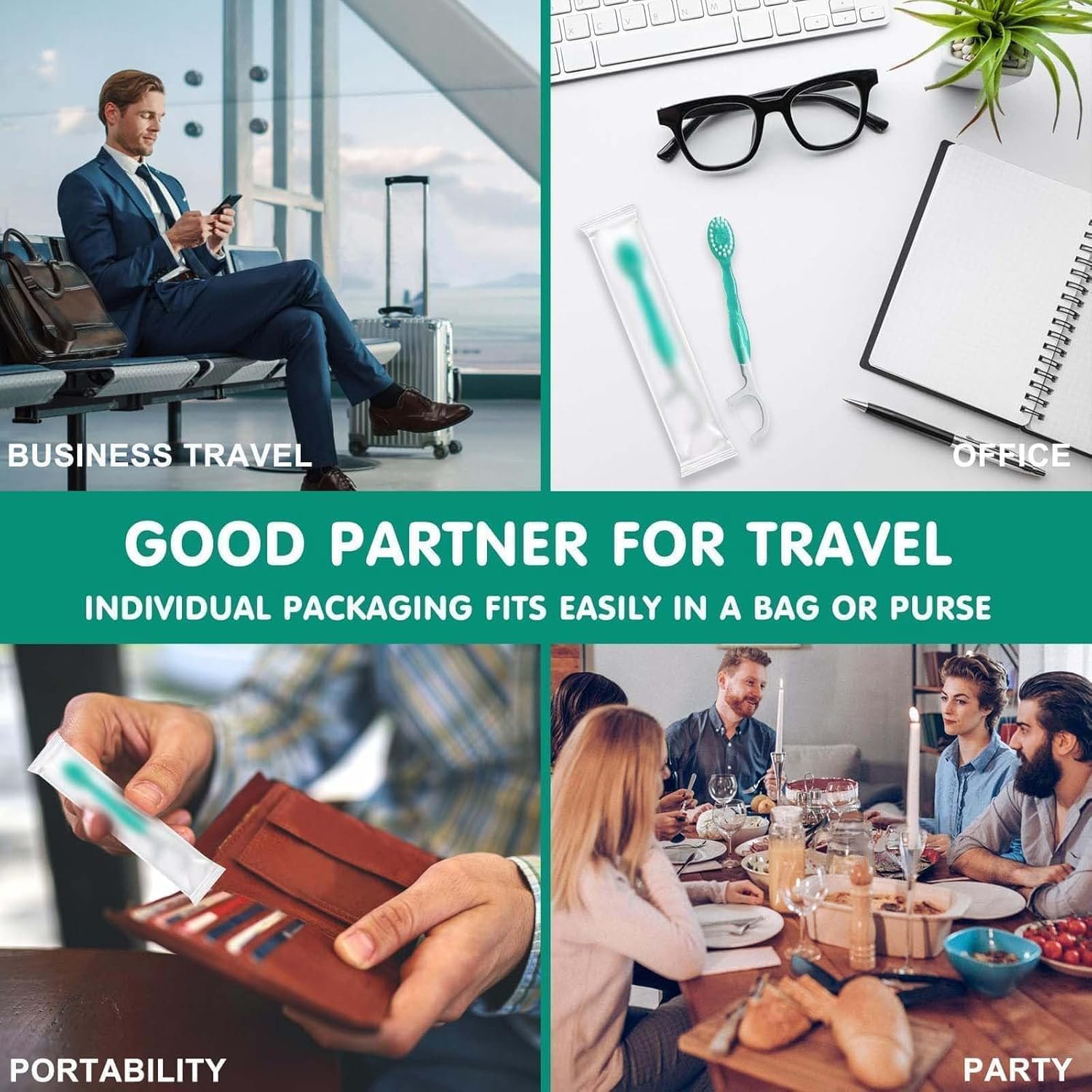 Waterless & Travel-Friendly: Disposable brushes release minty foam for 60-second cleaning, eliminating the need for water or rinsing. Ideal for flights, camping, offices, or any situation where water access is limited. Individually wrapped mini brushes fit easily into pockets, offering grab-and-go convenience. Gentle Yet Effective Cleaning: Soft Nylon Bristles, Safely clean teeth, braces, and hard-to-reach areas without irritating gums.Integrated floss, toothpick, and tongue scraper address interdental gaps, remove food particles, and scrape for a thorough clean, promoting fresh breath and oral health. Variety & Freshness: Flavor Options, Some sets offer a mix of delightful flavors for variety, enhancing the brushing experience. leaving the mouth feeling clean and breath fresh. Versatile Use Cases: Thoughtful Gift, Convenient and practical, making it a great gift for busy professionals, students, or frequent travelers. Hygienic Disposability, Single-use design ensures hygiene, especially in shared or public spaces.