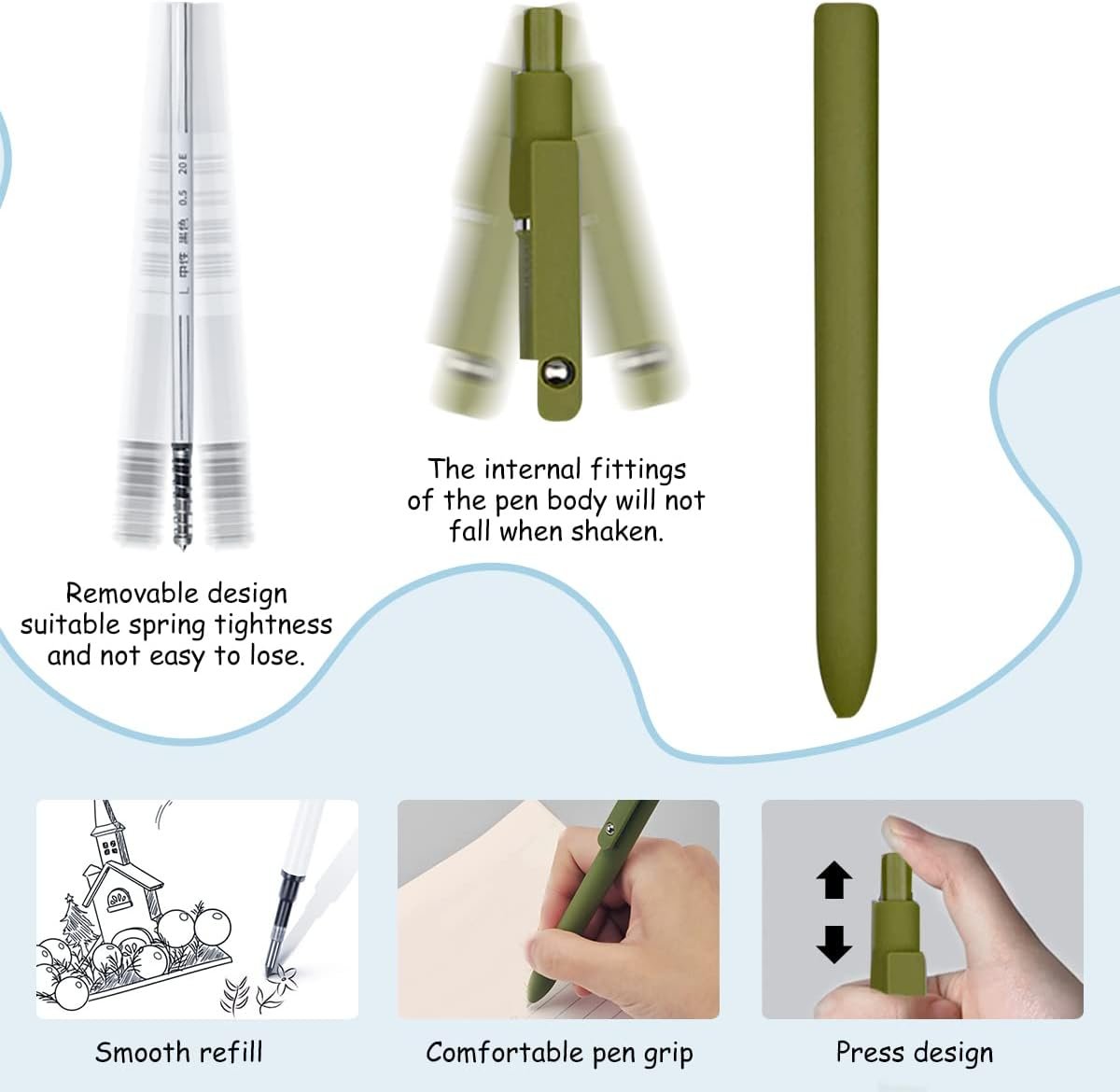 ✍️【Easy & Comfort to Hold】The pen holder of the journaling pens are made of high quality abs material, with a unique flexible touch, providing a comfortable grip and no fatigue for long writing sessions. ✍️【Smooth Writing & Quick Drying】Our pastel pens are designed with a fine point 0.5mm bullet tip, and the black ink comes out evenly, quick drying without leakage, smooth writing and clear handwriting that keeps the page neat and tidy. ✍️【Steel Ball Pen Clip & Retractable Design】The non-marking sliding ball pen clip can effectively reduce scratches on paper, you can clip the gel ink to your book or pocket at will for easy carrying. And retractable the design is convenient for writing and storage. ✍️【Widely Used & Giftable】This ballpoint pen is suitable for daily writing, note taking, marking, signing, sketching, artistic drawing and doodling, also perfect festival and birthday party gift for family, friends, colleagues, students, teachers, kids.
