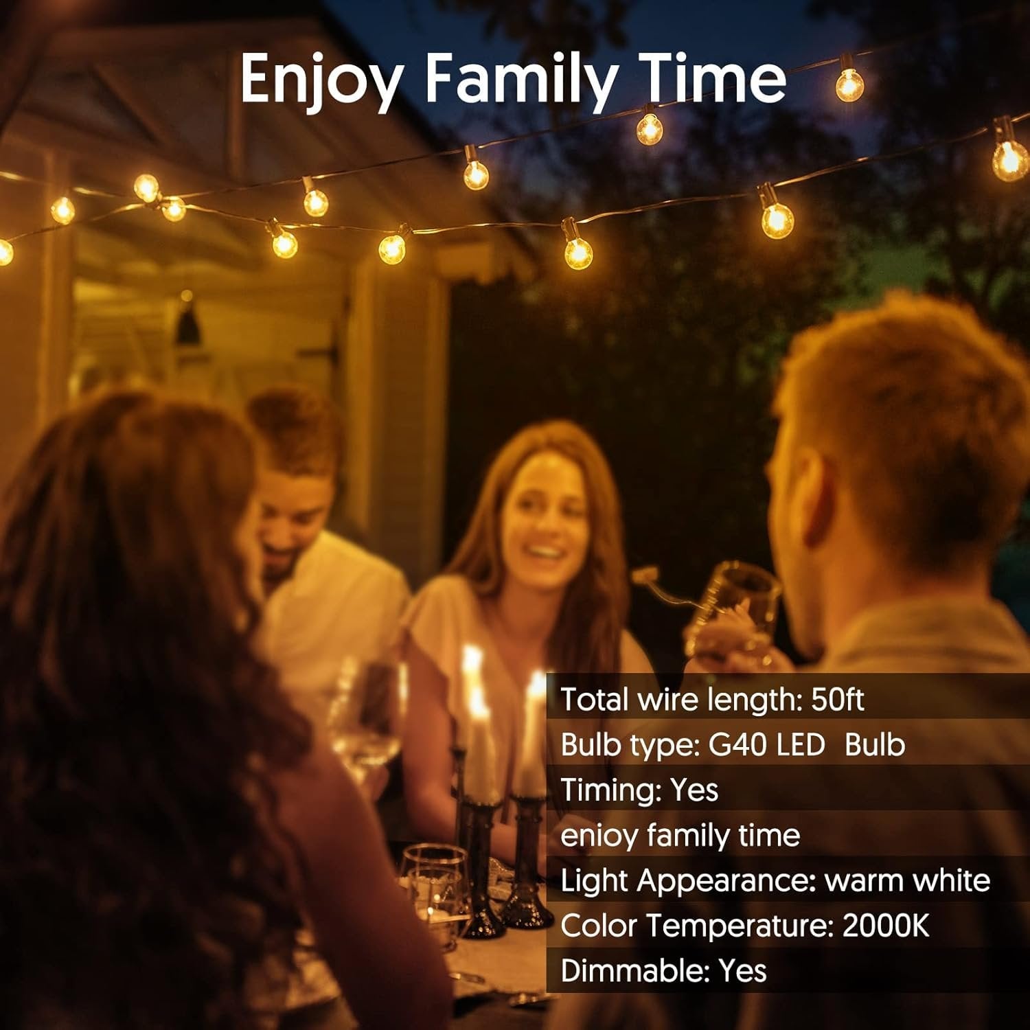 50FT Smart LED Outdoor String Lights – Dimmable G40 Globe LEDs Patio Lights Plug in with 25 LED Bulbs, Waterproof Hanging Light Connectable up to 100FT– Backyard Porch Balcony Party Decor