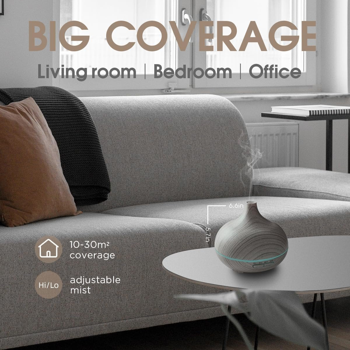 5-IN-1 AROMATHERAPY DEVICE: This ultrasonic essential oil diffuser is an amazing multi-functional aromatherapy device. It features a large and easy-to-clean 550ml water tank, 7 LED light colors, multiple mist nebulizer modes and remote control, as well as a safety auto-switch that prevents it from overheating in case it runs out of water. CONVENIENT REMOTE CONTROL: Our diffuser comes with an easy to use remote control that can control it from up to 16.5-feet and change the lighting and misting modes as well as set the humidifier's timer. The LED light can be fixed or cycled through. The diffuser has 1H/3H/6H timers and steady ON mode. You can also set intermittent mist via the remote control. ULTRA-QUIET FAN: With the upgraded ultra-quiet fan, the diffuser is quieter than ever. The noise level is lower than 23 dB, which is quieter than gentle sound of breathing. You can enjoy the relaxing and fragrant atmosphere at your space anytime. PERFECT FOR DIFFERENT OCCASIONS: The mist and light functions of this aromatherapy diffuser work separately. You can turn off the light at night while sleeping. Or use this diffuser as a nightlight. It's a wonderful companion for reading, sleeping, working or doing yoga. BPA FREE MATERIAL: The diffuser is made of finest PP material, which is safe for your baby and pets. With our beautiful gift box, you can choose to give this nice gift to your family and friends. We provide two year technical support, no need to worry about the quality. Your satisfaction is paramount!