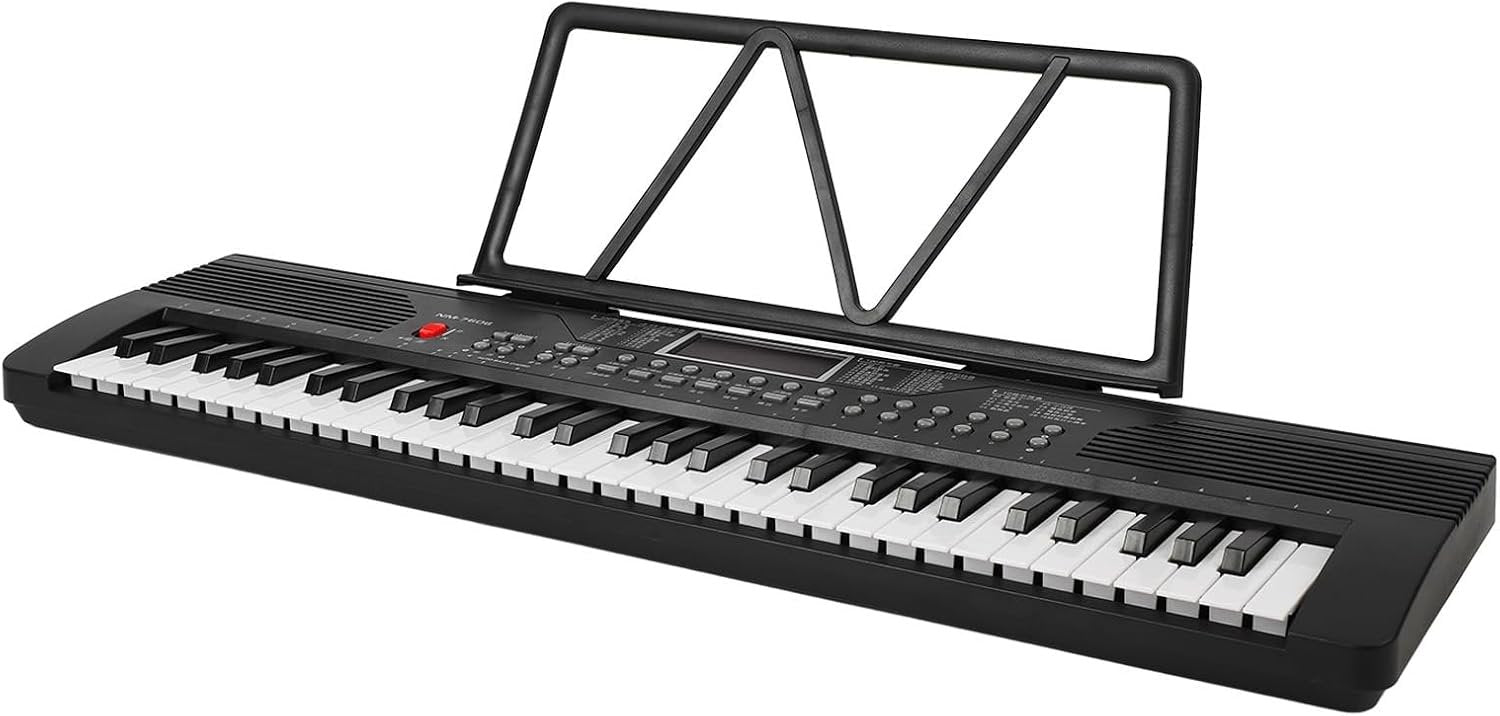 61 Design portatile chiave - Questo pianoforte digitale leggero presenta un design pieghevole compatto (31.5x11.6in) con manico da trasporto, per la pratica della musica di viaggio e lo spazio per lo spazio per la casa. Qualità del suono premium-Gli altoparlanti a doppia qualità incorporati offrono ricchi toni per pianoforti con polifonia a 128 note, ideali per l'apprendimento dei principianti e le prestazioni professionali. Kit di avviamento completo - Include un supporto per la musica per cavi di ricarica USB microfono e l'adattatore di alimentazione - tutto necessario per le lezioni di piano e l'intrattenimento domestico. Tastiera multifunzionale: presenta 200 ritmi 200 toni e canzoni dimostrative con jack per cuffie a doppio per le sessioni di pratica privata e insegnamento. Funzionalità intuitive: il display LCD mostra accordi e note mentre i tasti in PVC leggeri offrono un'esperienza di gioco confortevole per tutti i livelli di abilità.