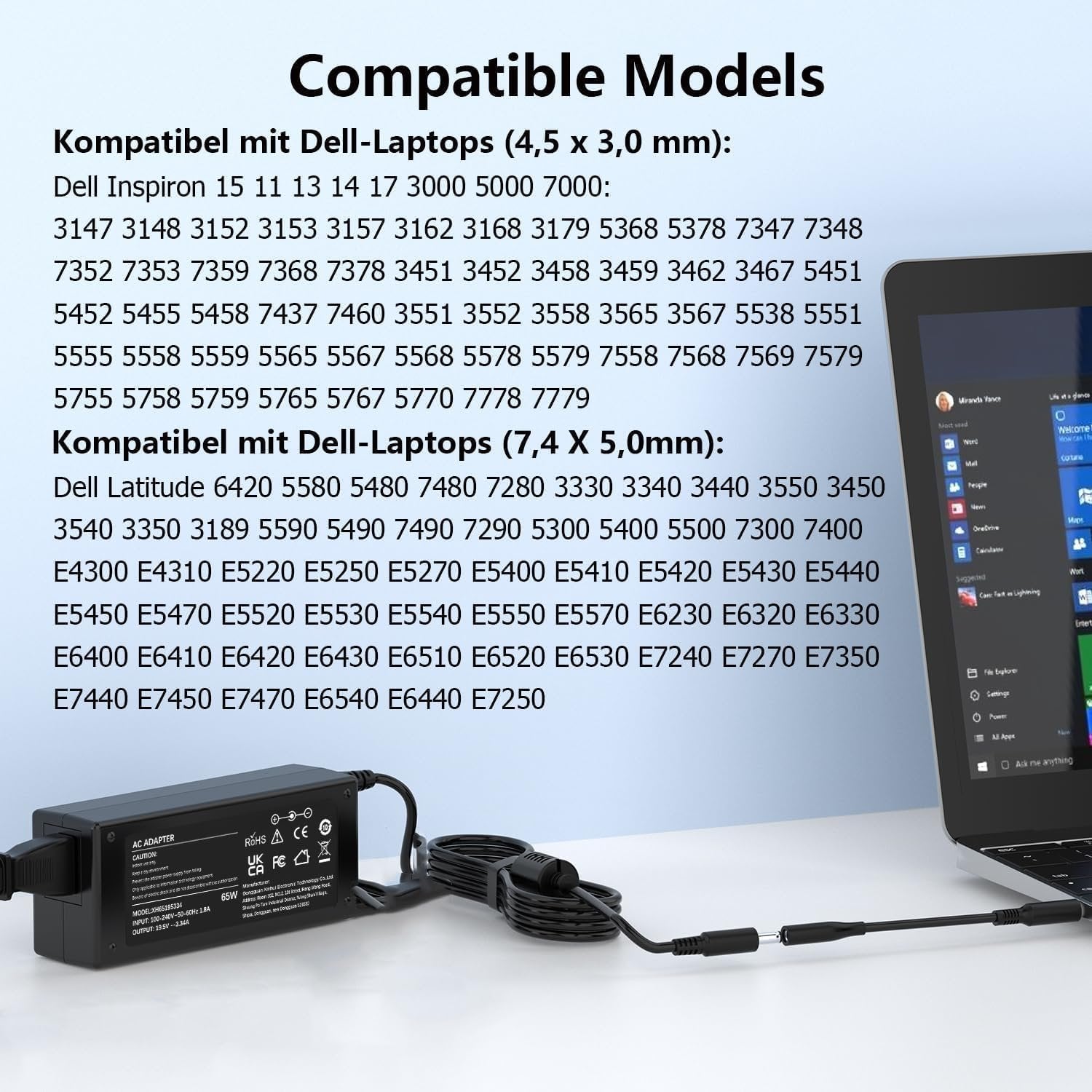 Notebook Charger Compatible model with Dell Latitude Series E6410 E6430 E6430 ATG E6430S E6440 E7440 E7450 E7470 E5430 E5440 E5450 E5470 E5570 E7240 E7250 E7270 7214 5404 5414 7414 3150 3160 3180 3189 3330 3340 3350 3380 3440 3450 3540 3550 6430u E5250 E5270 E5530 E5540 E5550 E6230 E6330 E6530 E6540 7404