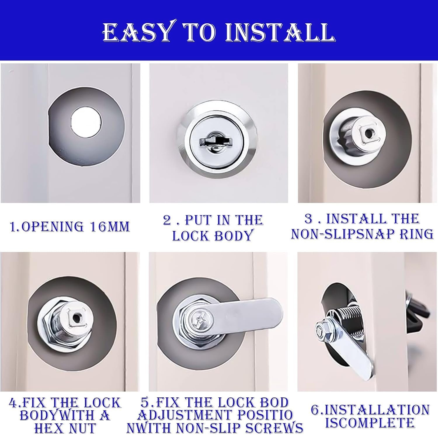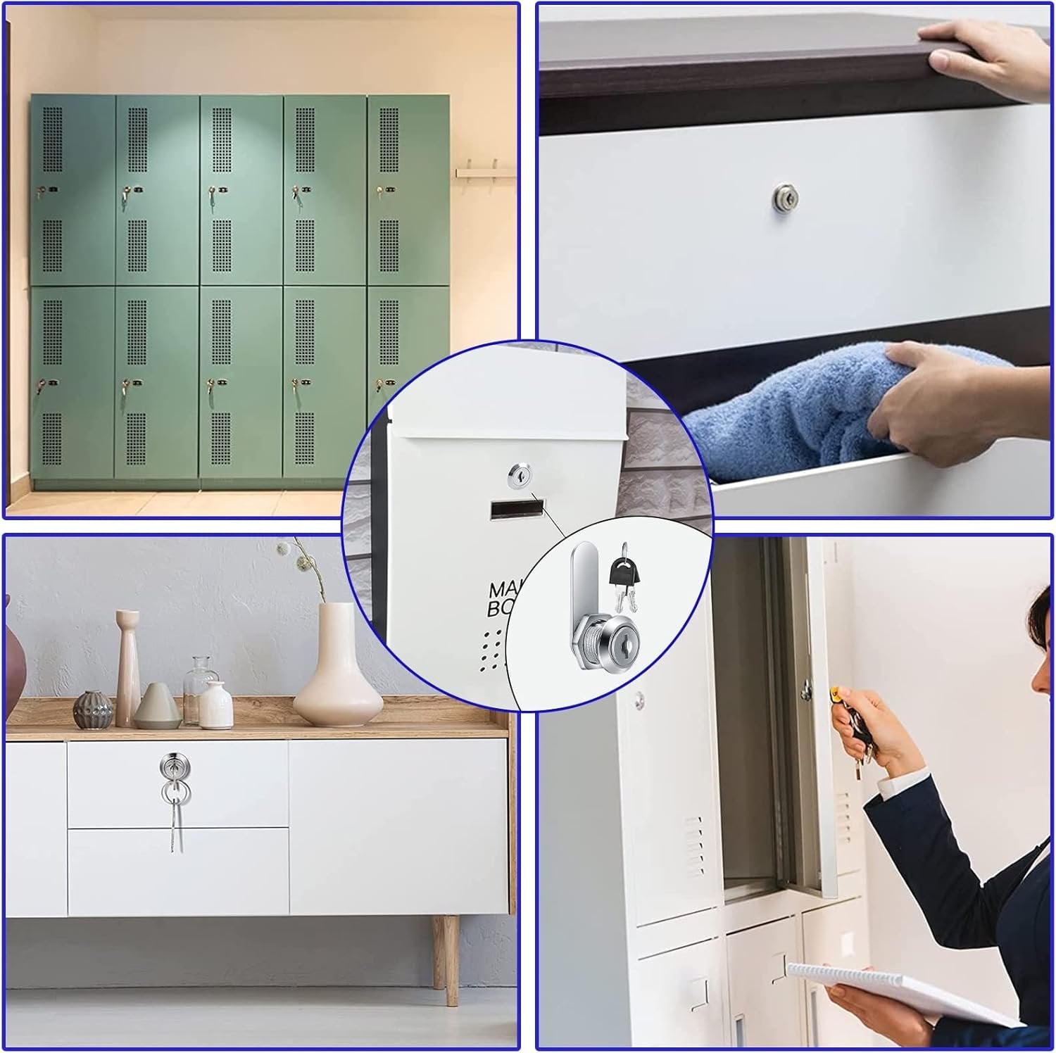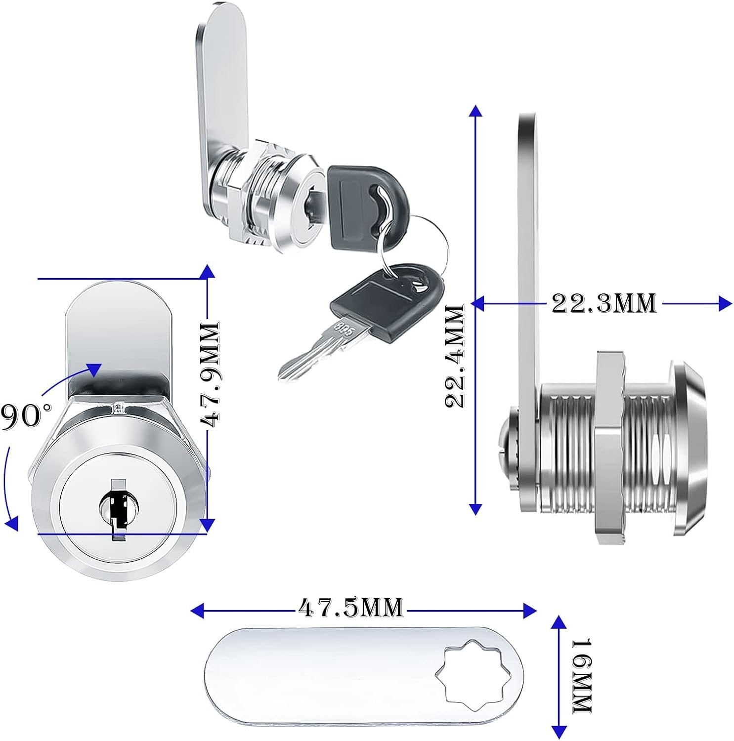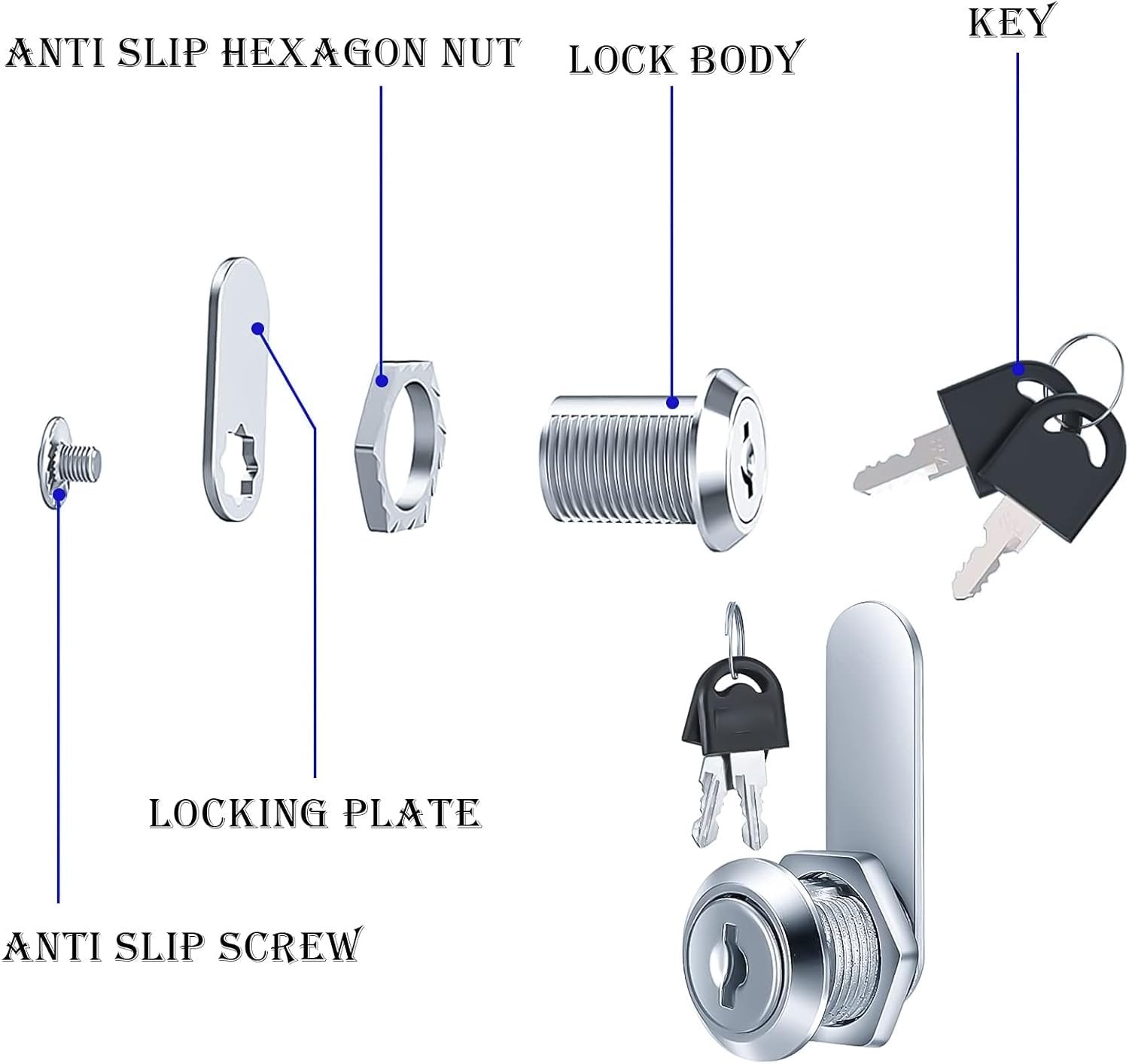 6pcs Cabinet Cam Lock Set, Toolbox Lock Replacement Set Keyed Alike, Letter Box Locks, Drawer Lock Cylinder, Furniture Lock With 2 Keys for DIY