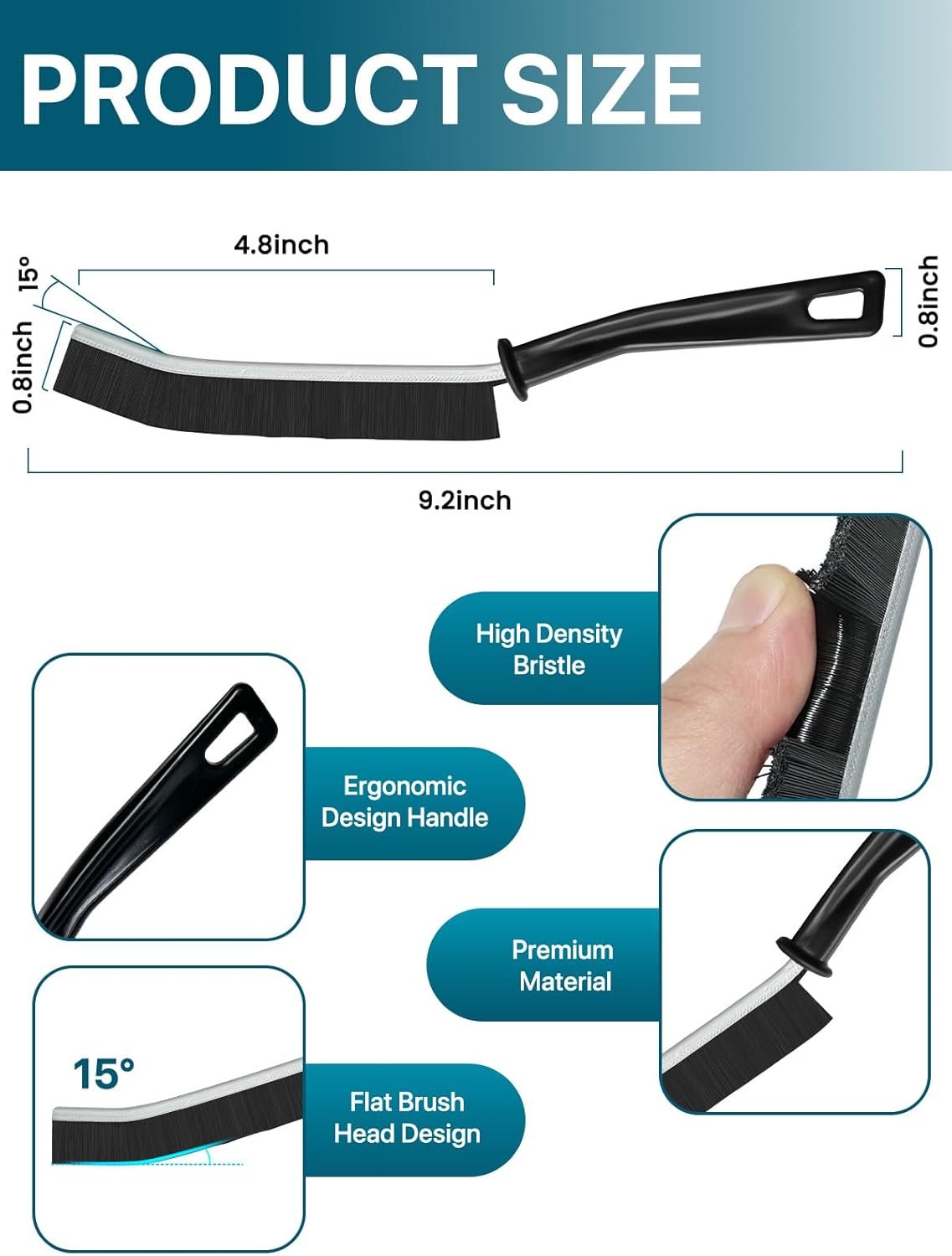 MULTIFUNCTIONAL CREVICE CLEANING TOOLS:This hard bristle crevice cleaning brush is specially designed to handle narrow spaces and corners, making it perfect for cleaning grout lines, shower door tracks, toilet seat hinges, kitchen sinks, faucets, shower walls, and window sills. 6PAS COLORFUL CREVICE BRUSHES:With a variety of vibrant bristle designs, these hard bristle cleaning brushes for matching different areas and tasks. This helps to organize the brushes effectively and prevent cross-contaminatio. HIGH QUALITY MATERIAL:Crafted from high-quality plastic and stainless steel, this crevice brush is sturdy, break-resistant, and long-lasting. The brush head is securely attached to a non-slip, wear-resistant handle for a comfortable grip. SUITABLE TO CLEAN ANY SURFACE:Crevice cleaning brushes are versatile tools designed for various surfaces including tile, ceramic, hardwood, stone, glass, metal, granite, and quartz. They effectively tackle bathroom corners, Grout lines, Wall corner gap, Tile countertops, window tracks, and more. AFTER-SALES SERVICE:With your purchase, you will receive 6PCS colorful crevice cleaning brushes. If you encounter any issues while using them, please reach out to us directly through your order. The KOSPRIE support team is committed to resolving your issue within 12 hours.rights.