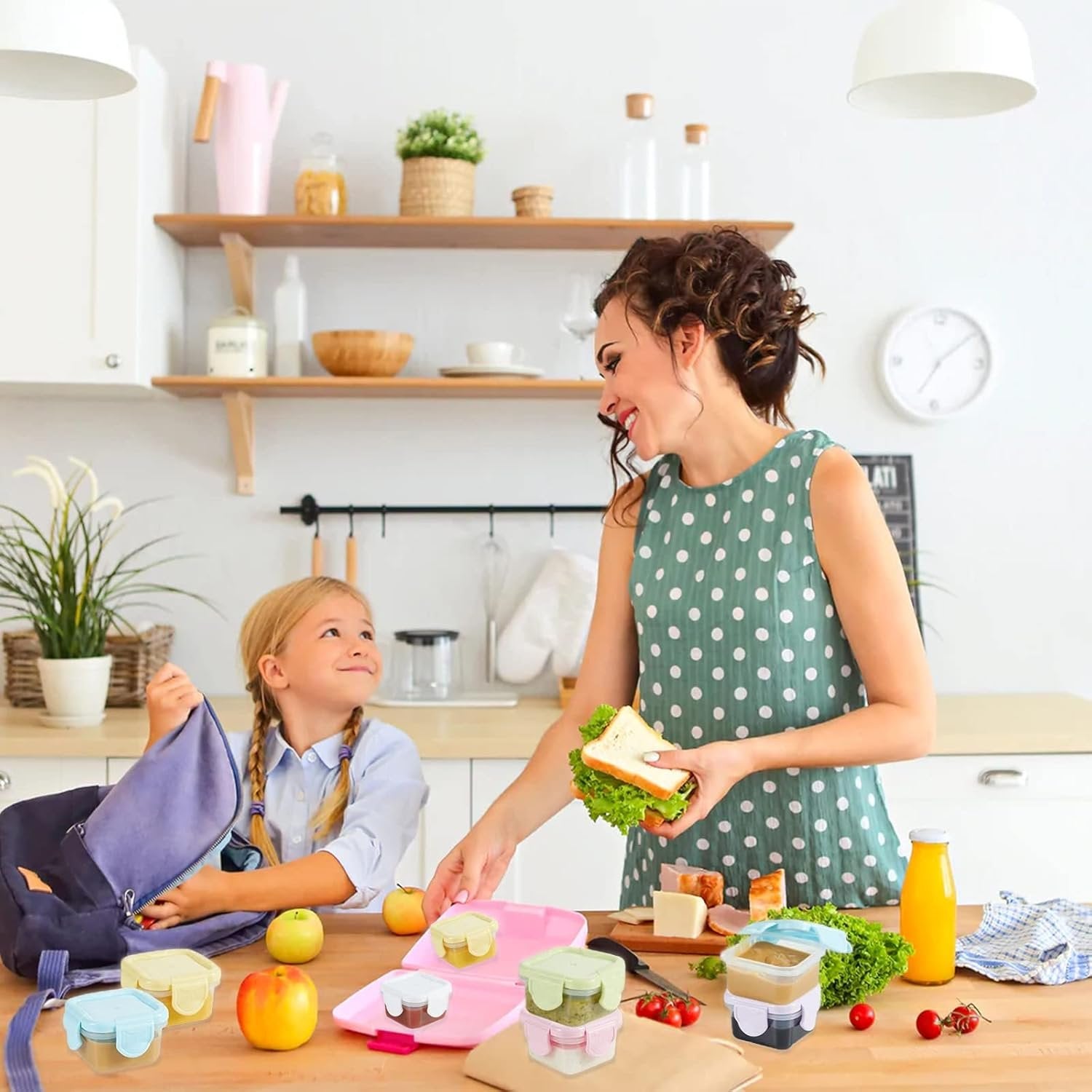 😋Keep Fresh & Leak-proof: Different from other containers, our salad dressing containers adopt 4 sides snaps to lock, which is easy to open and close anytime. They are also sealed tightly by inner sealing ring, which can efficiently prevent sauce from leaking or spilling, keep food fresh for a long time. 😋Versatile Containers: Our dressing containers are the ideal for dips, jam, salad dressing, sauces, condiments and more! The mini condiment containers with lids fit most bento boxes, making your meal healthier and more enjoyable. 😋Mini Size: The food containers come with 6 vivid colors in the same size: 2.36 inch x 1.57 inch; capacity: 2 oz / 60 ml. These small containers with lids are lightweight, stackable and easy to store. 😋Widely Use: Our food containers are perfect for kitchen, barbecue, travel, school, work and so on. They are the ideal for holding all condiments: BBQ sauce, ketchup, mustard, mayo, hot sauce, maple syrup, icing etc.