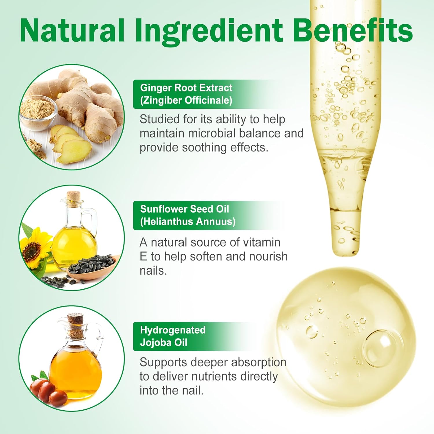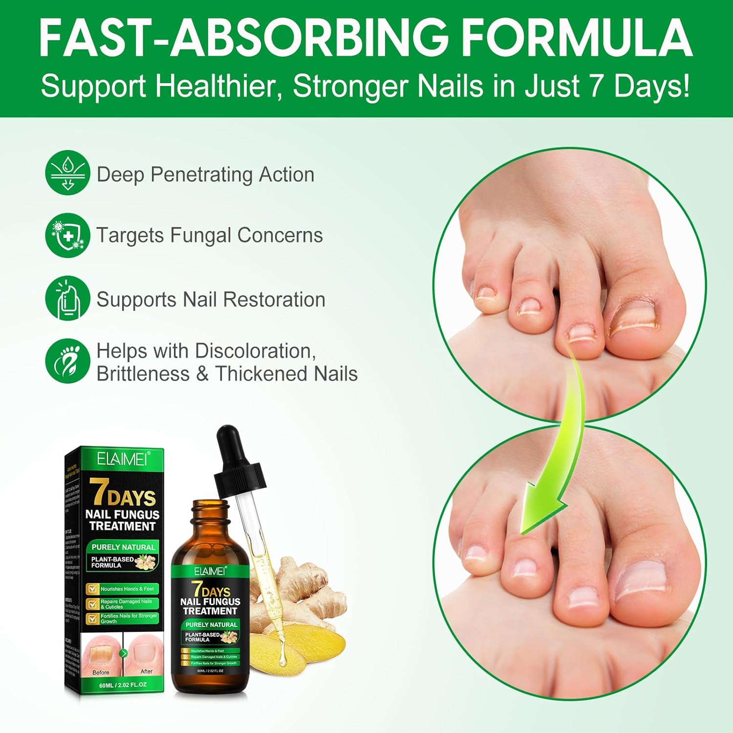 7 Day Nail Fungus Treatment | Natural Plant-Based Nail Repair Oil with Ginger Extract | Strengthens & Nourishes Nails & Cuticles | Repairs Discolouration & Brittleness | Suitable for Hands & Feet | 60mL