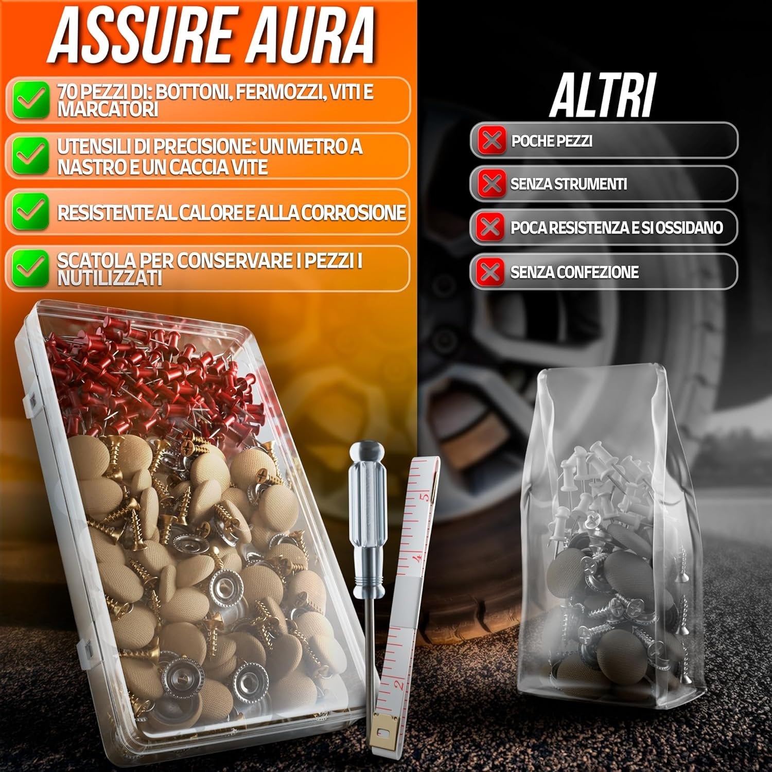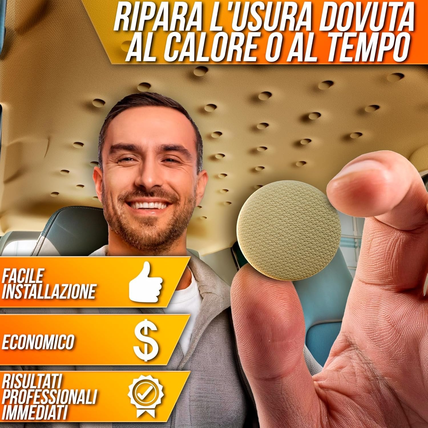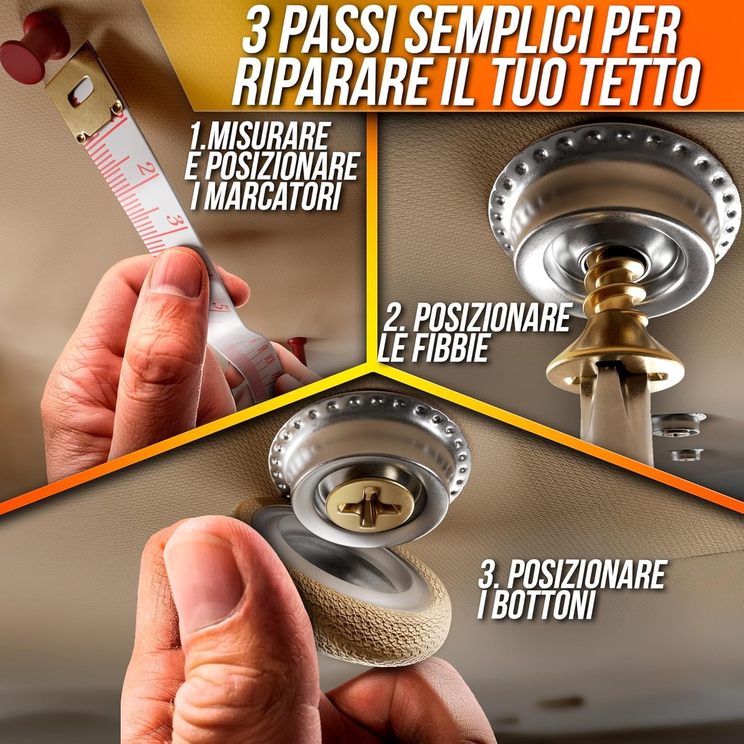 70 Pcs Car Roof Pins Kit + 70 Red Pins + 1 Screwdriver + 1 Metric Tape - Ideal for Car Fallen Roof Repair - Essential Part of Your Car Accessories (Beige)