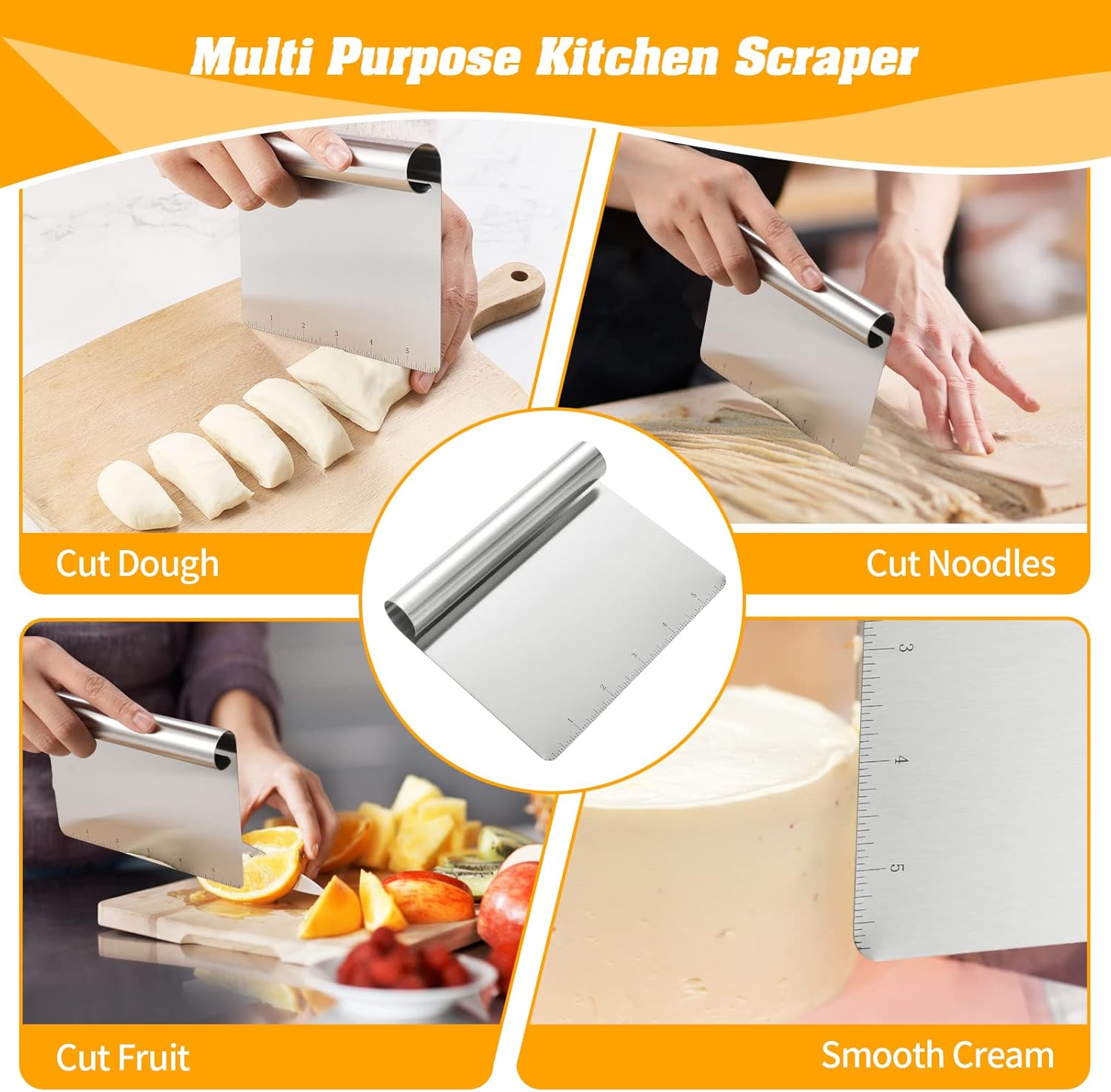 8 Pack Stainless Steel Food Scraper and Chopper Large Griddle Spatula Kitchen Tool Gadget,Multi-purpose Kitchen Utensil for Dough, Cake, Pizza