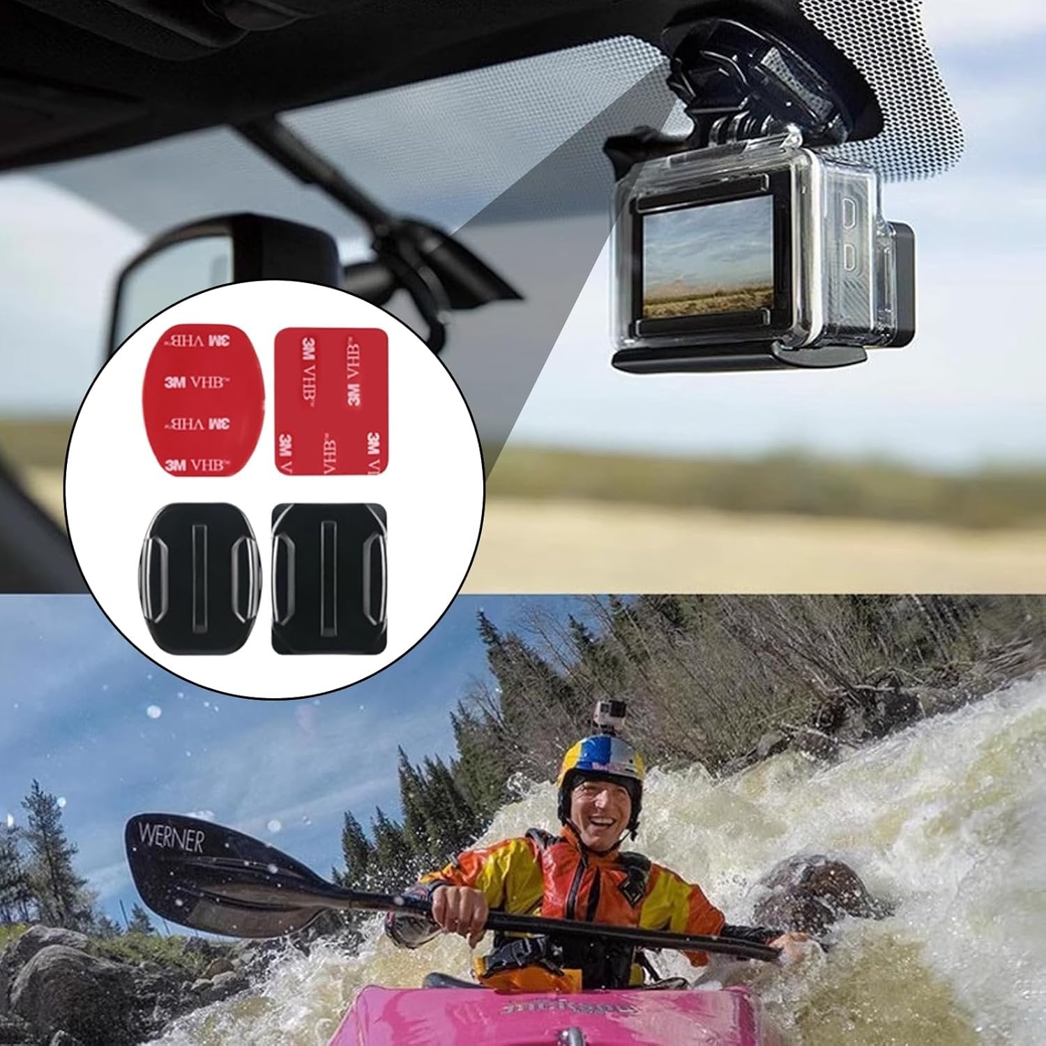 MULTIPURPOSE - Go Pro stand set contains 2 plates and 2 curves. Ideal for mounting on helmets, surfboards, car interiors, kayaks and many other surfaces. Specially designed for taking photos and videos during swimming, boating, skiing, surfing and other activities, it is more convenient to take photos anytime and anywhere. HIGH QUALITY - Our Go Pro 8 pack adhesive pads set is made of high quality ABS and premium adhesive, contains 4 bases and 4 3M adhesive pads, durable, waterproof and adhesive. Easy to install and remove: This helmet holder can be securely attached to almost any surface and can be used with a heater (e.g. a hair dryer) cleaned and removed without residue. Press for 1 minute to let air out during assembly. After installation, it is better to wait 24 hours before using it to achieve better adhesive effect. 【Wide Compatibility】This adhesive base is compatible with all Go Pro Hero 3 3+4 5 6 7 8 9 10 11 12 and other action cameras, just like Go Pro mount. Please note: For single use only. With repeated movements, dust and dirt accumulate on the adhesive surface, reducing stickiness.