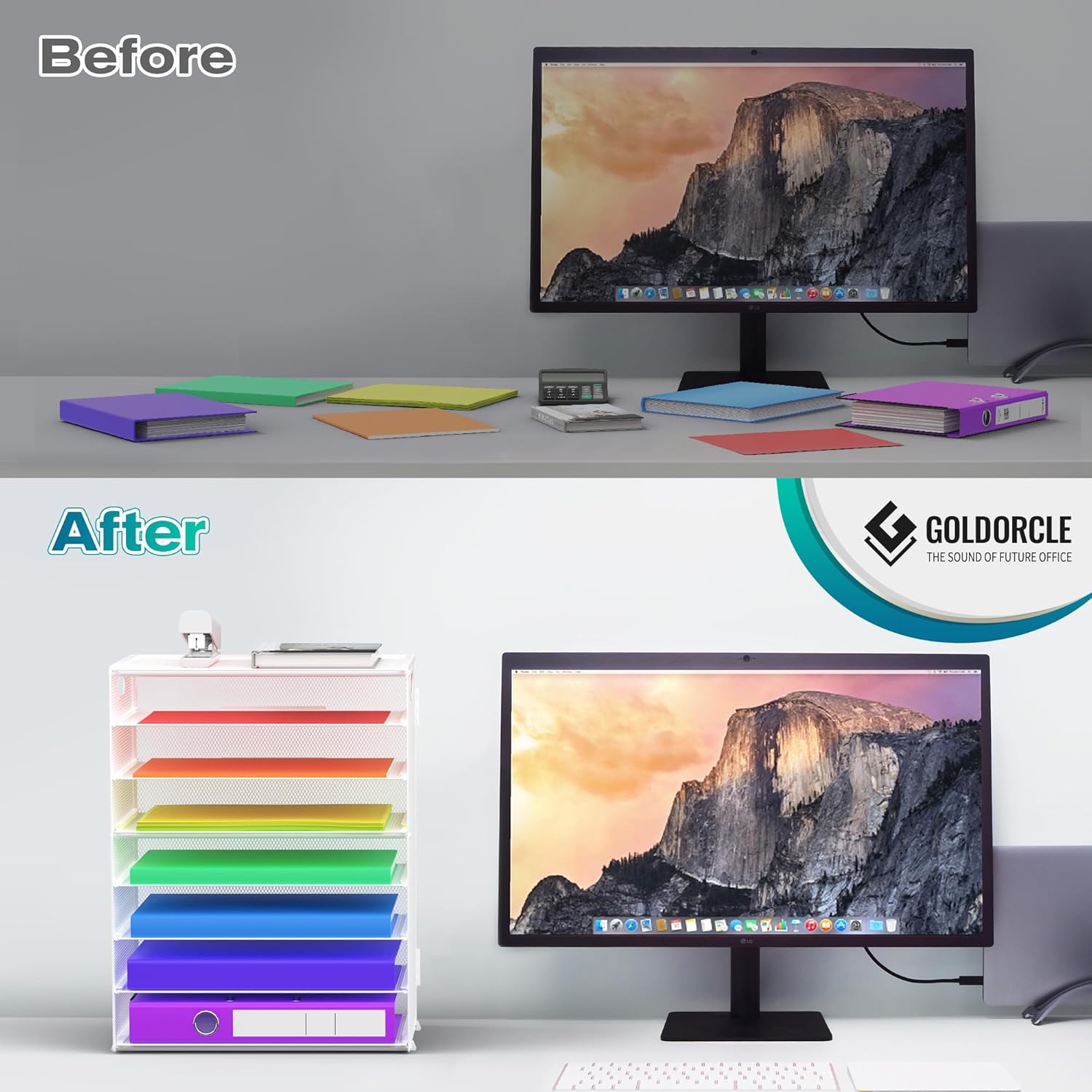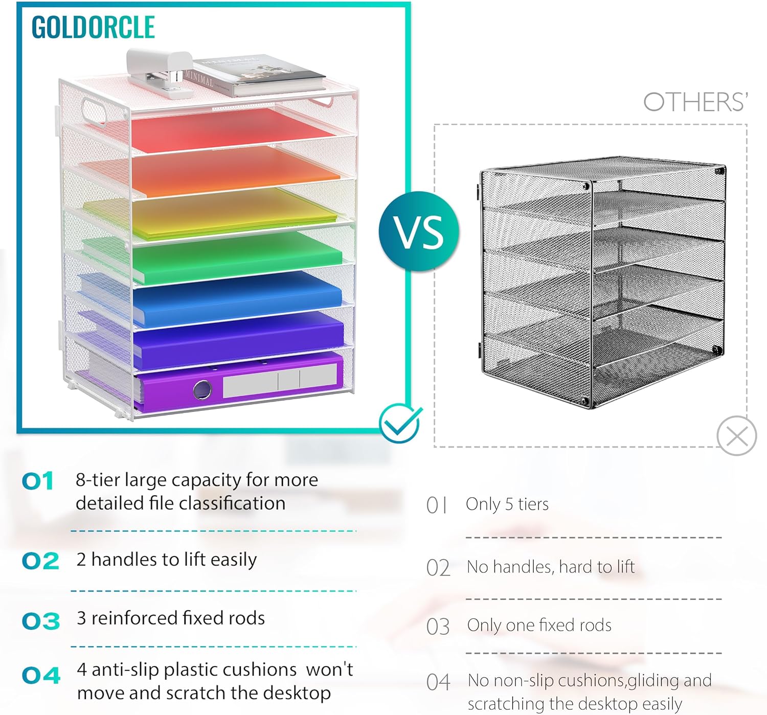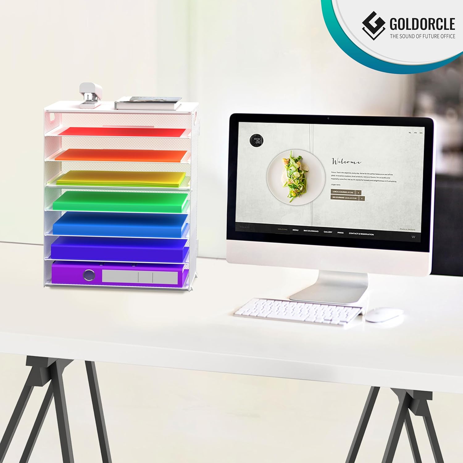 8 Tier Paper Letter Tray Organizer with Handles, Mesh Desk File Holder Storage Organization for Home School Classroom & Office (White)