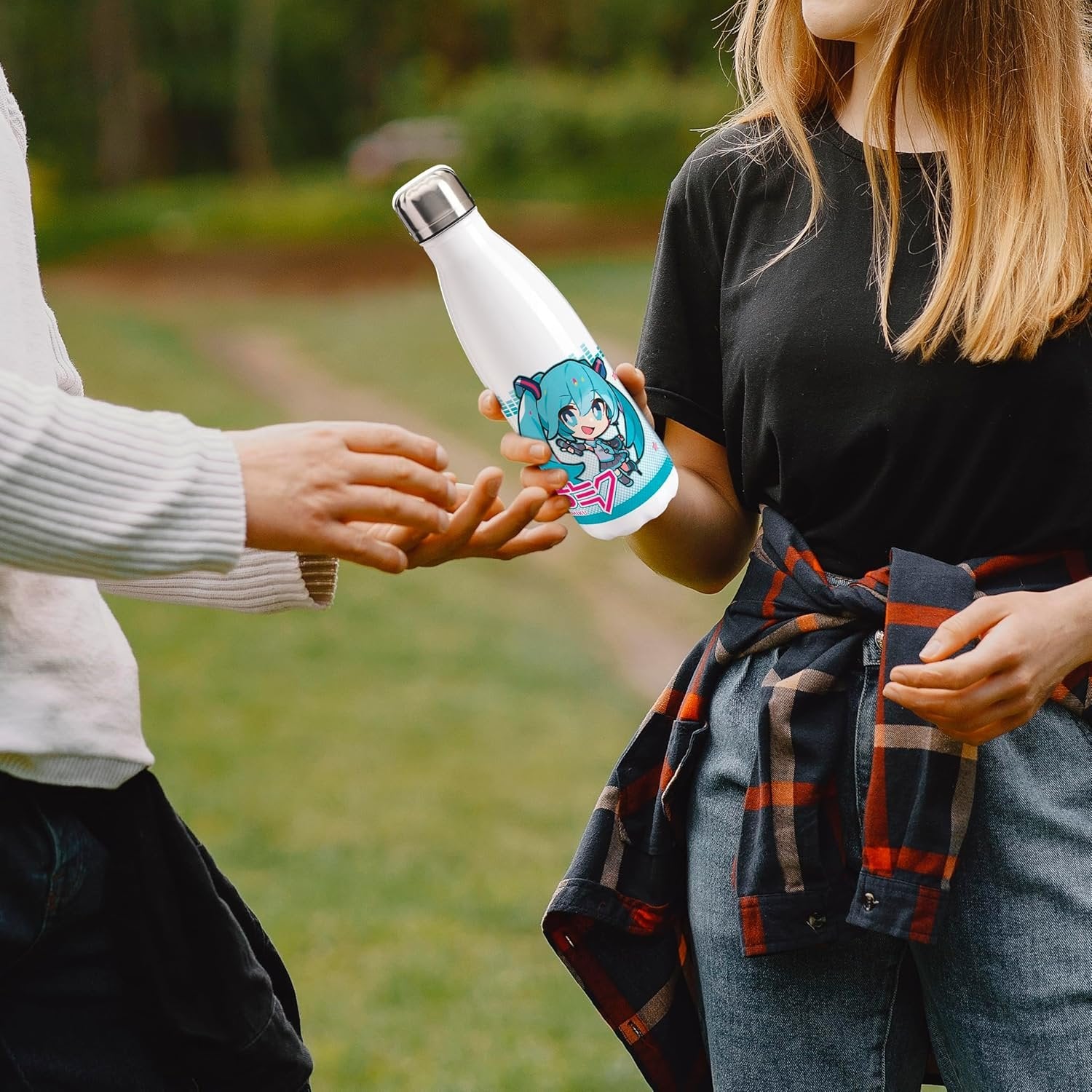ABYSTYLE Hatsune Miku Anime Water Bottle 16.9 Fl Oz White Aluminum Anime Manga Drinkware Home & Kitchen Merch Gift