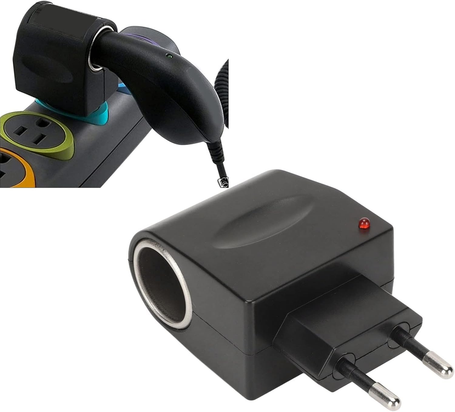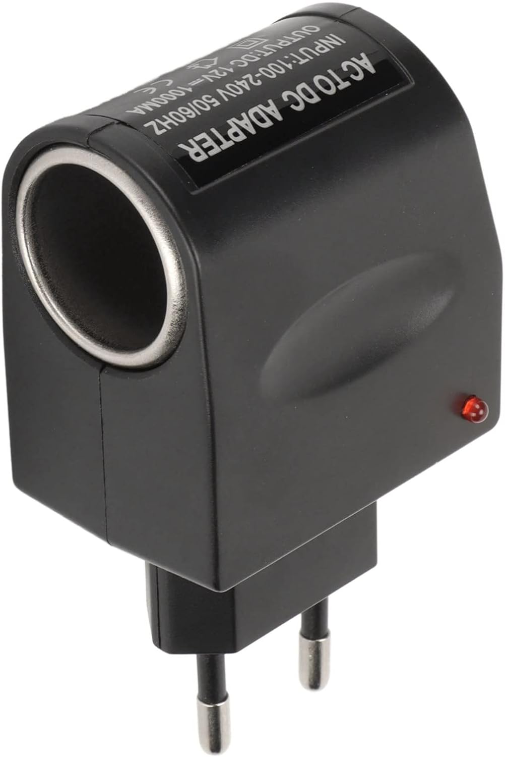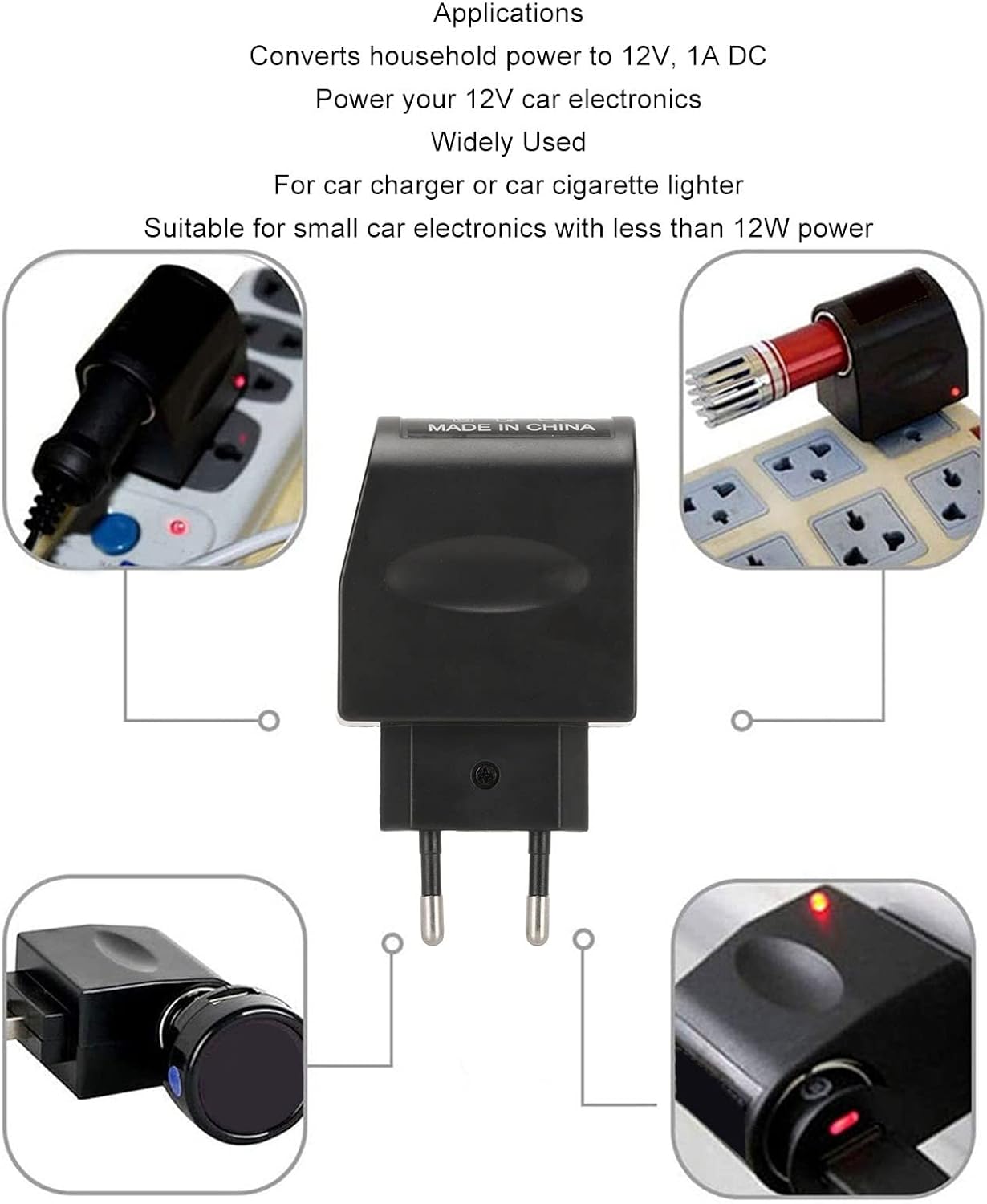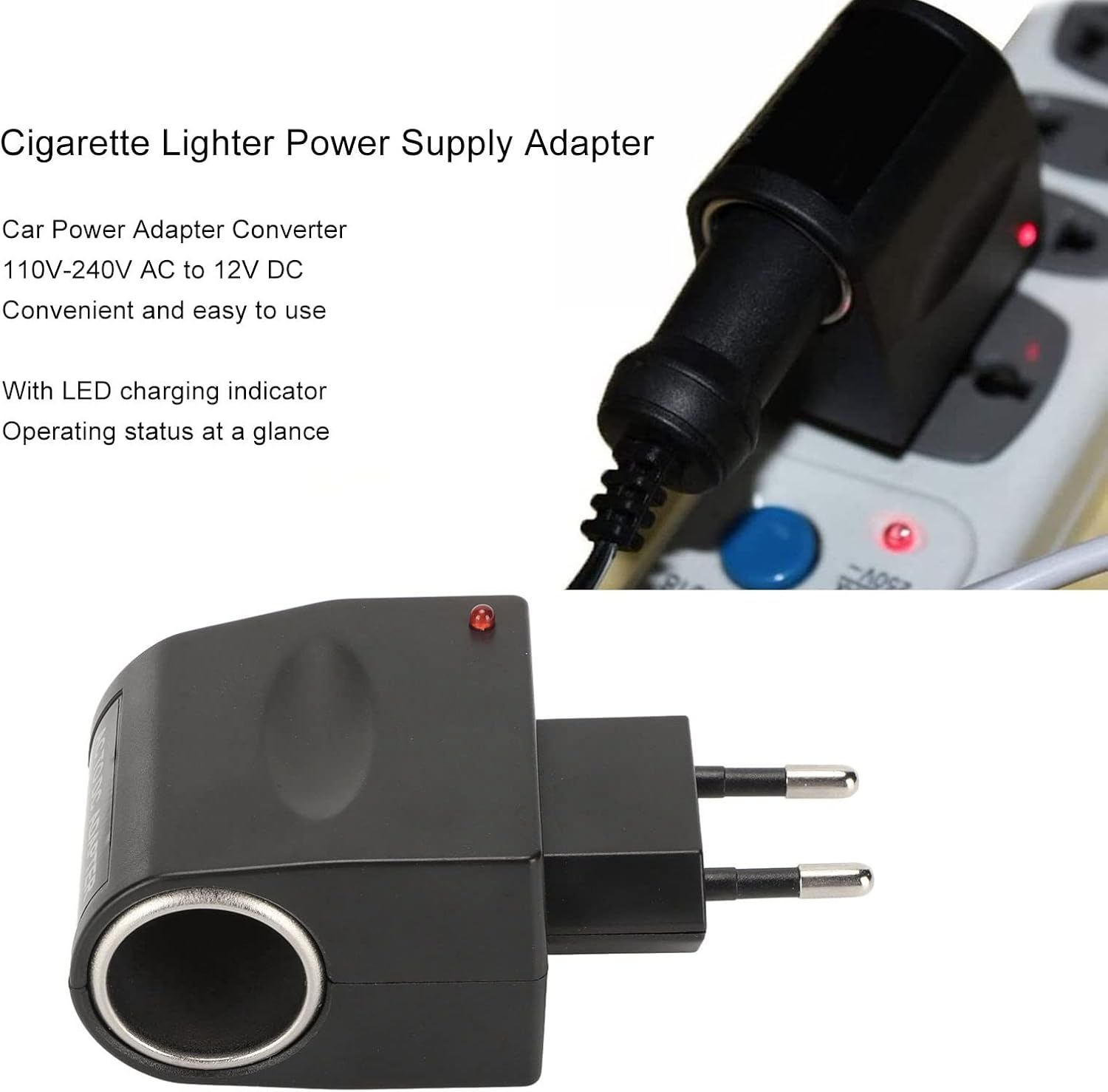 AC to DC 12V Wall Socket Power Adapter Converter with Cigarette Lighter Socket and LED Charge Indicator for Small Car Electronics (EU Plug)