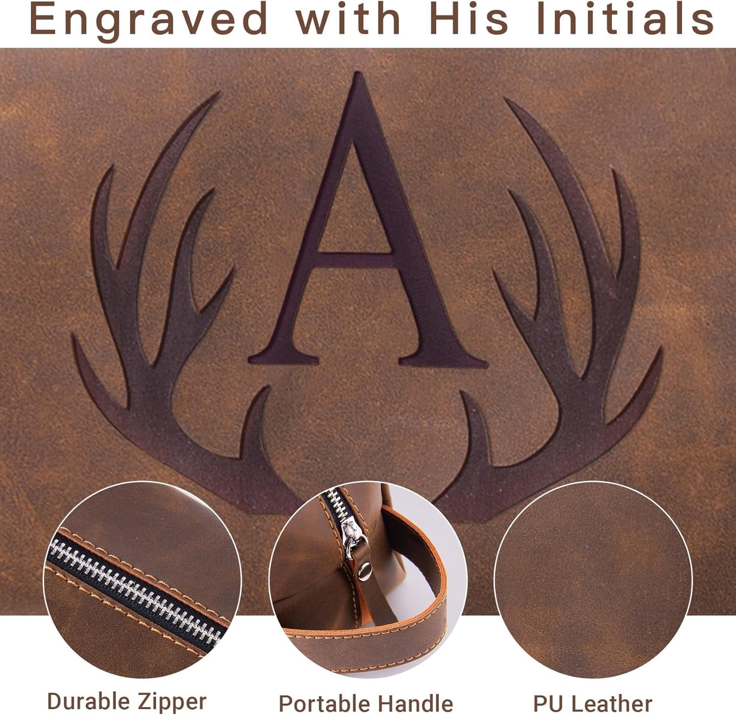 đăIdea Gifts for MenăAre you still looking for a surprise for him? High quality mens toiletry bag combined with personalized patterns carefully designed by our design team. The unique antler symbolizes strength, freedom, life and longevity, expressing the best wishes for him. The antlers ambracing his initial, symbolize your love for him forever. Best gifts for husband, dad, son, boyfriend and friends on birthdays, Valentines Day, Fathers Day and anniversary. đăEngraved with His InitialsăThe initials and antlers pattern of mens toiletry bag adopts laser engraving technology and will not fall off. Smooth metal zipper, sturdy and durable, not easily broken or damaged, the combination of zipper and zipper ear is easy to use. Premium toiletry bag for men, It is also the best choice for groomsman gifts. đăWaterproof PU Leather Materialătravel toiletry bag is made of high quality PU leather, water-resistant, lightweight, durable, and easy to wipe clean. Protect your toiletries from splashing water. This mens toiletry bag is a practical travel essentials. It is also very suitable for daily use. It can be used as a toiletry bag, storage bag, shaving bag or makeup bag. đăMulti-functionalăToiletry bag for men,suitable for a variety of locations. Whether traveling, camping, or business trips, it helps you better store your toiletries, avoid loss during the journey, and protect your personal hygiene. It can help you find the toiletries you need more quickly and improve travel efficiency. It is also a personalized gifts for men. đăLarge Capacityătravel size toiletry bag (9L x 4.7W x 5.3H inches /23 x 12 x 13.5 cm), small size, large capacity, easy to carry. Enough space to hold toothbrushes, toothpaste, shampoo, razor, shaving cream and other travel accessories. Mens toiletry bag travel storage bag portable toiletry organizer hanging shaving bag for toiletries accessories. Personalized fathers day birthday gifts.